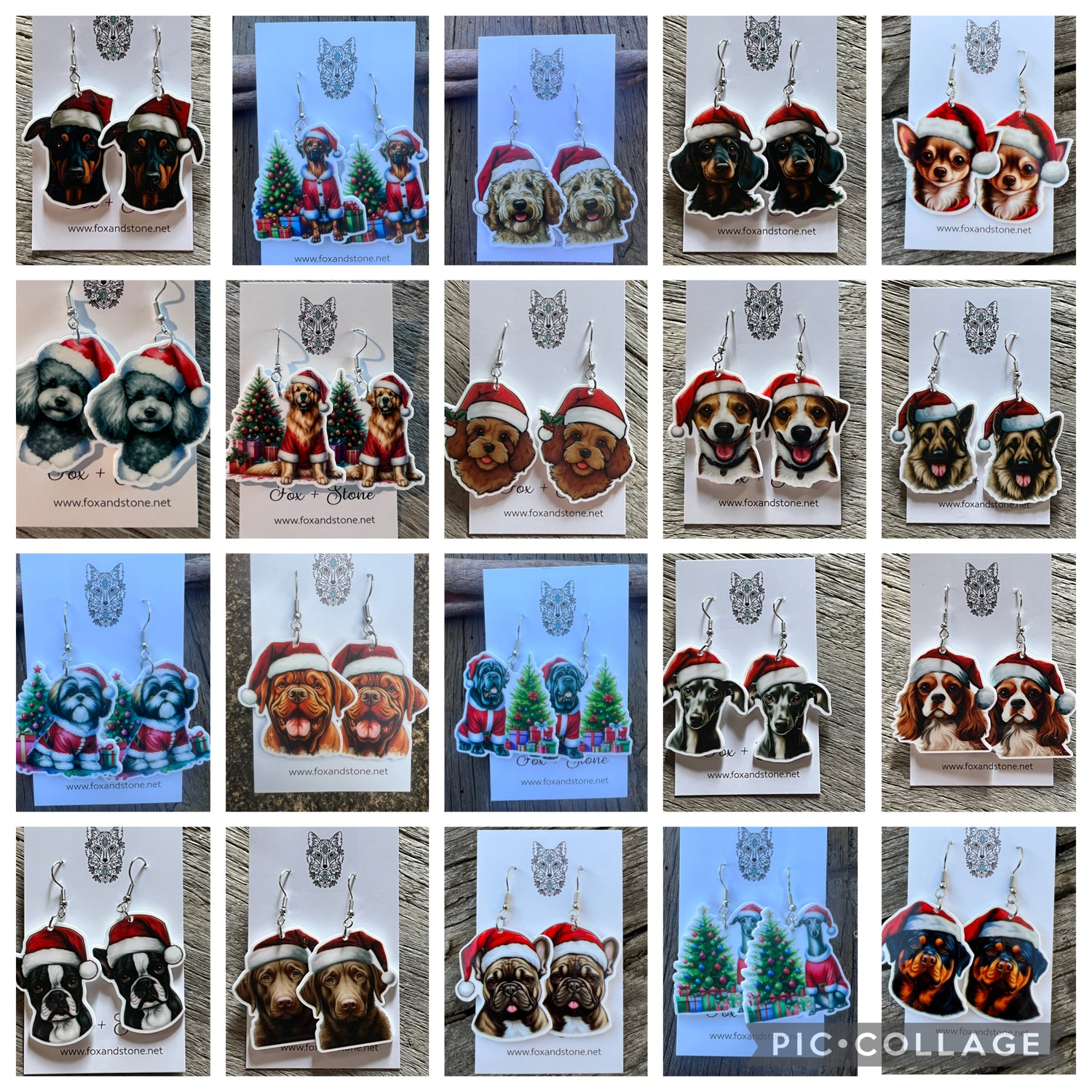 Our Christmas Dog Collections features santa hat earrings featuring all the different breeds !! See if your favorite is available