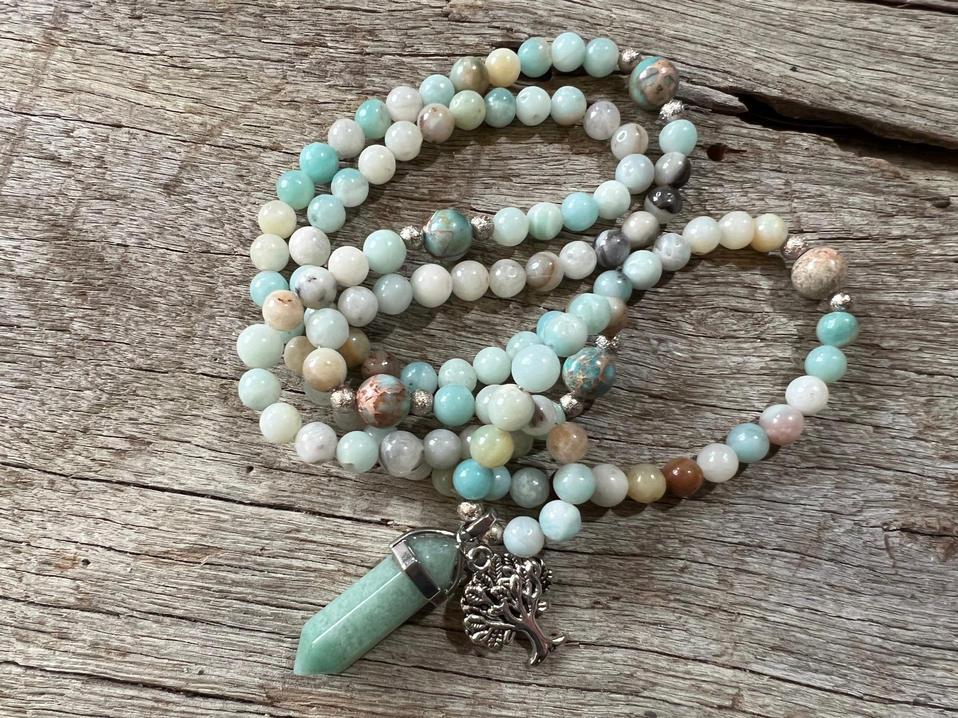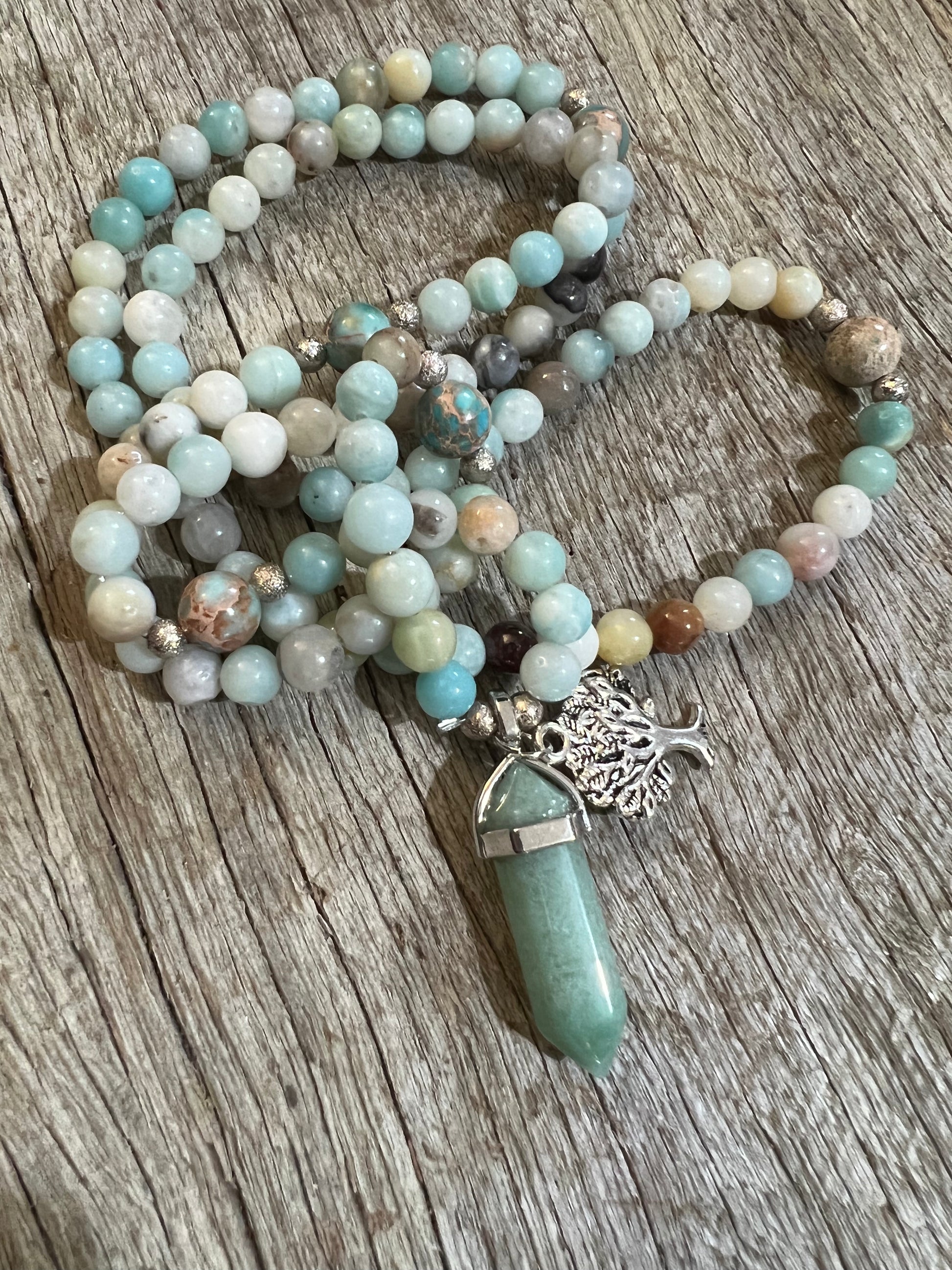 Gemstone used in this Mala is 6mm amazonite gemstone beads