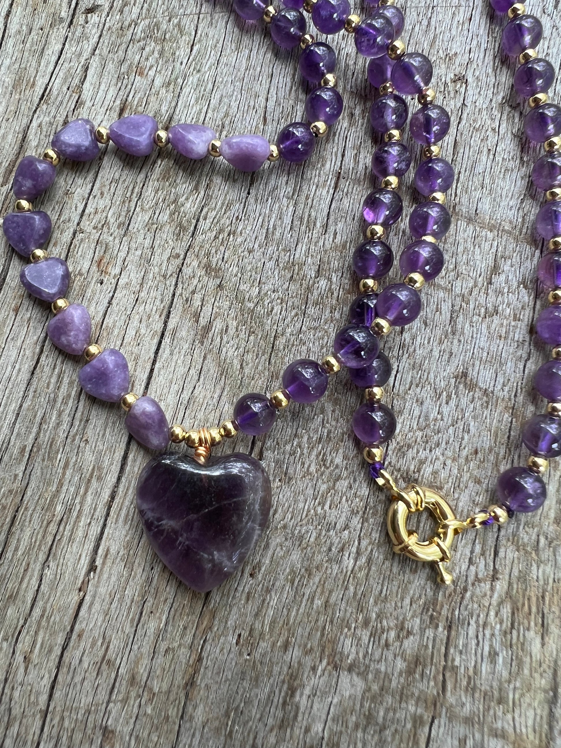 Gorgeous Mala featuring a heart amethyst gemstone