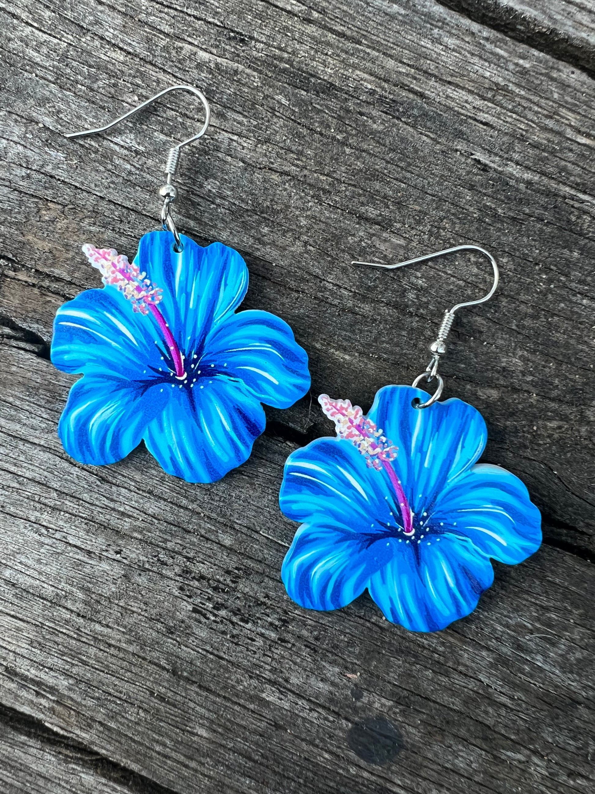 Beautiful Blue Hibiscus Earrings