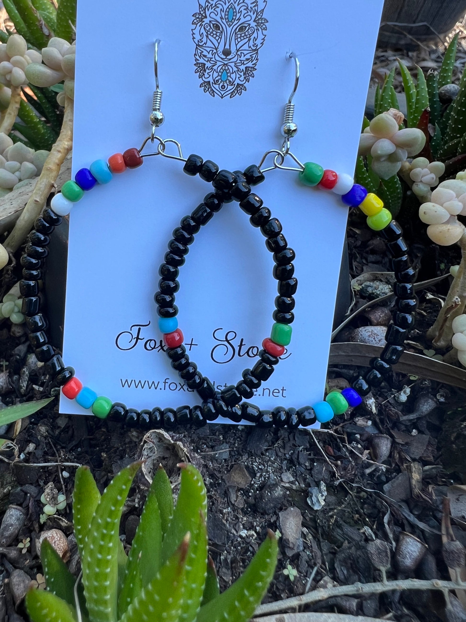 Black Large Beaded Hoop Earrings