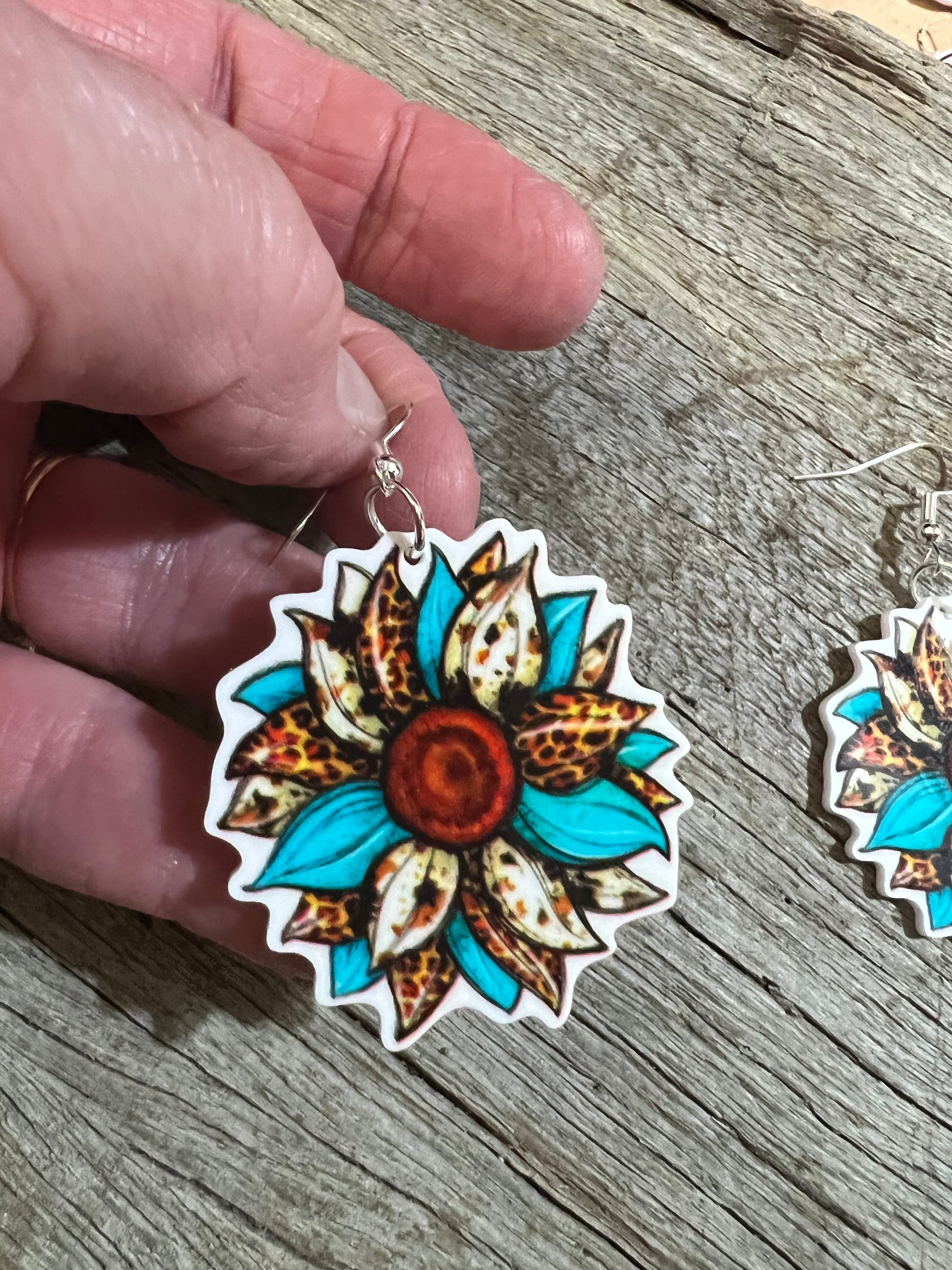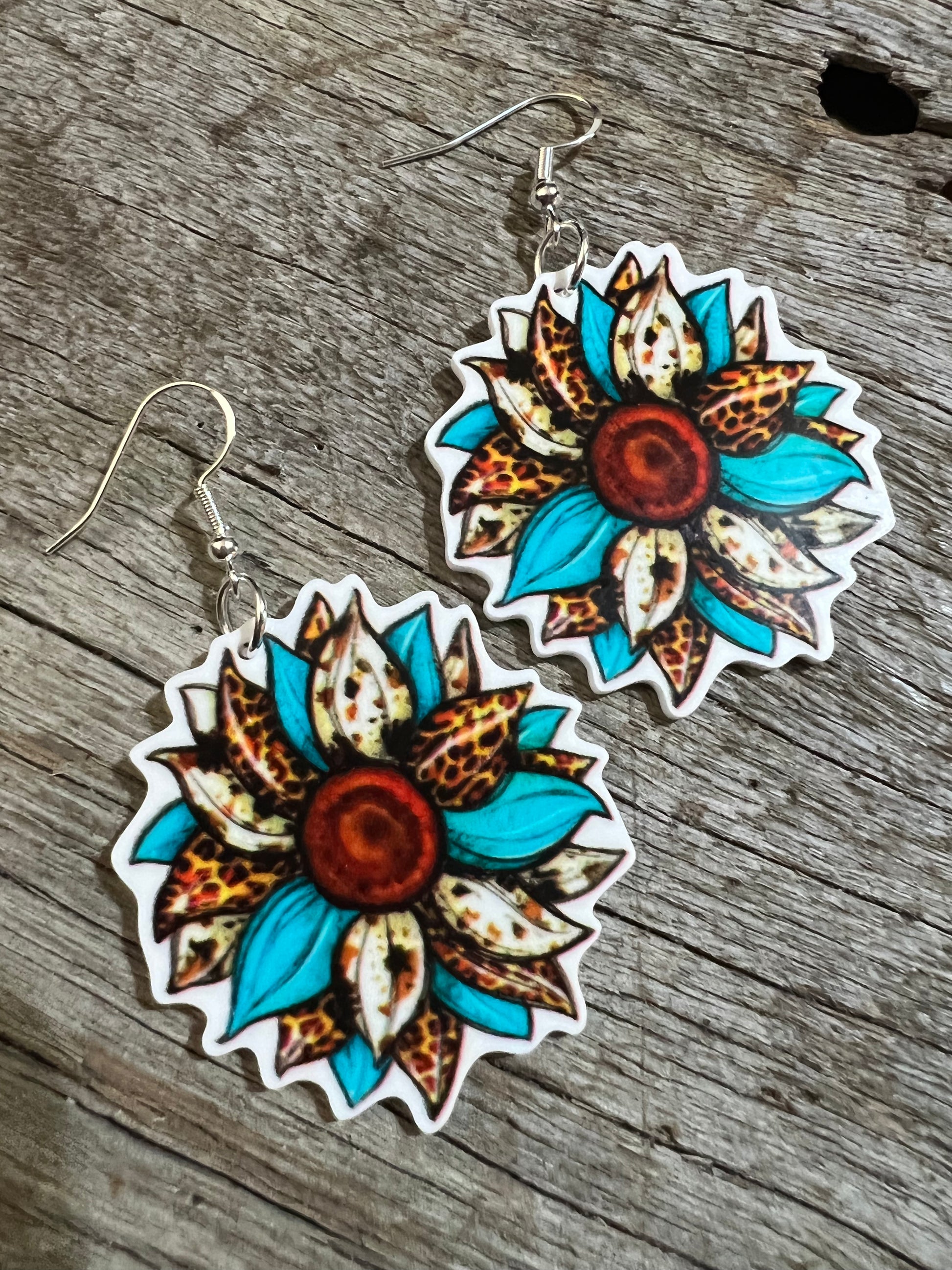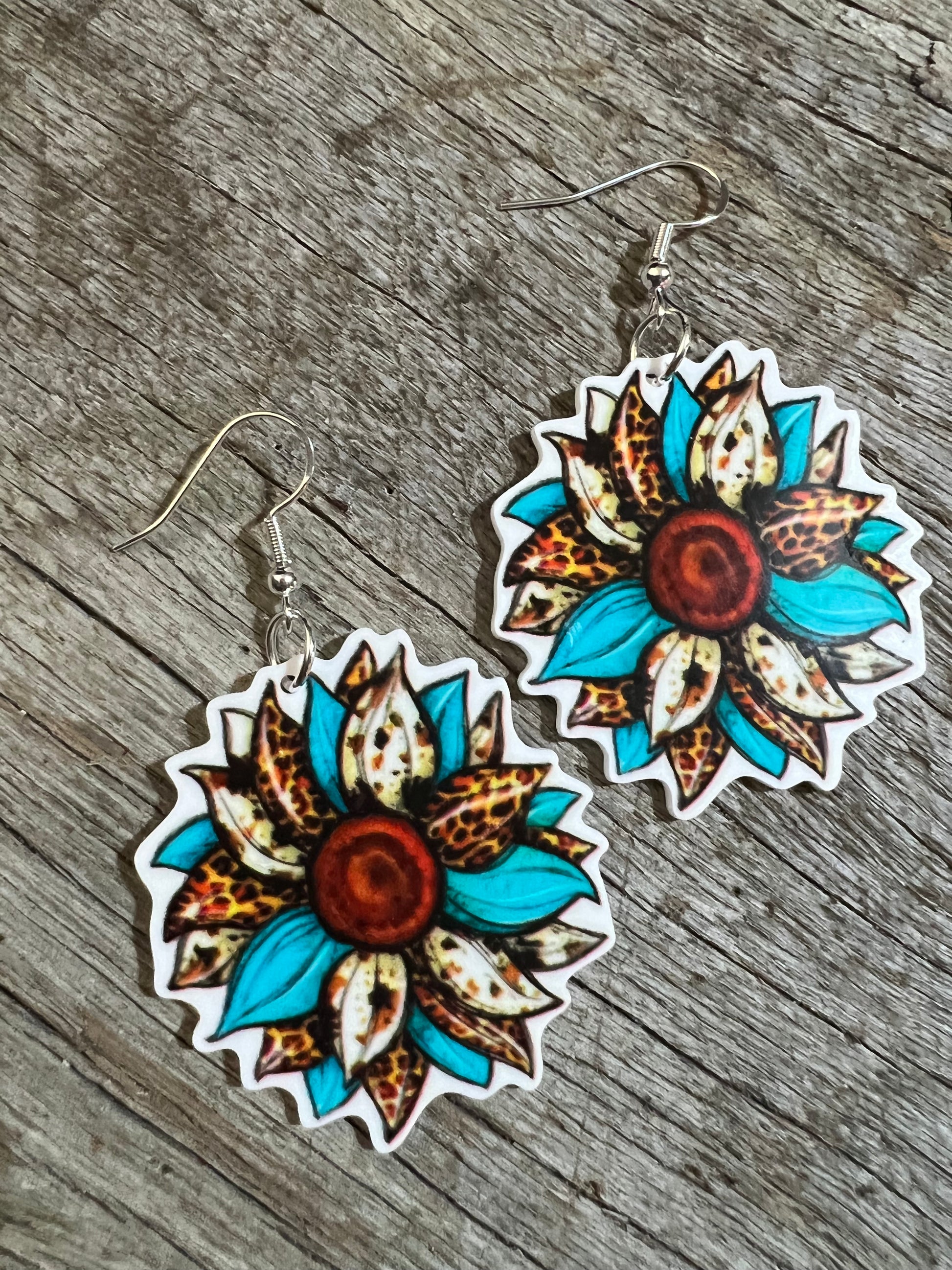 Blue Leopard Sunflower Earrings