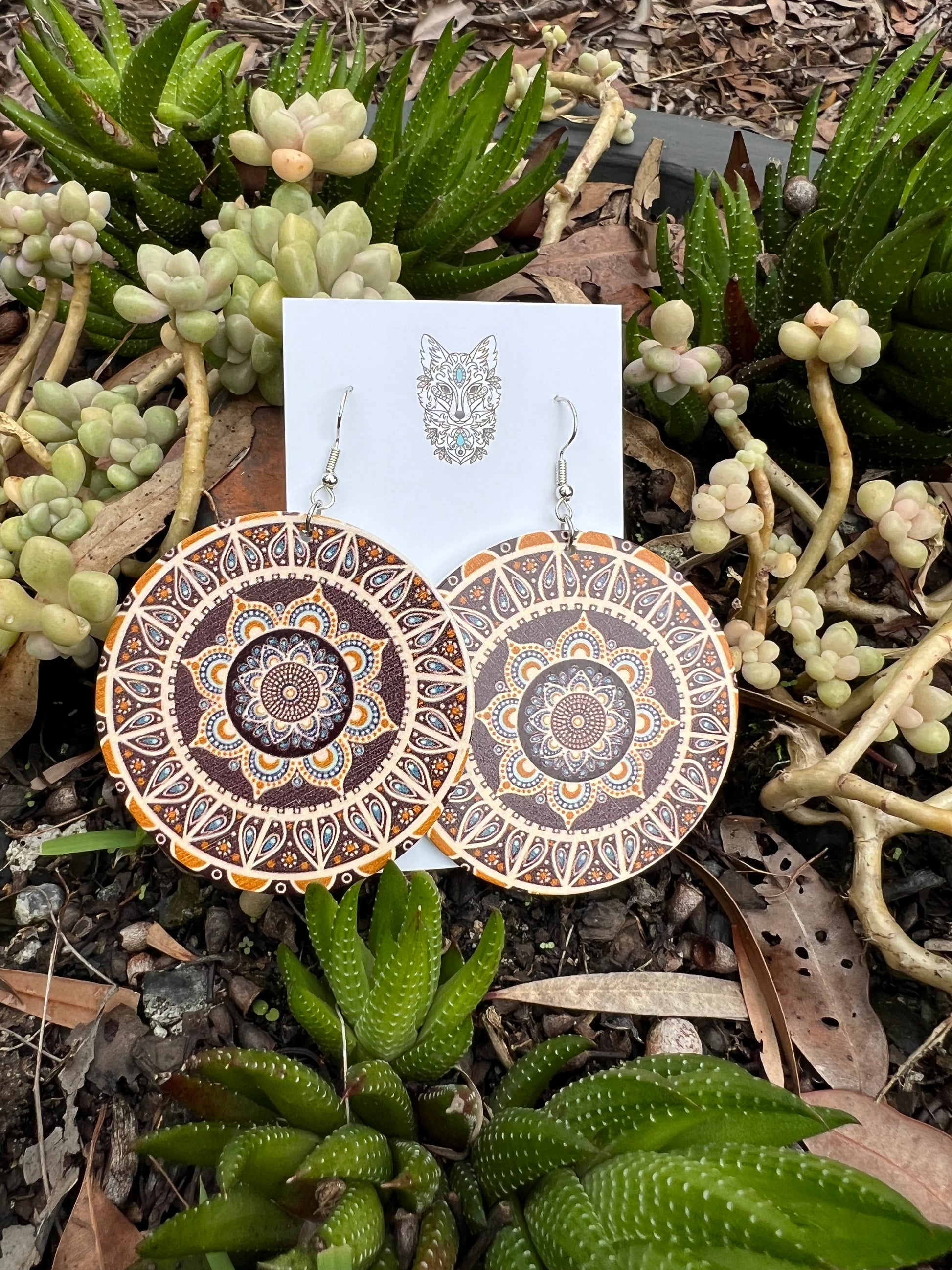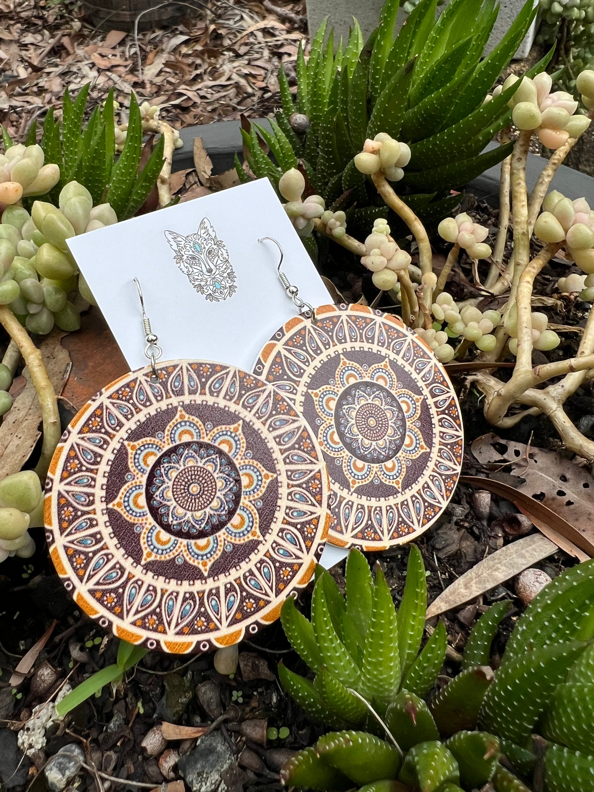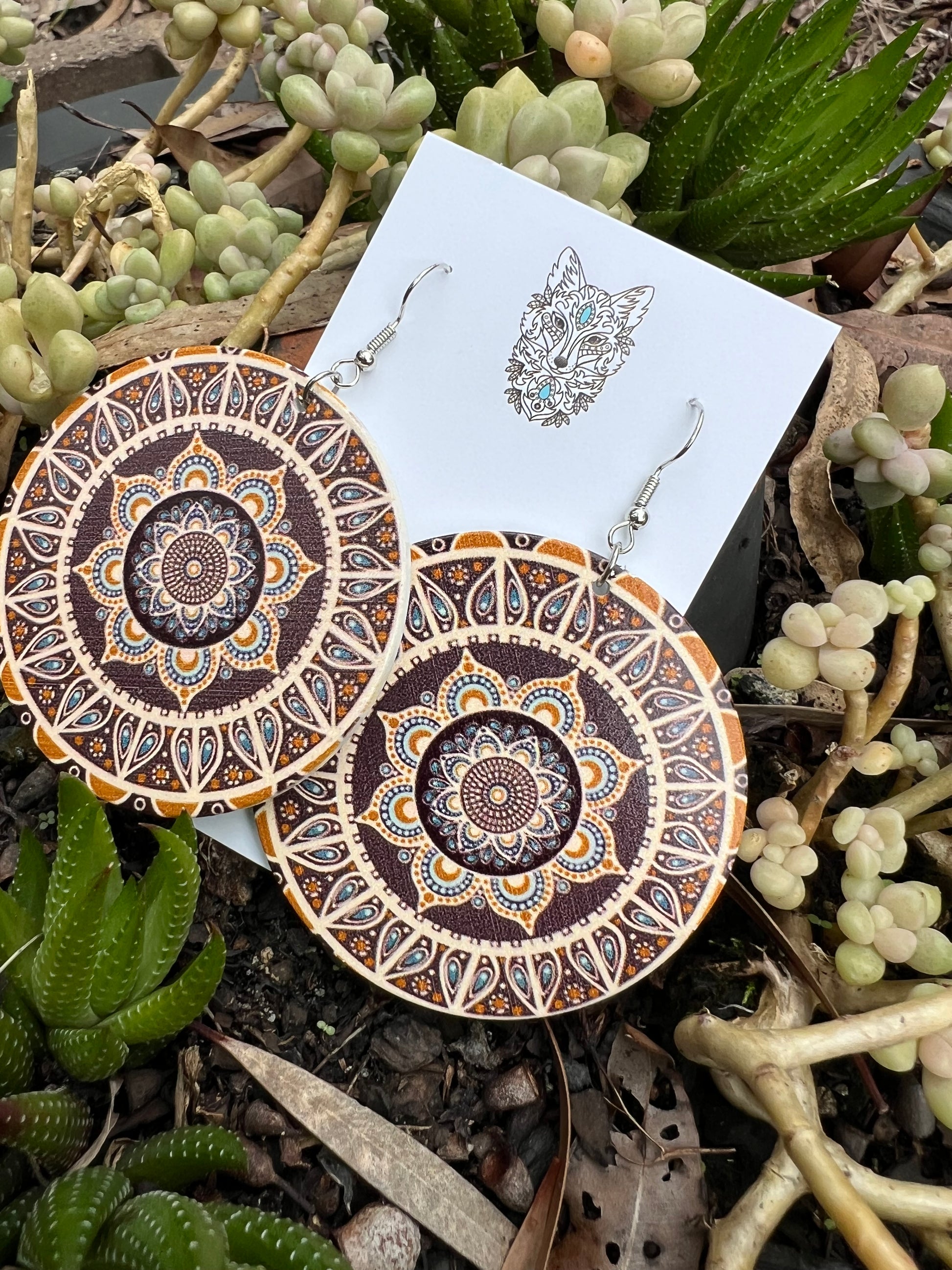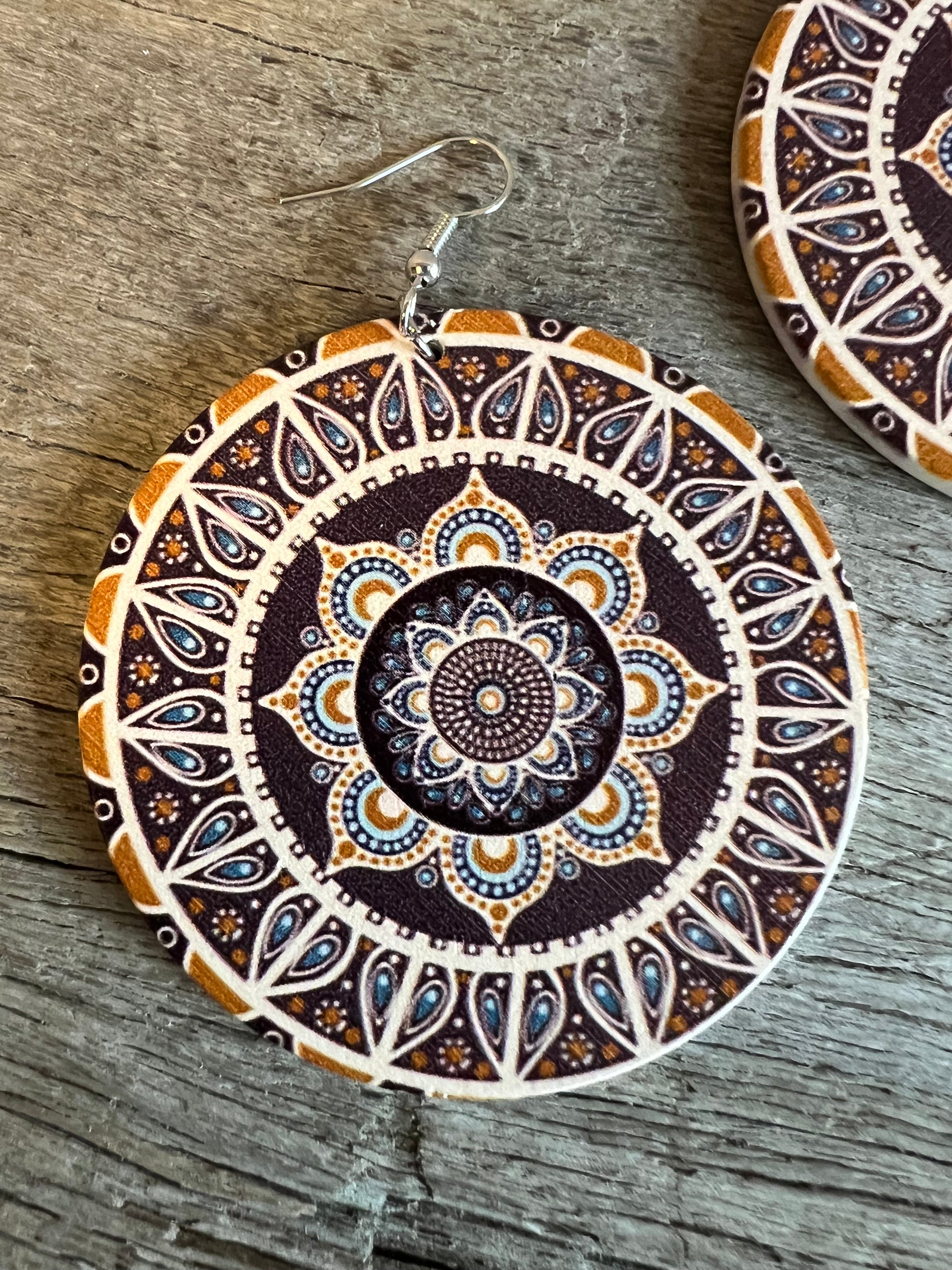 Bold Round Carmel Wood Earrings