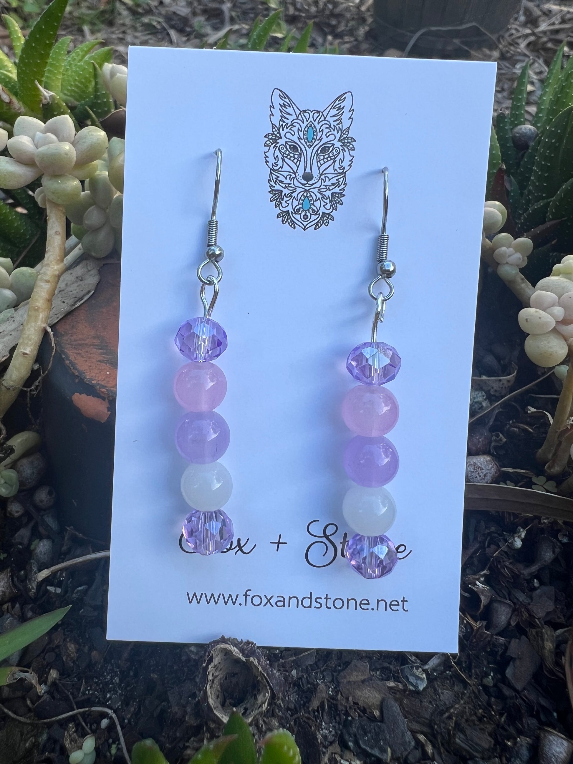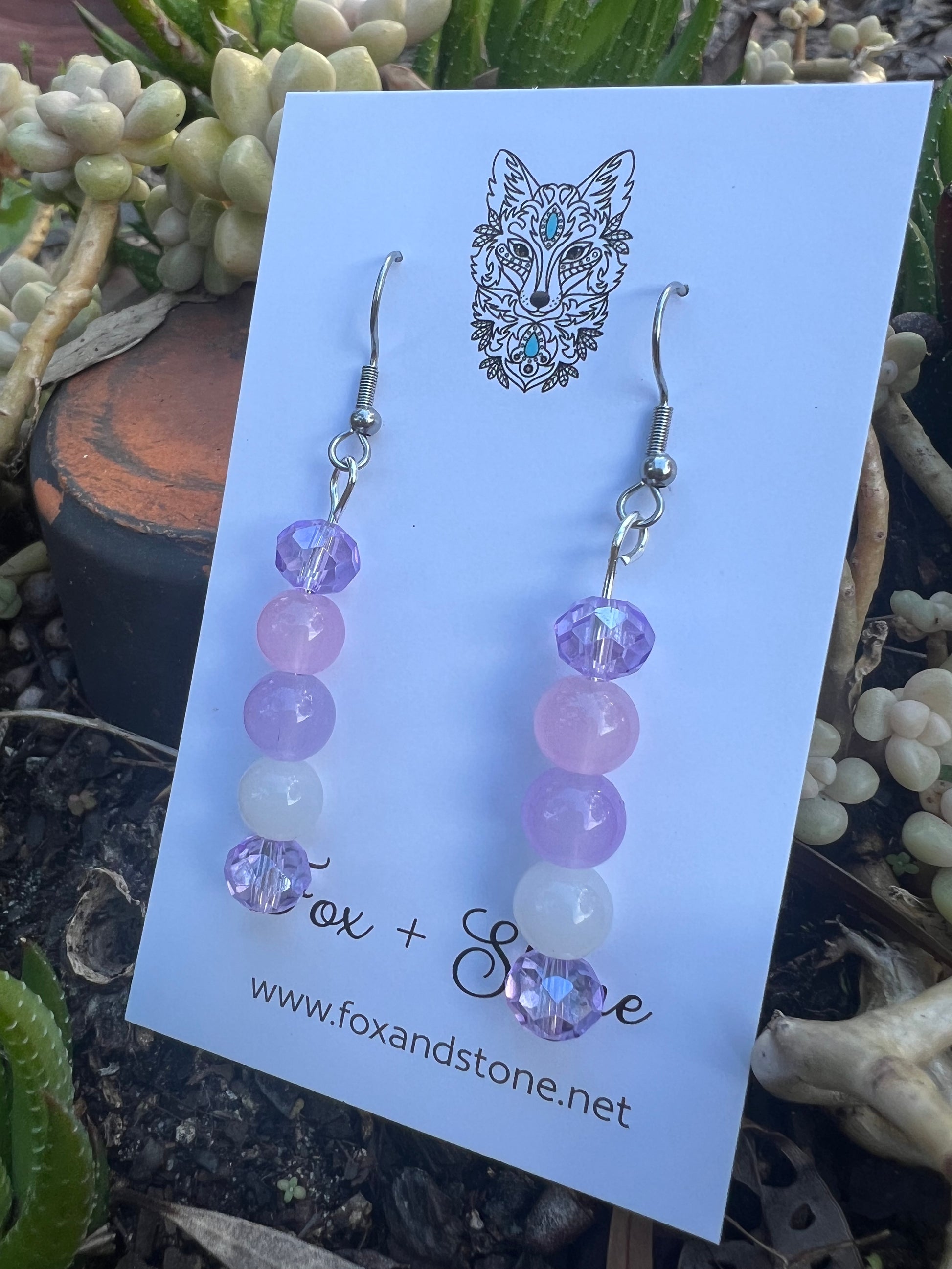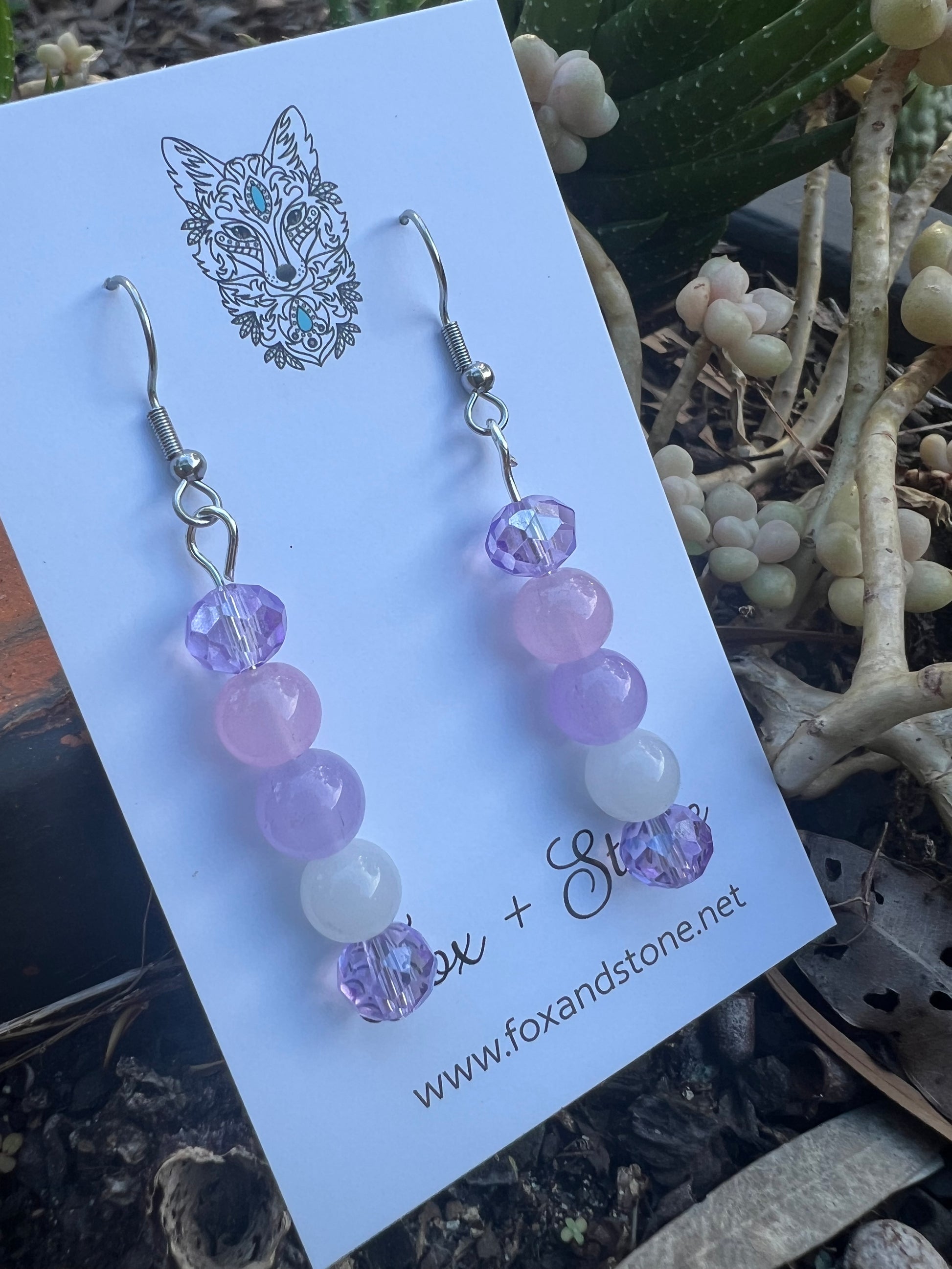 These beautiful soft coloured earrings feature natural 8mm gemstone beads designed specifically to support those struggling with anxiety to help find a sense of calm, comfort, and inner peace. Finished off with stunning faceted Czech Crystal beads