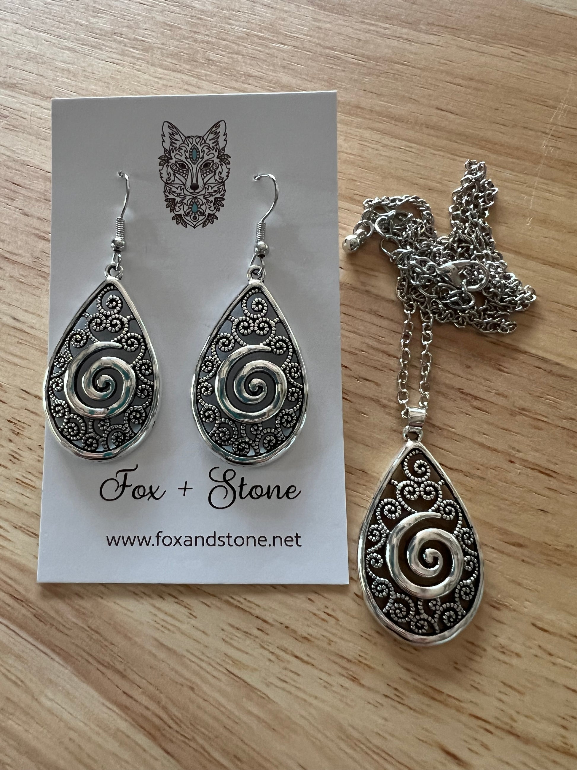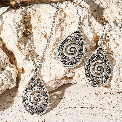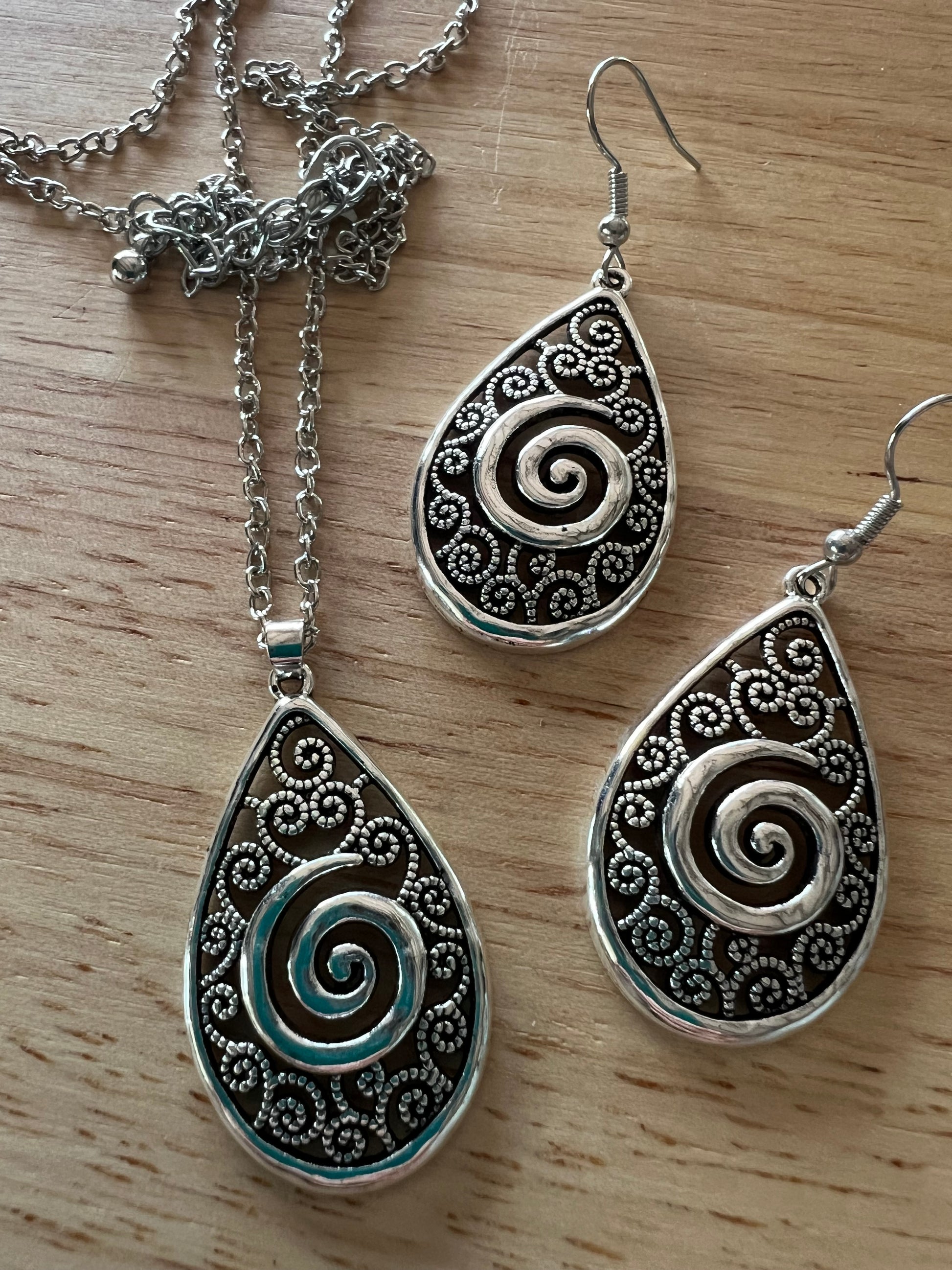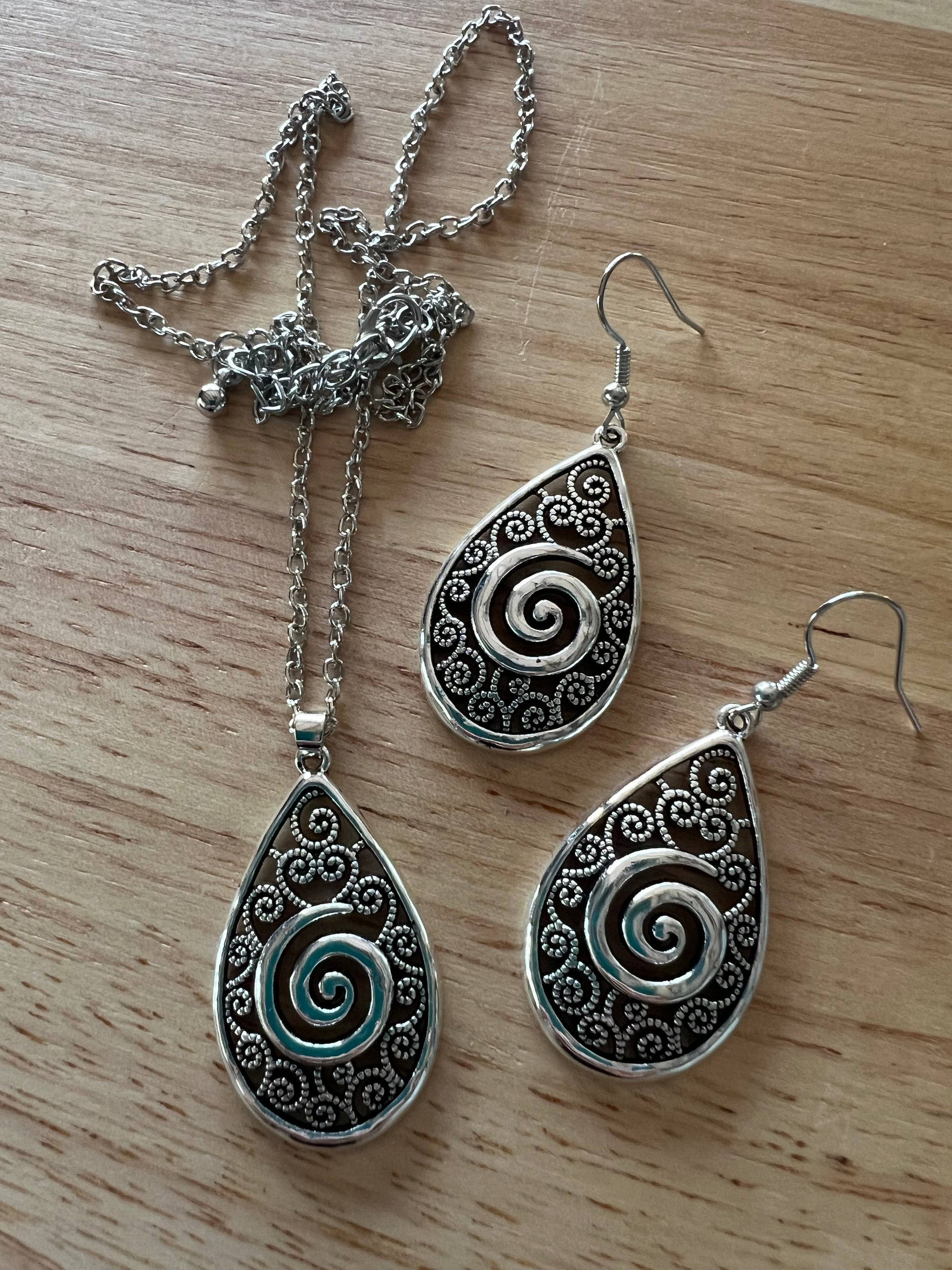Silver alloy earrings and pendant with chain