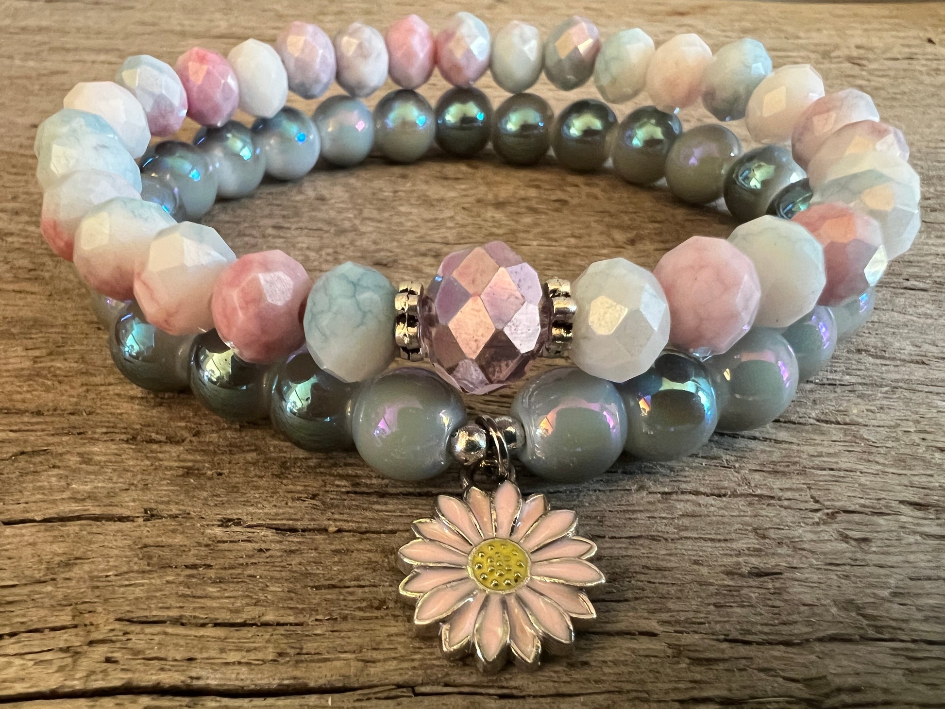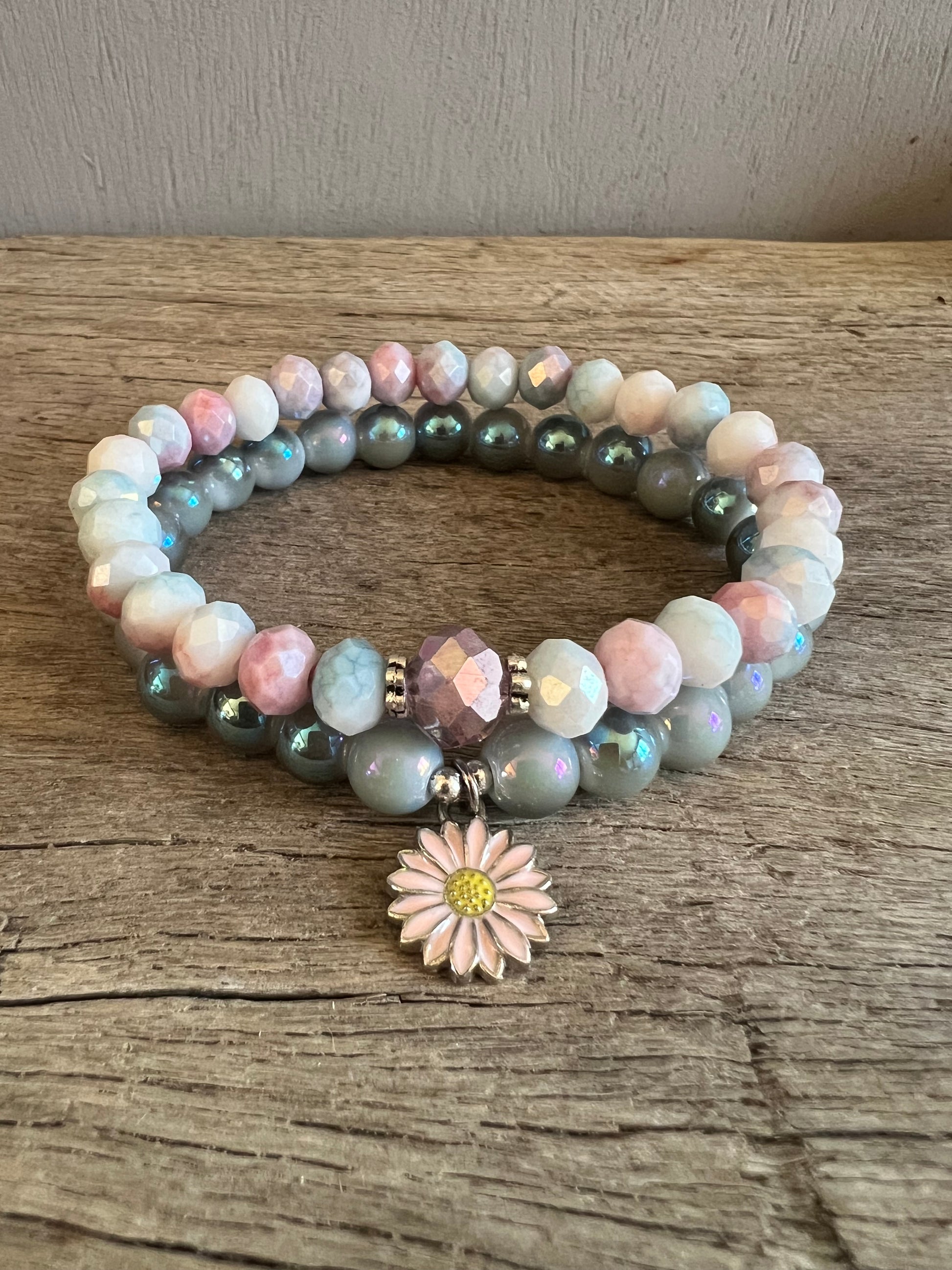 Daisy Charm Czeck Beaded Bracelet Set