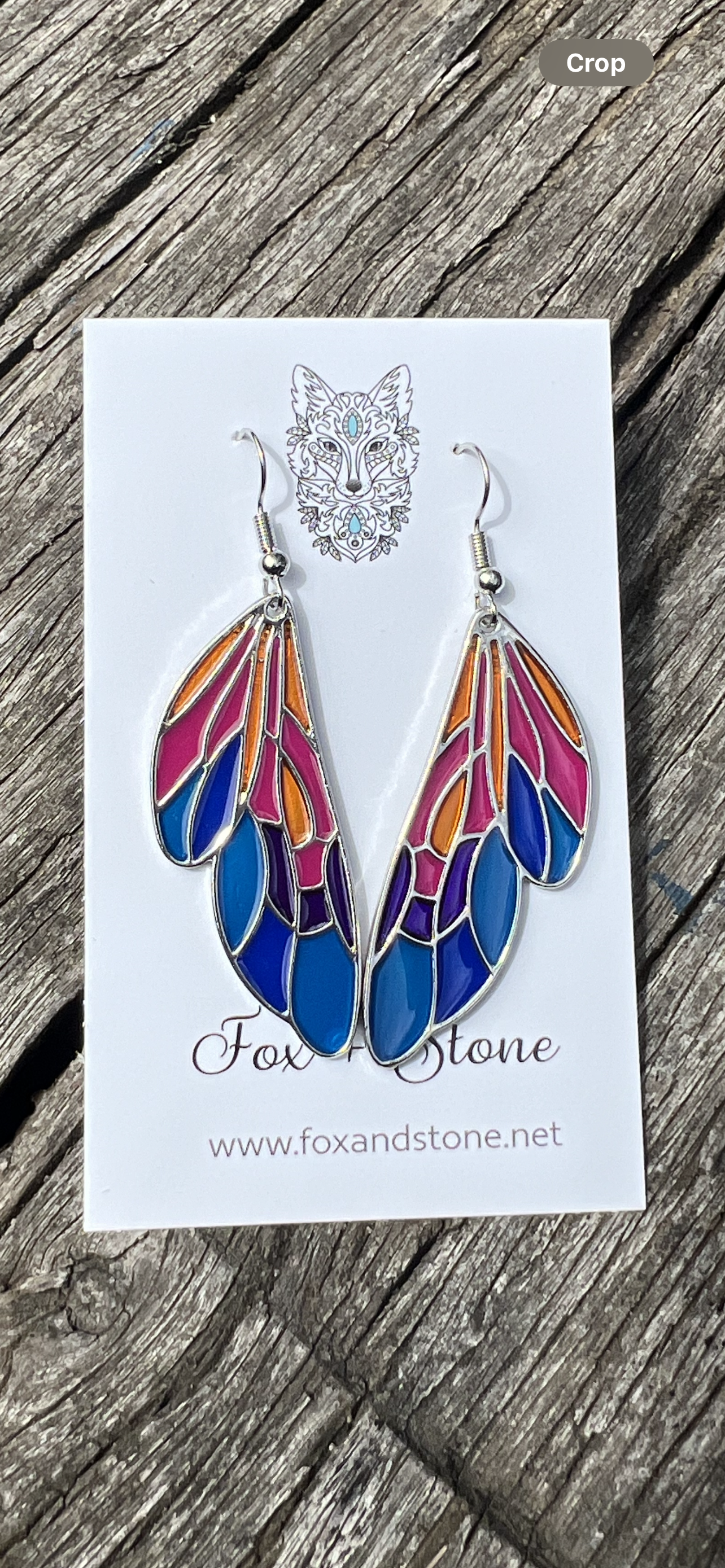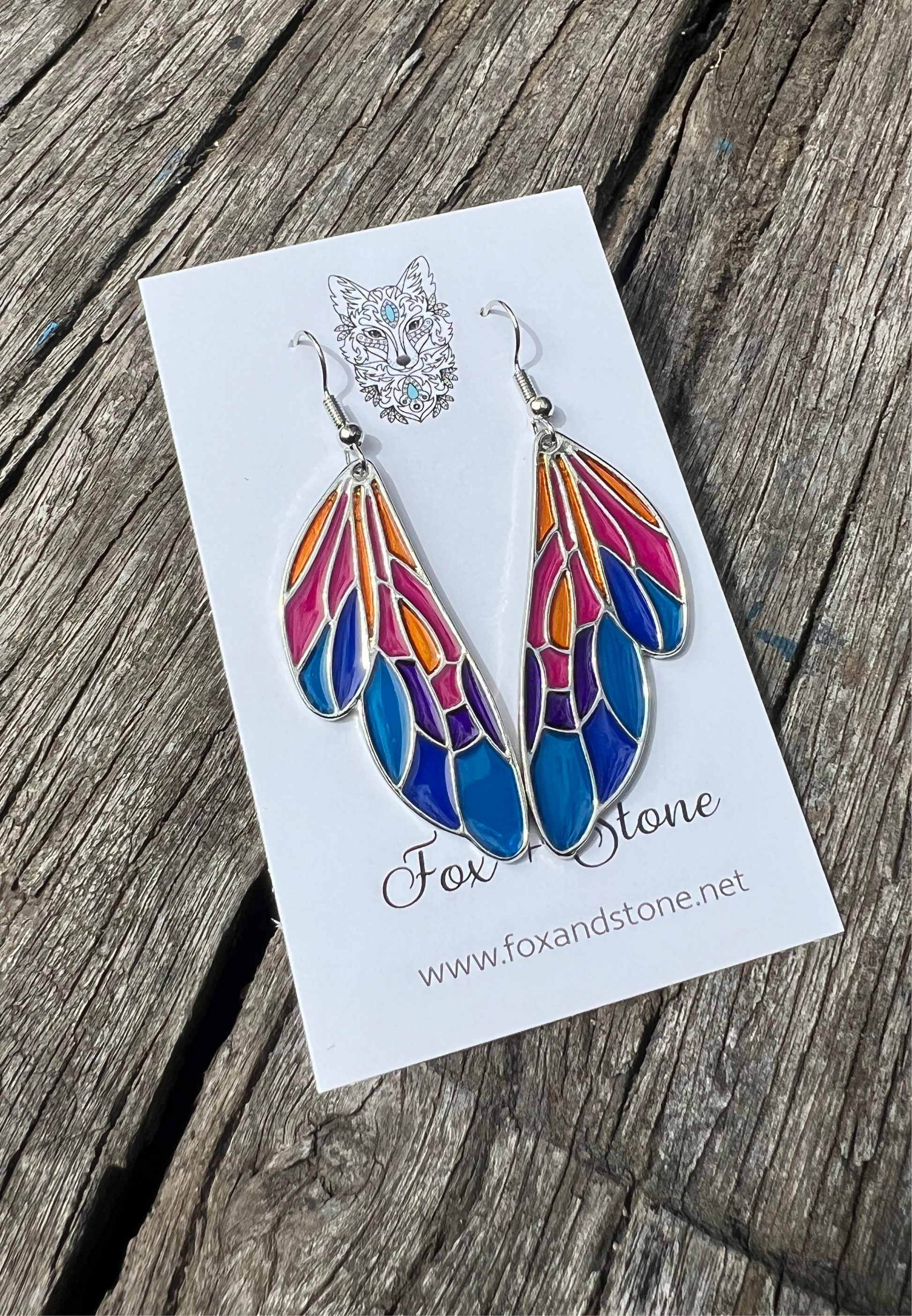 Stunning alloy silver earrings featuring a faux stained glass effect