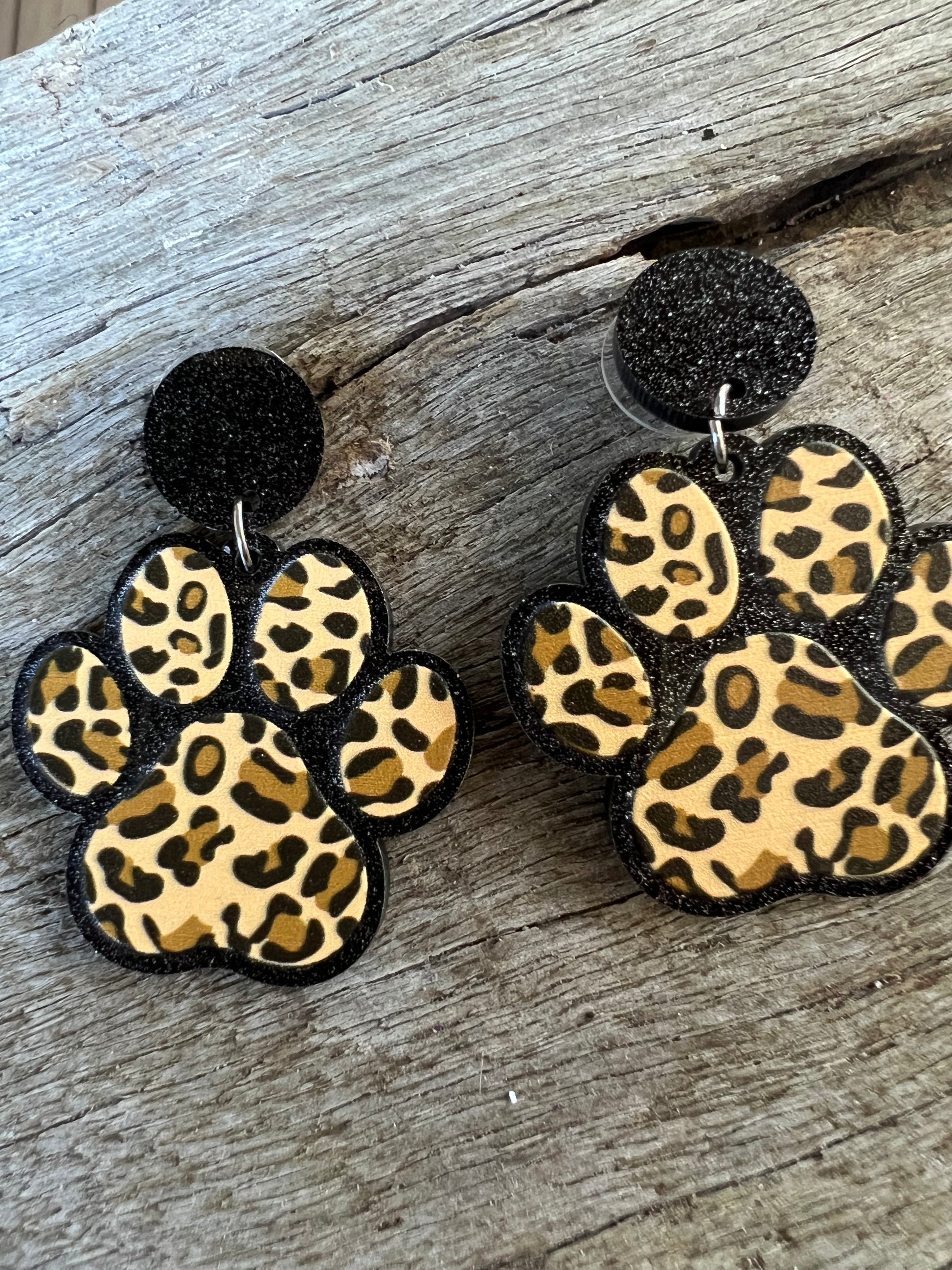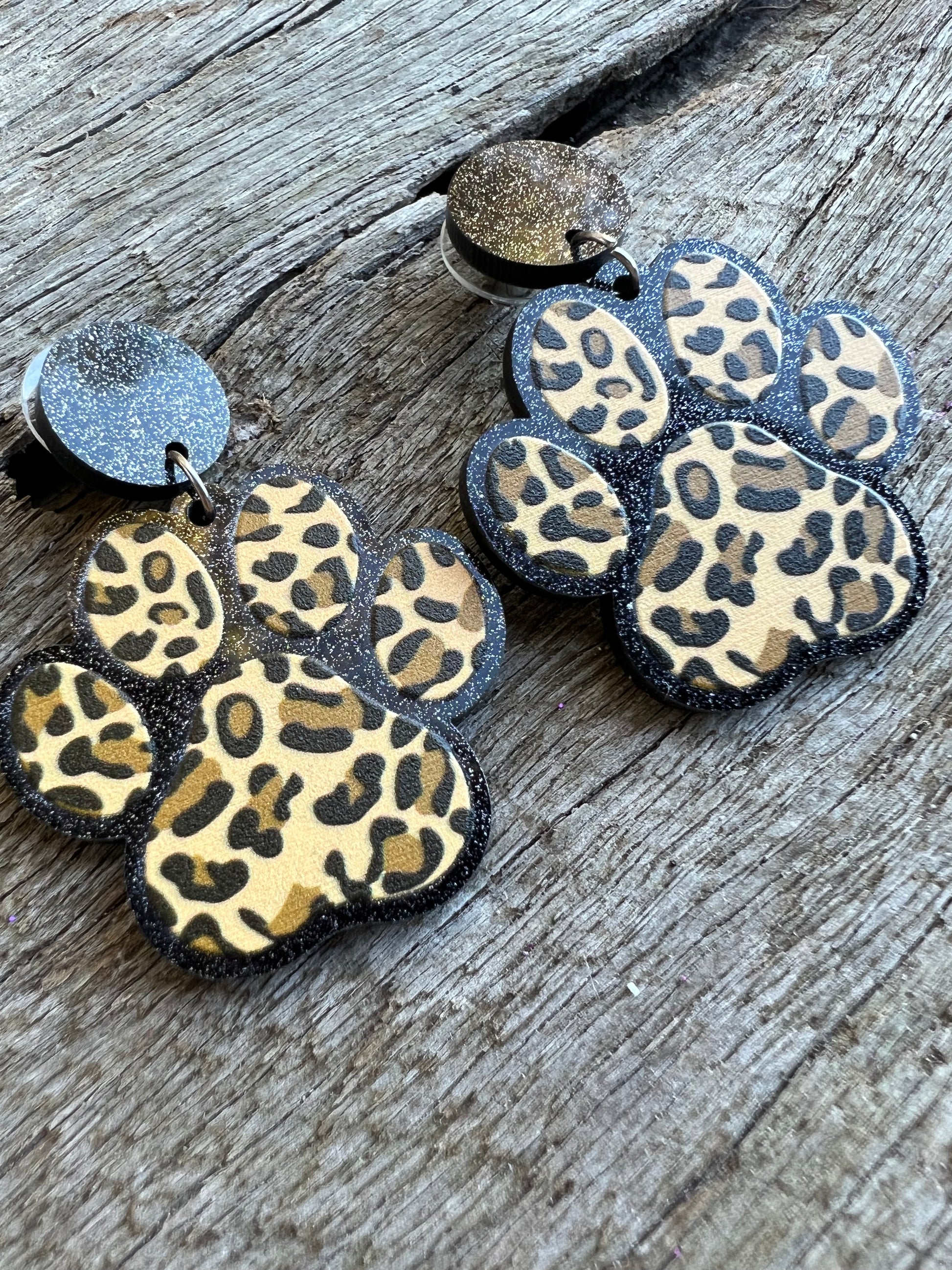 Dog Paw Leopard Print Earrings
