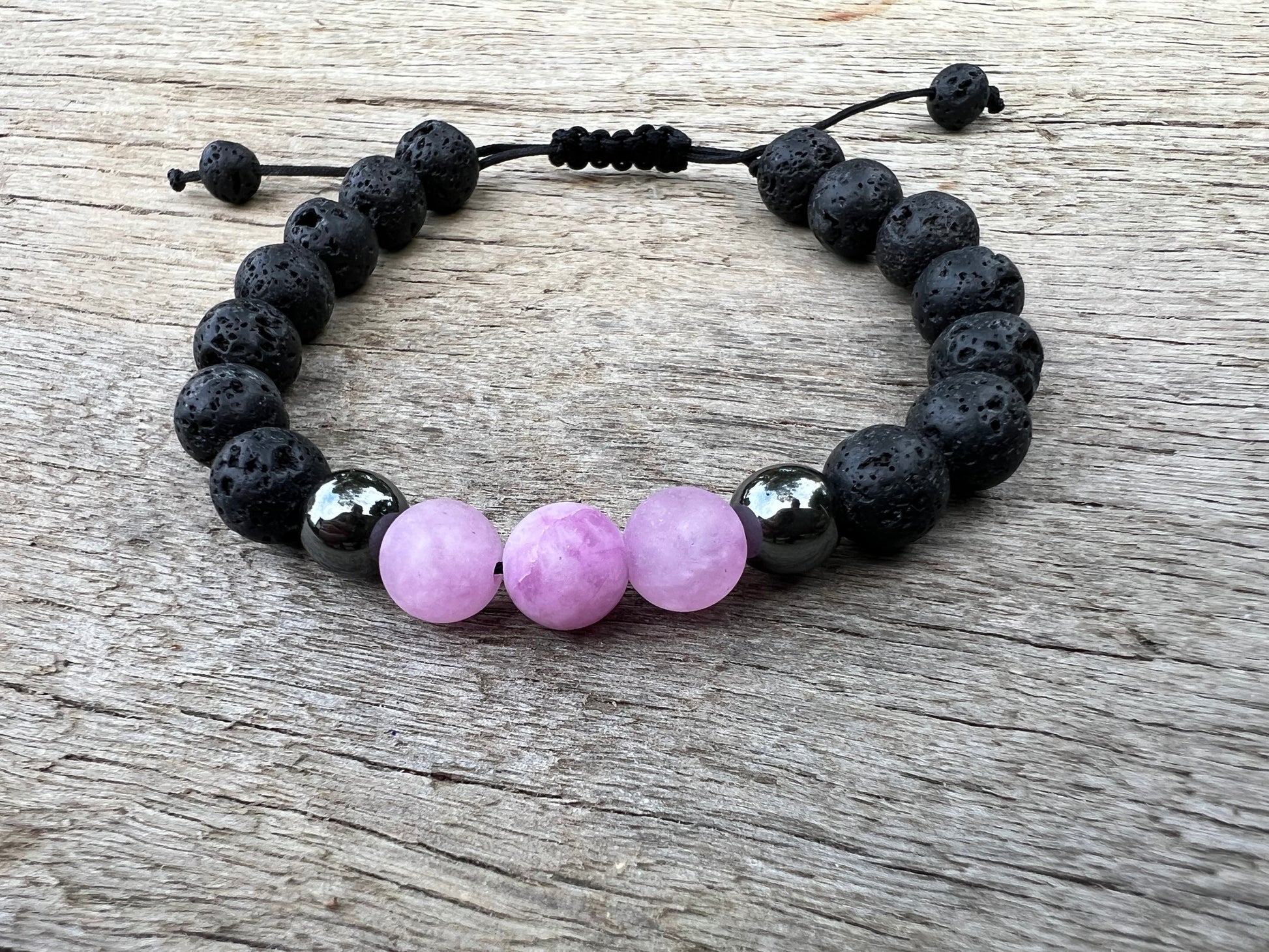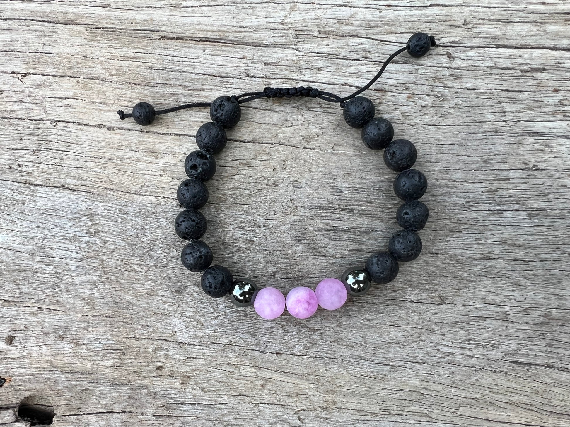 Pretty Pink Jasper Lava Hematite Gemstone Bracelet