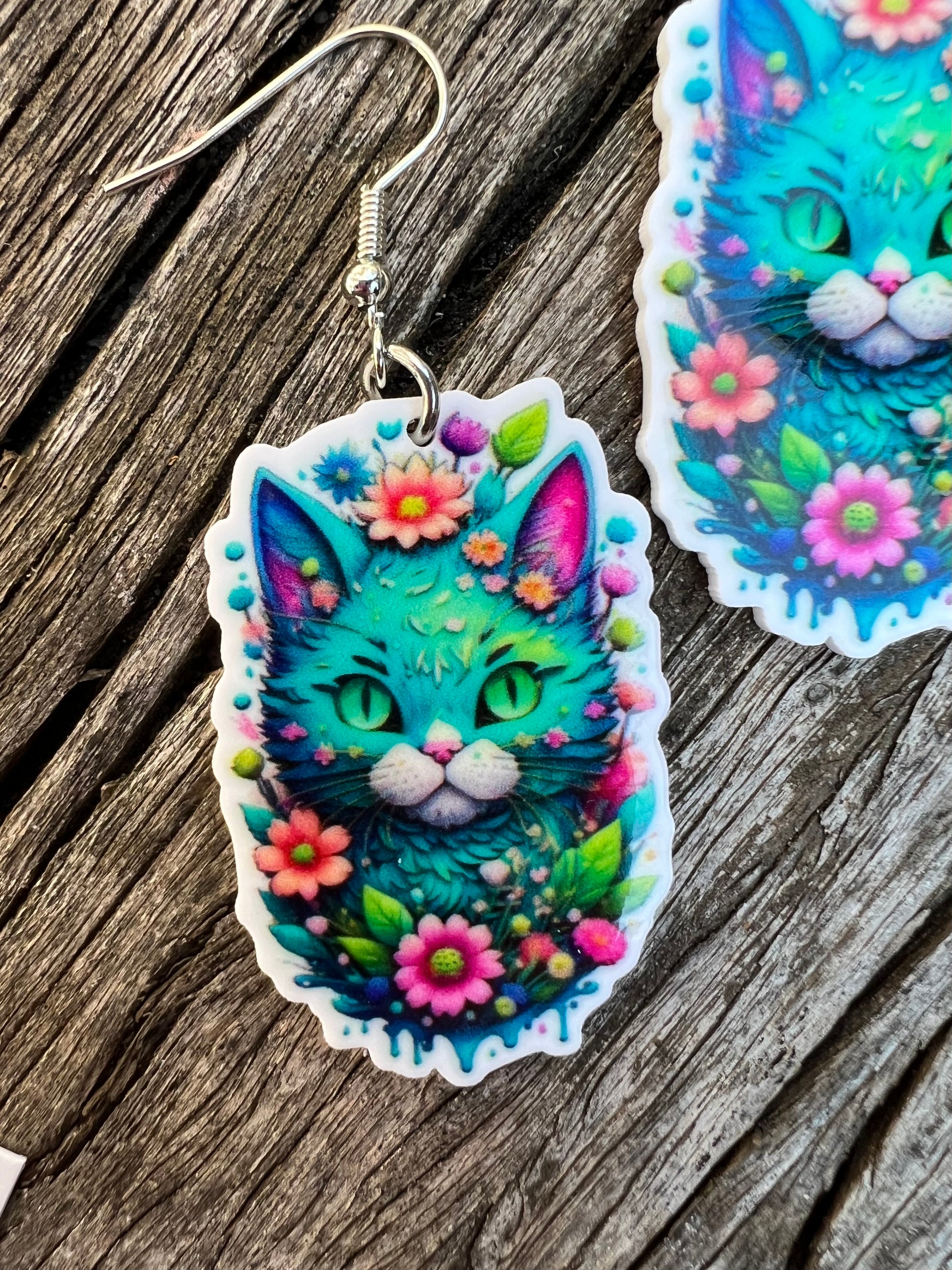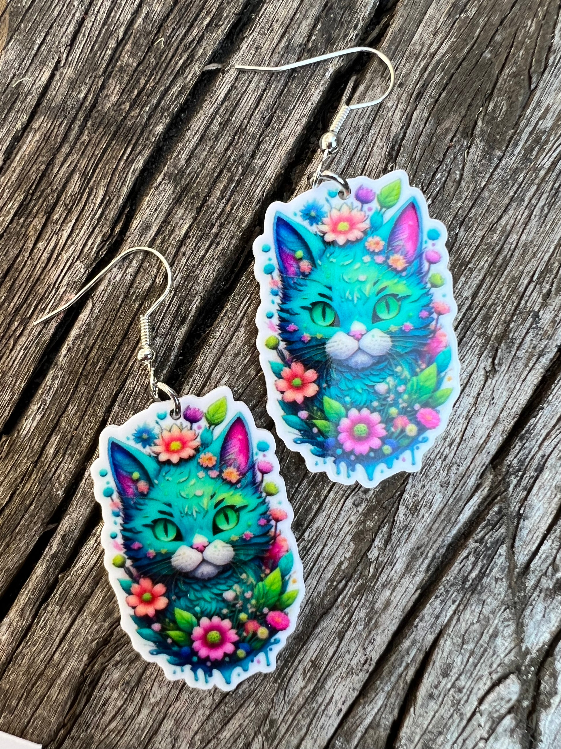 Stunning Colourful Cat Earrings