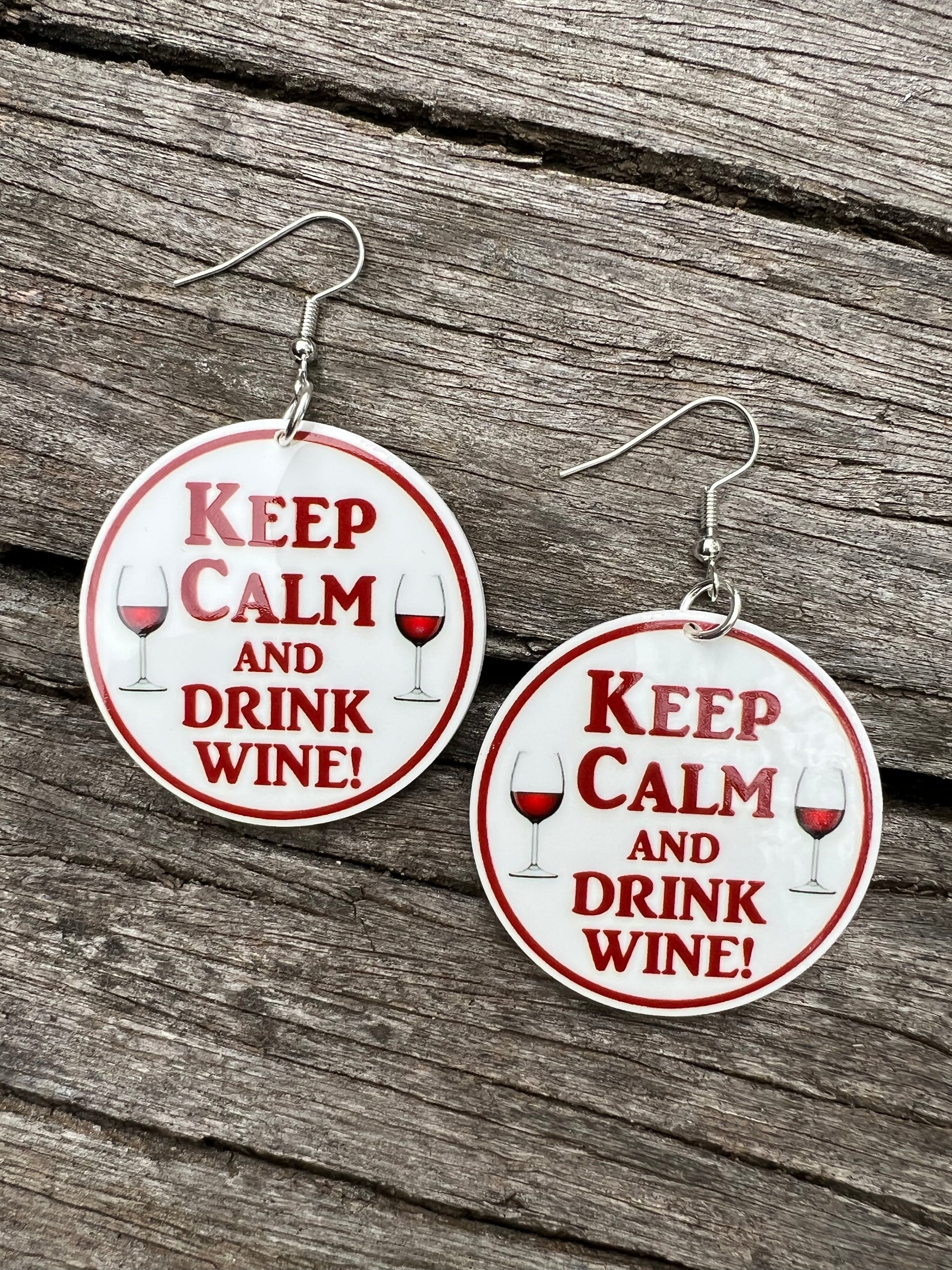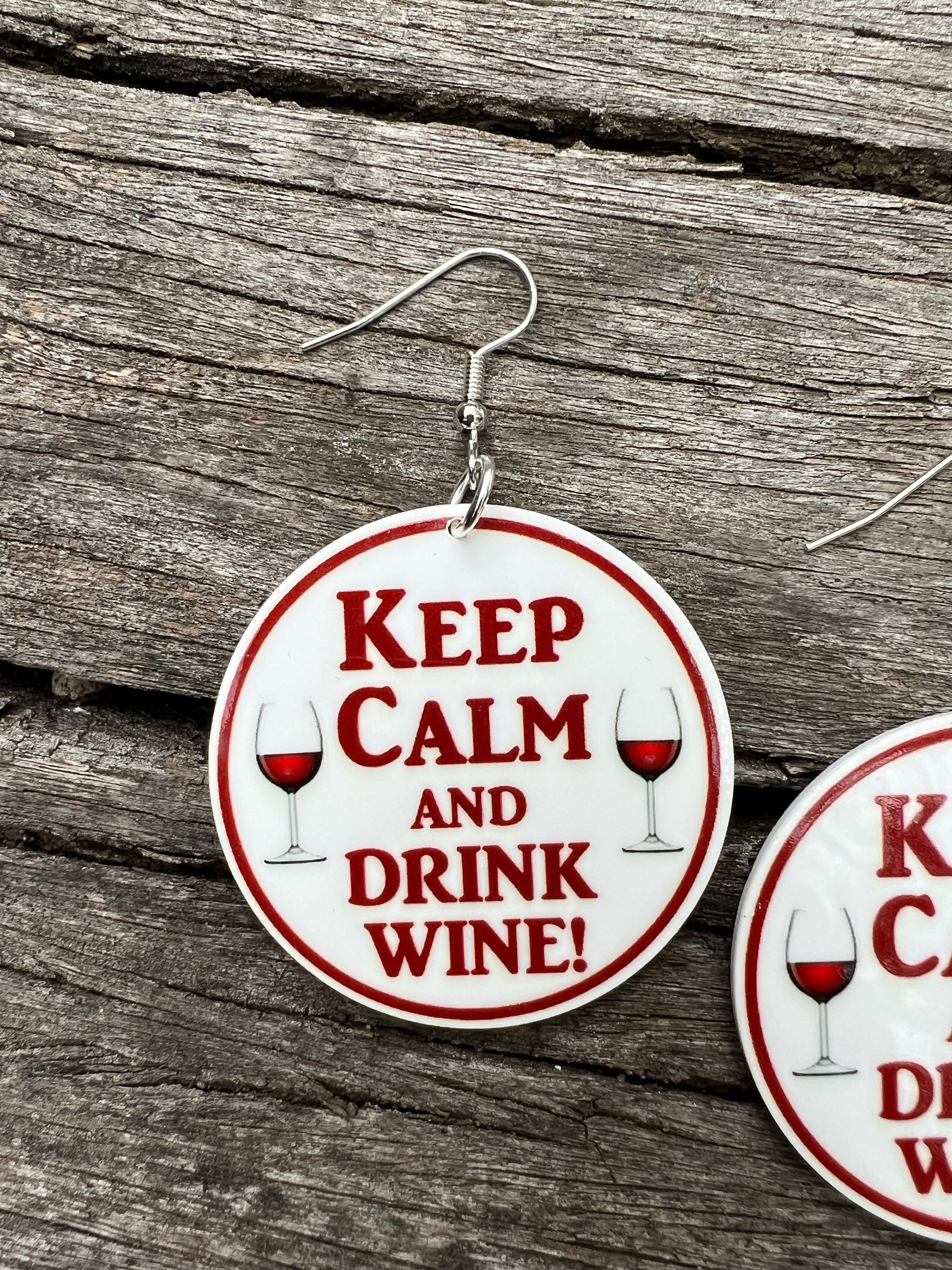 Keep Calm Drink Wine Earrings