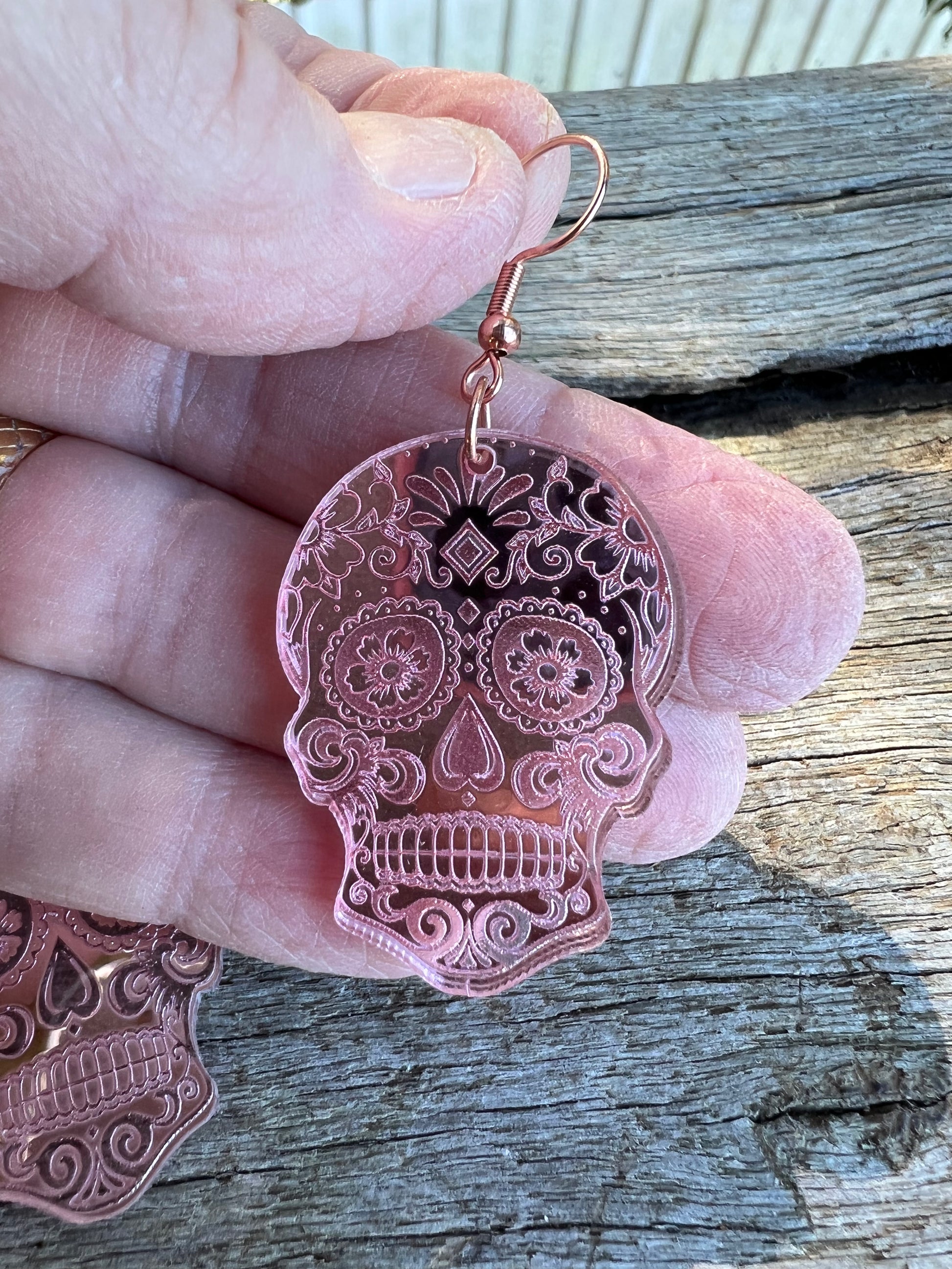 Rose Gold Sugar Skull Earrings