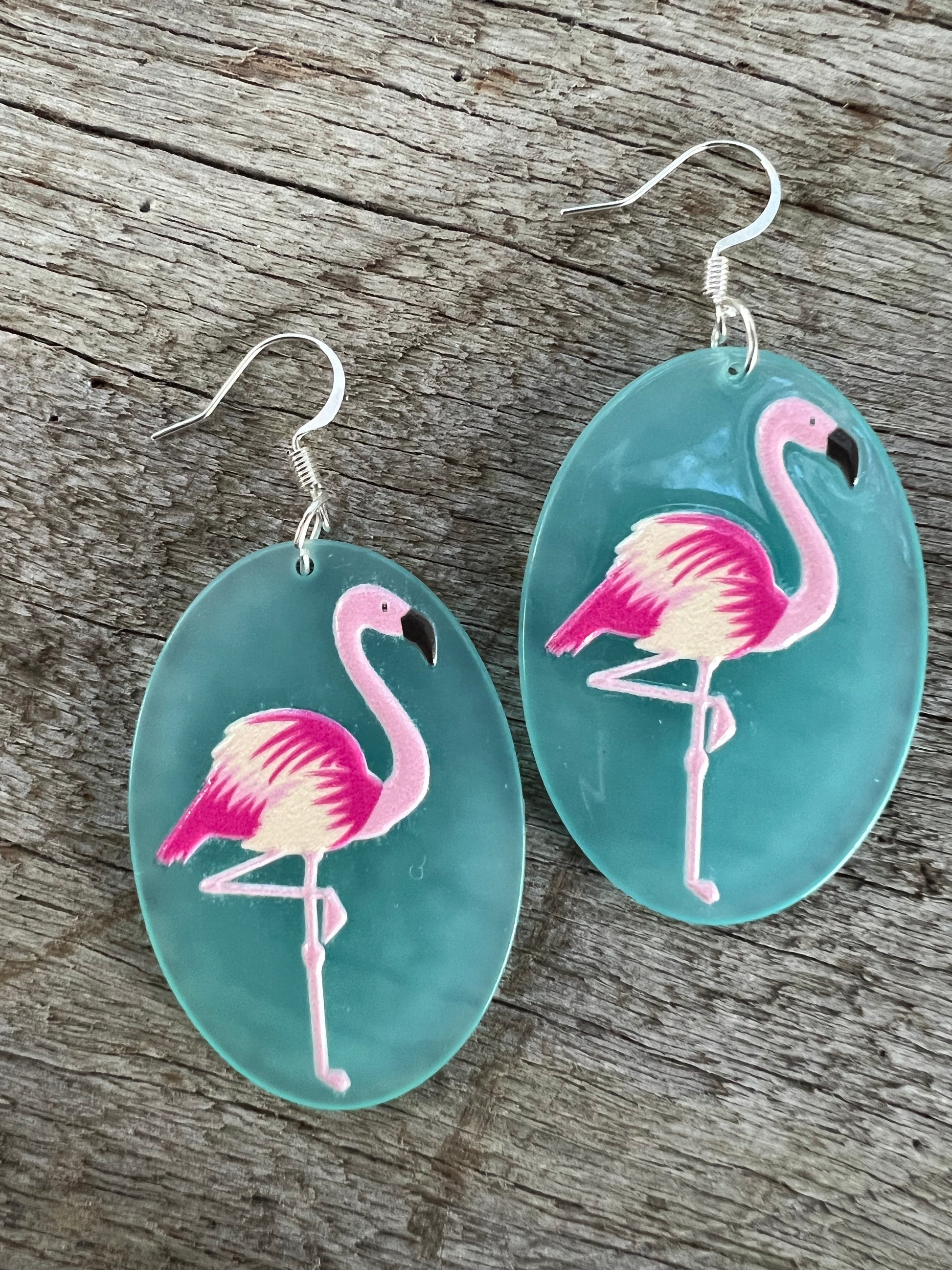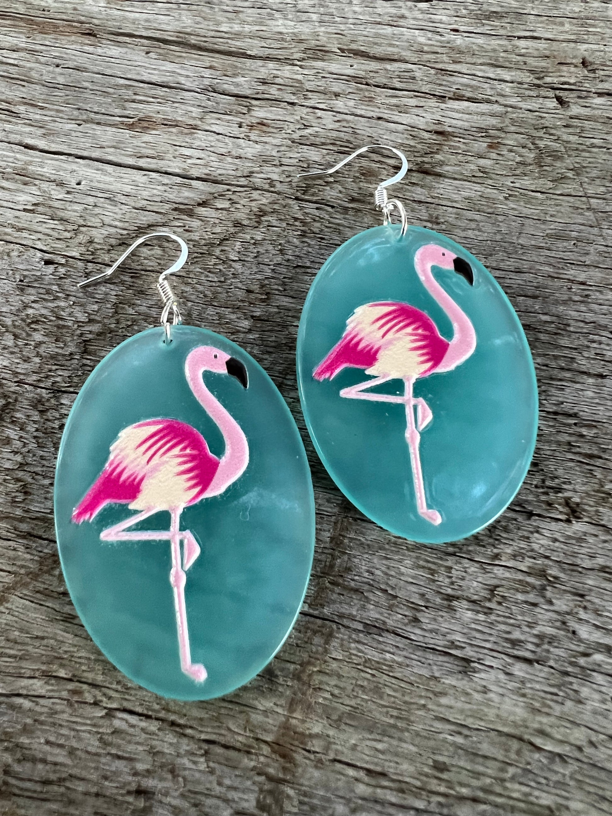 Pink Flamingo Blue Design Earrings