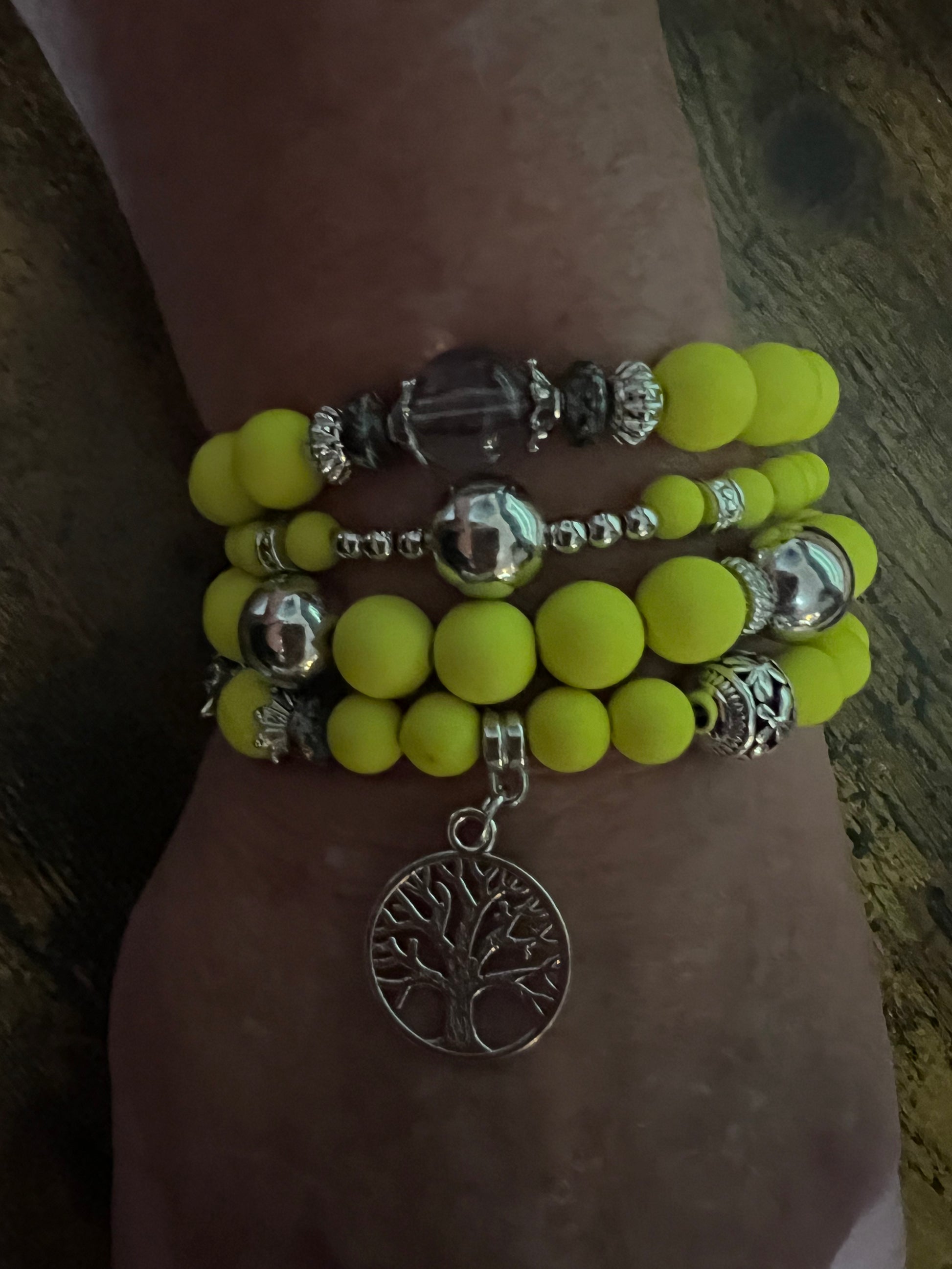 Beautiful bracelet stacks using a mix of silicone and plastic light weight beads