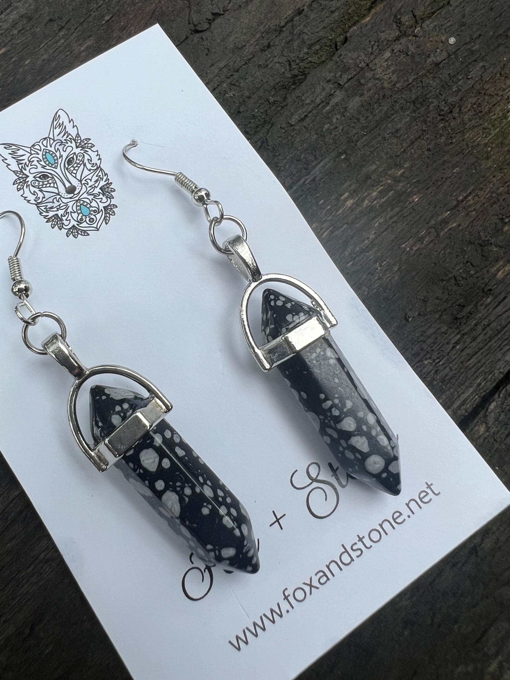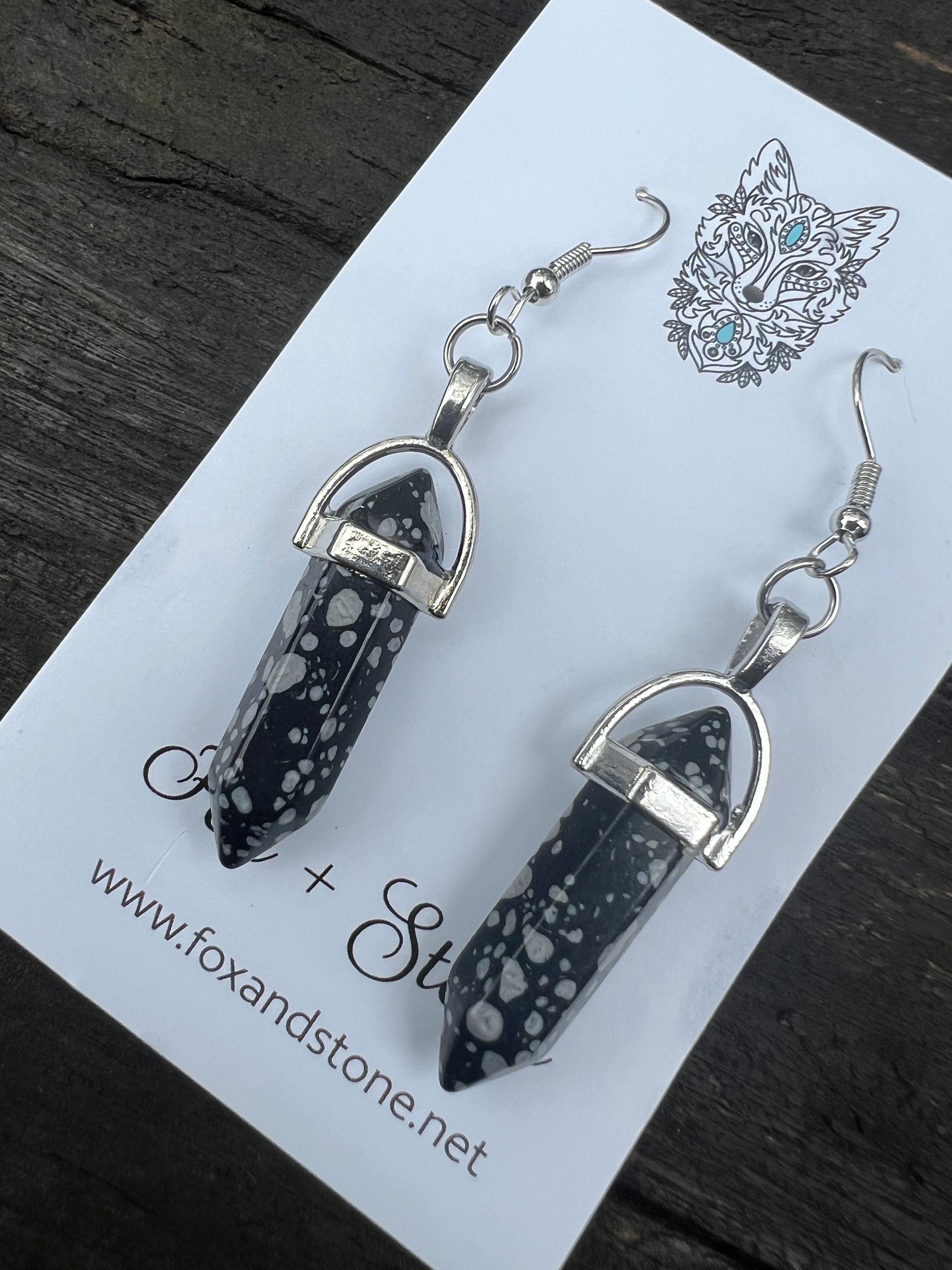 Snowflake Obsidian Gemstone Bullet Point Earrings