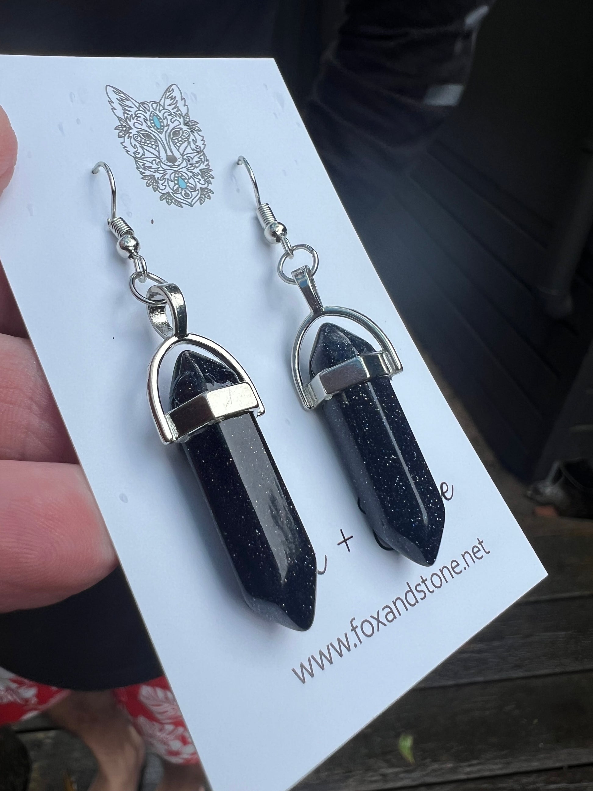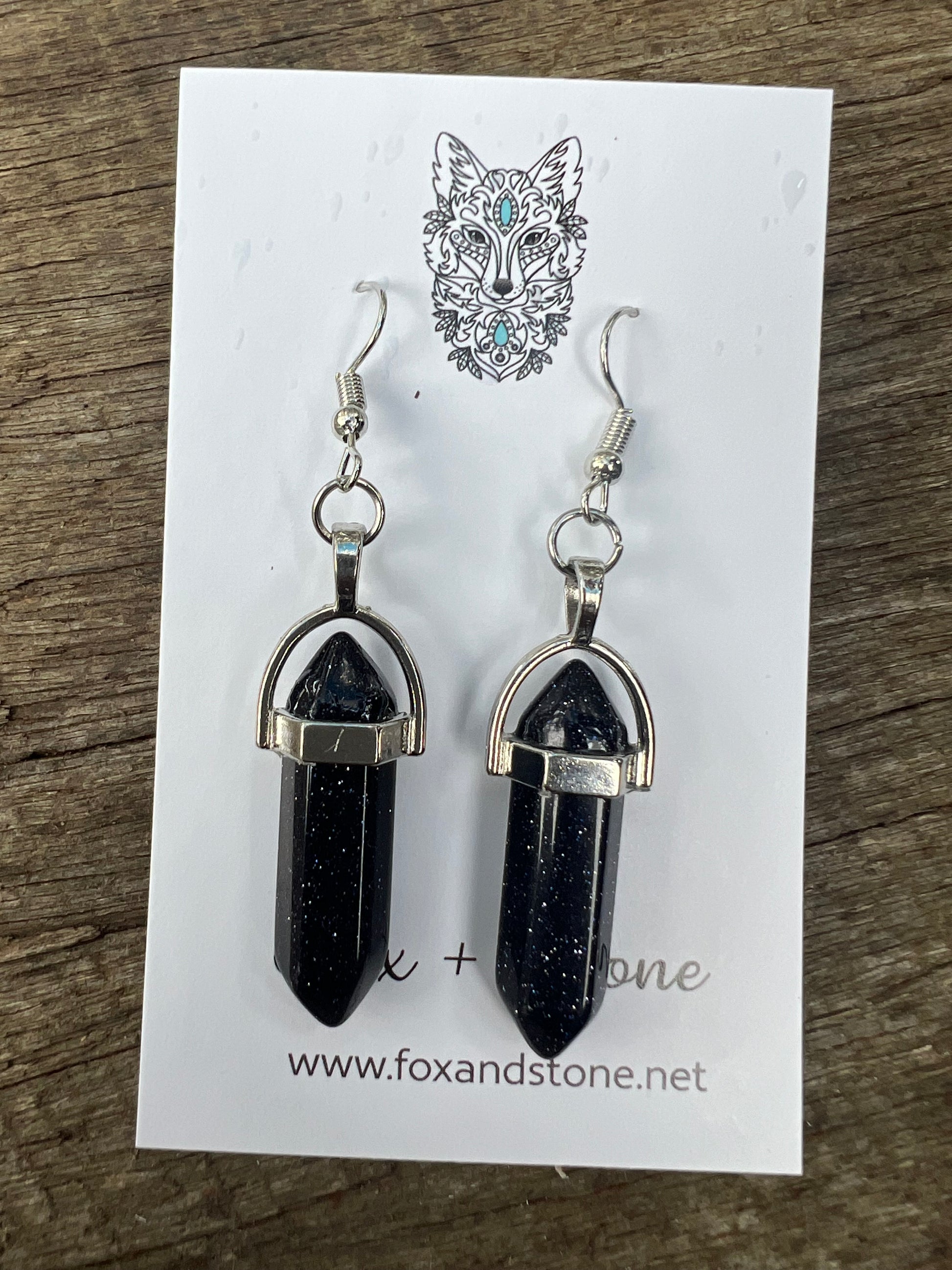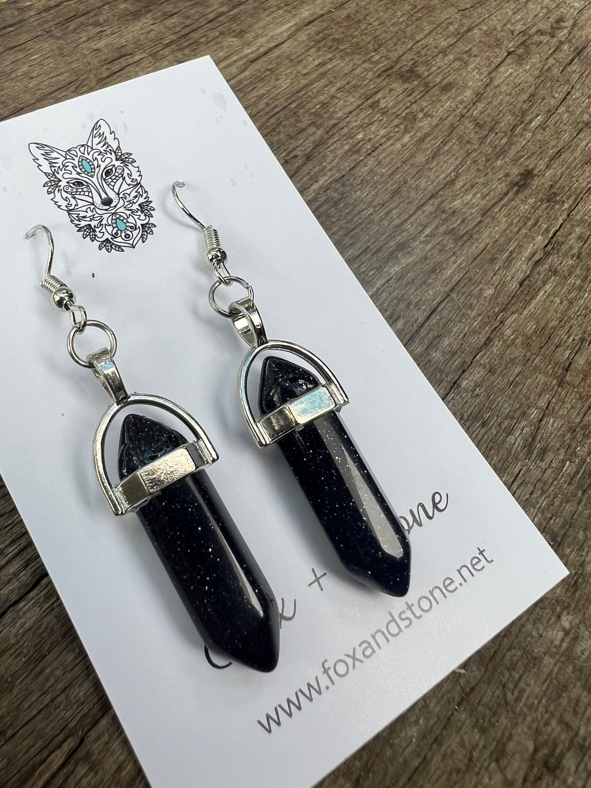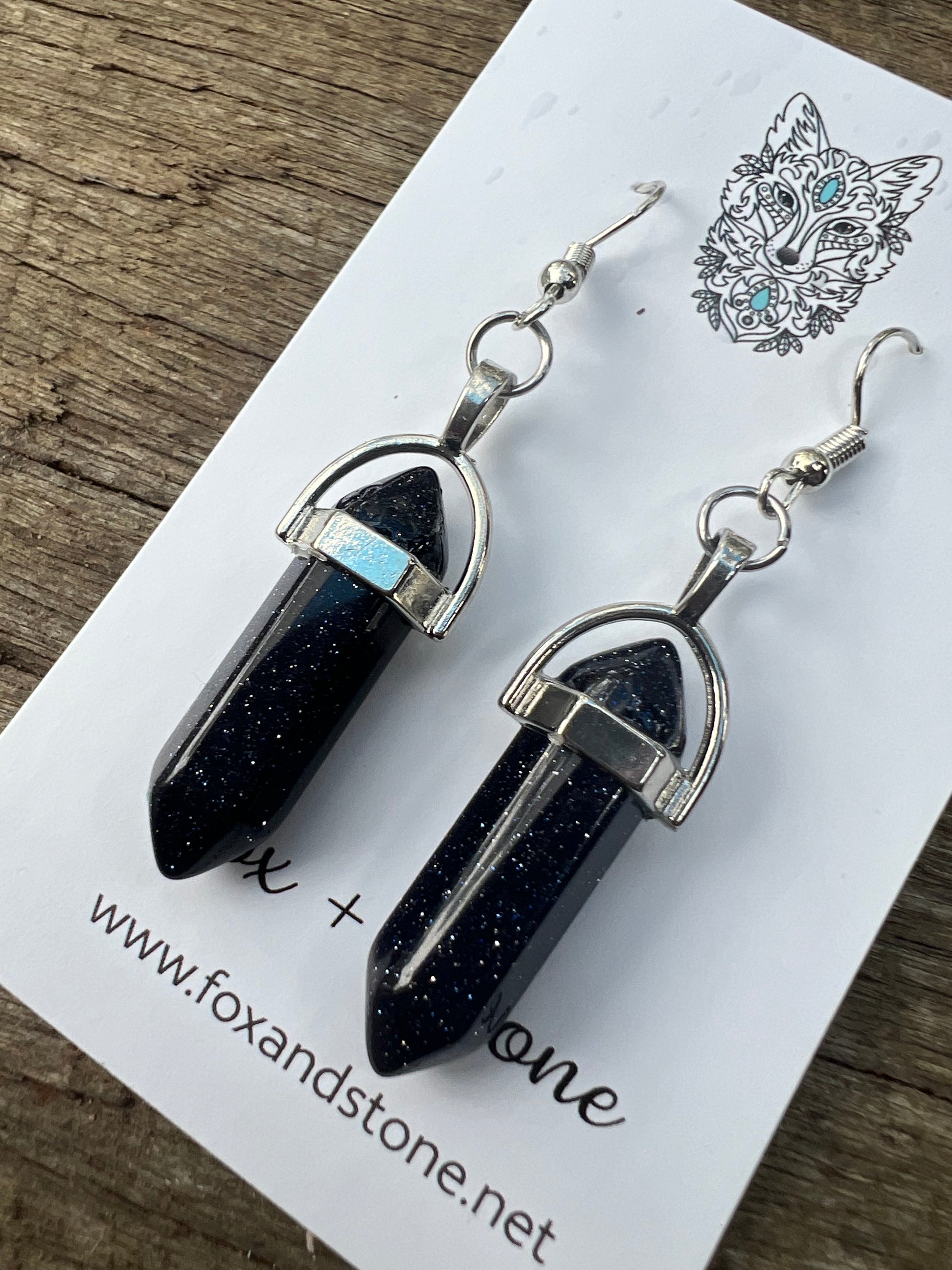 Blue Sandstone Gemstone Bullet Point Earrings