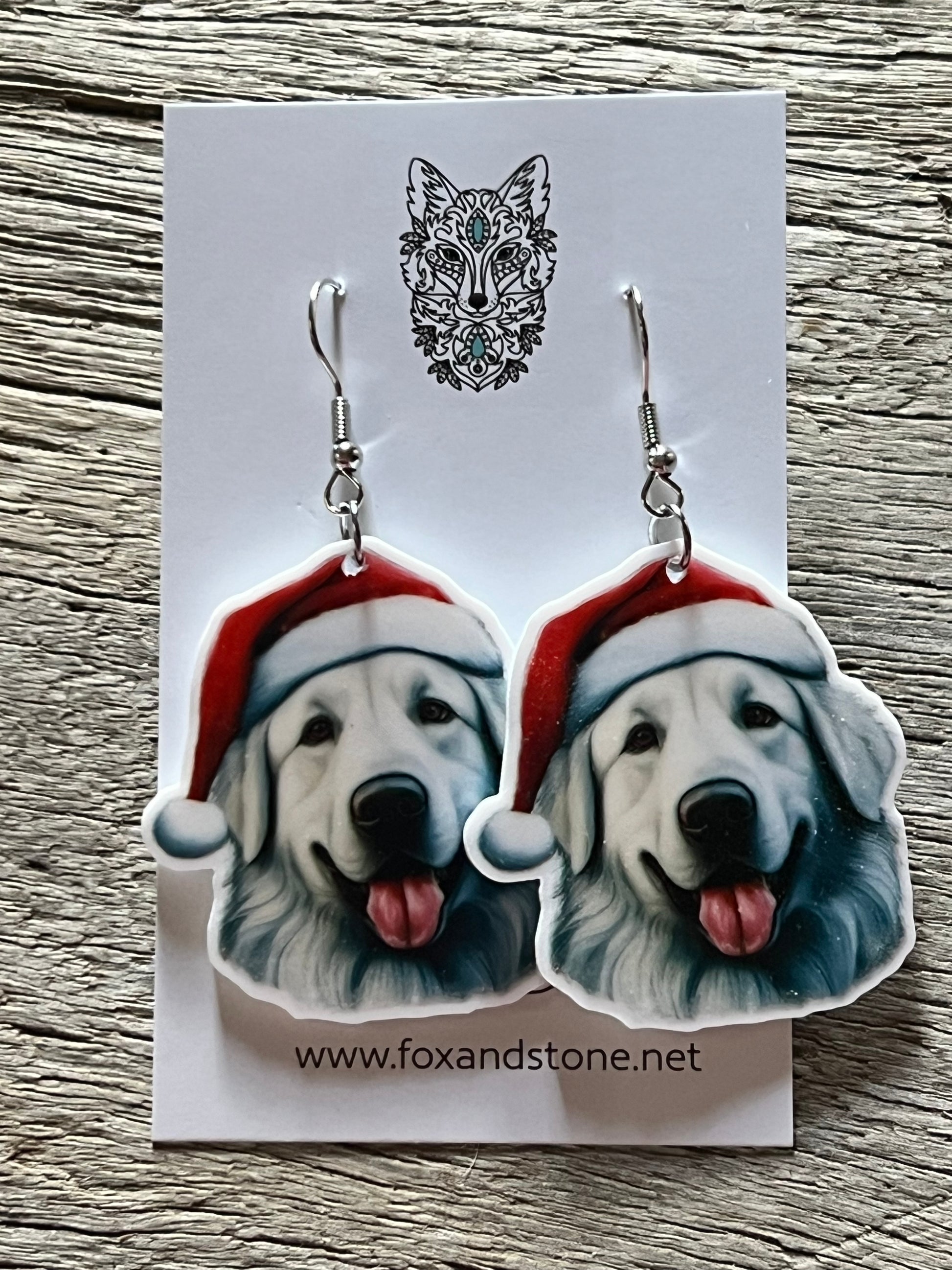 Great Pyrenees Santa Hat Dog Earrings