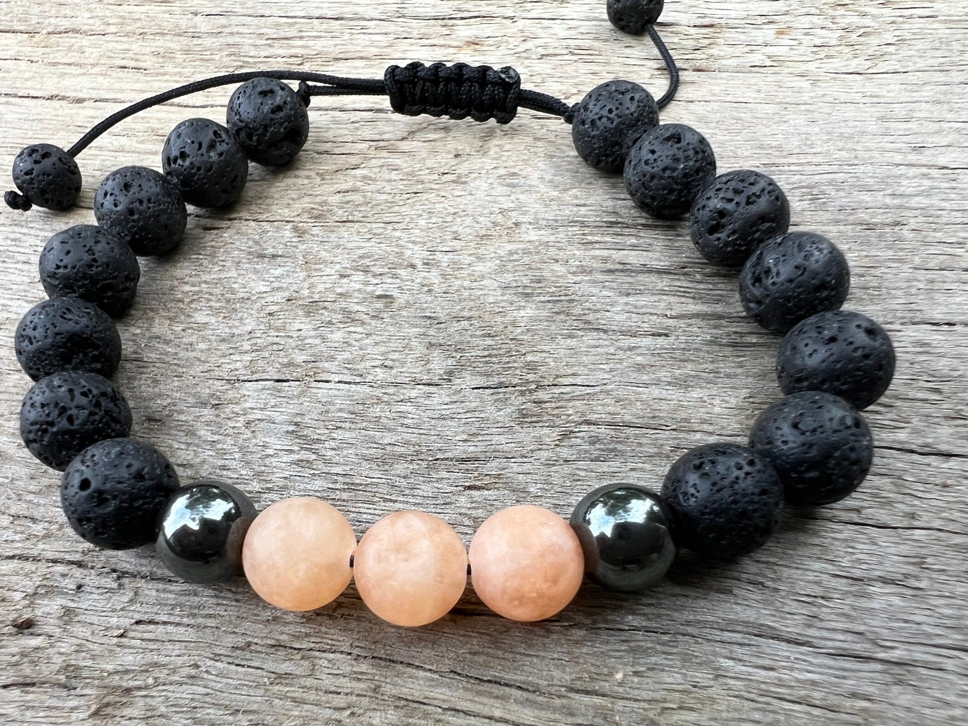 Pale Jasper Lava Hematite Gemstone Bracelet