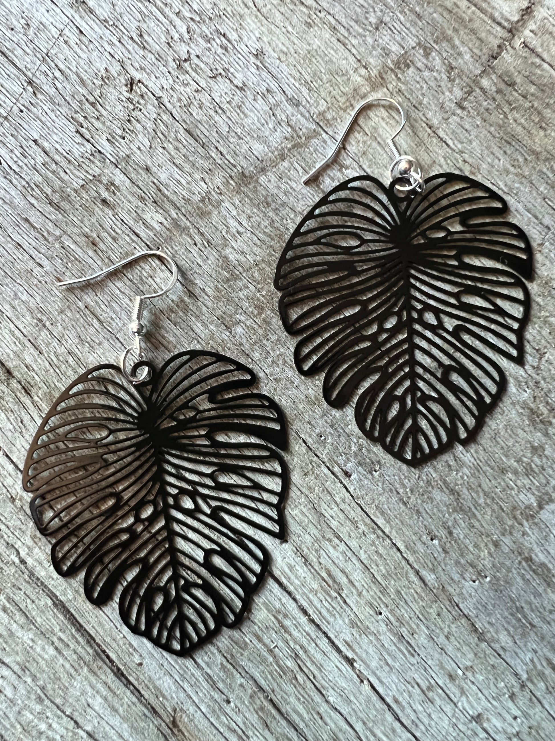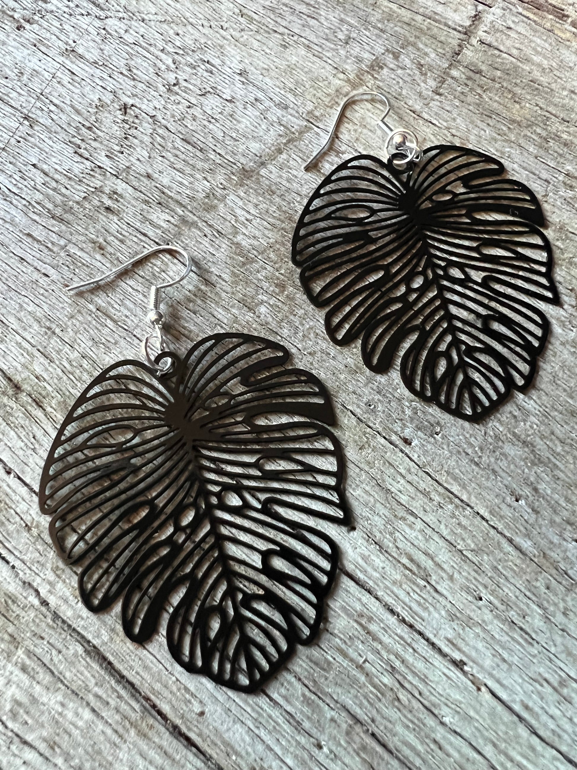 Black Large Monstera Leaf Filigree