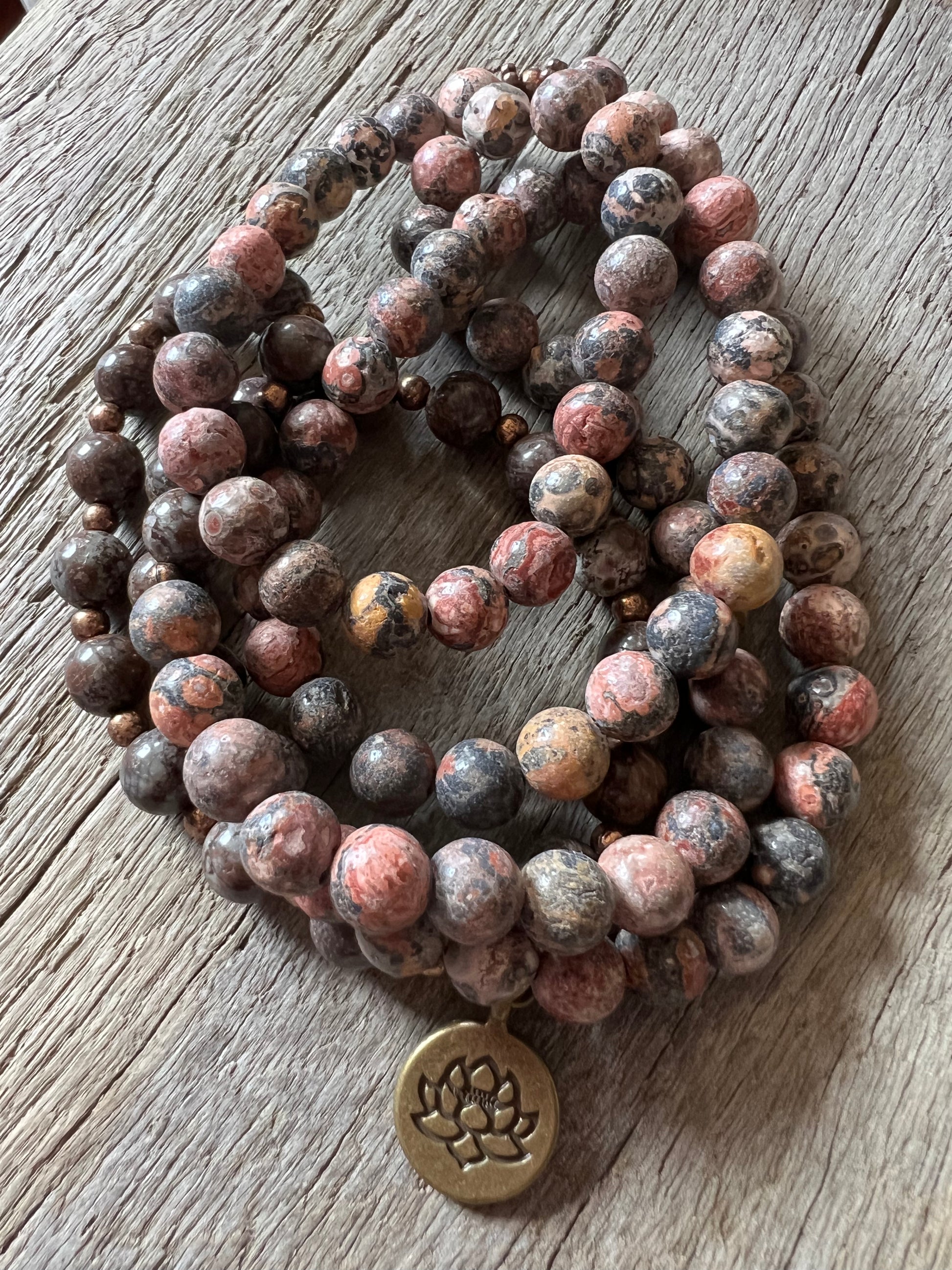 Gemstone used in this Mala is matte 8mm leopard Jasper gemstone beads