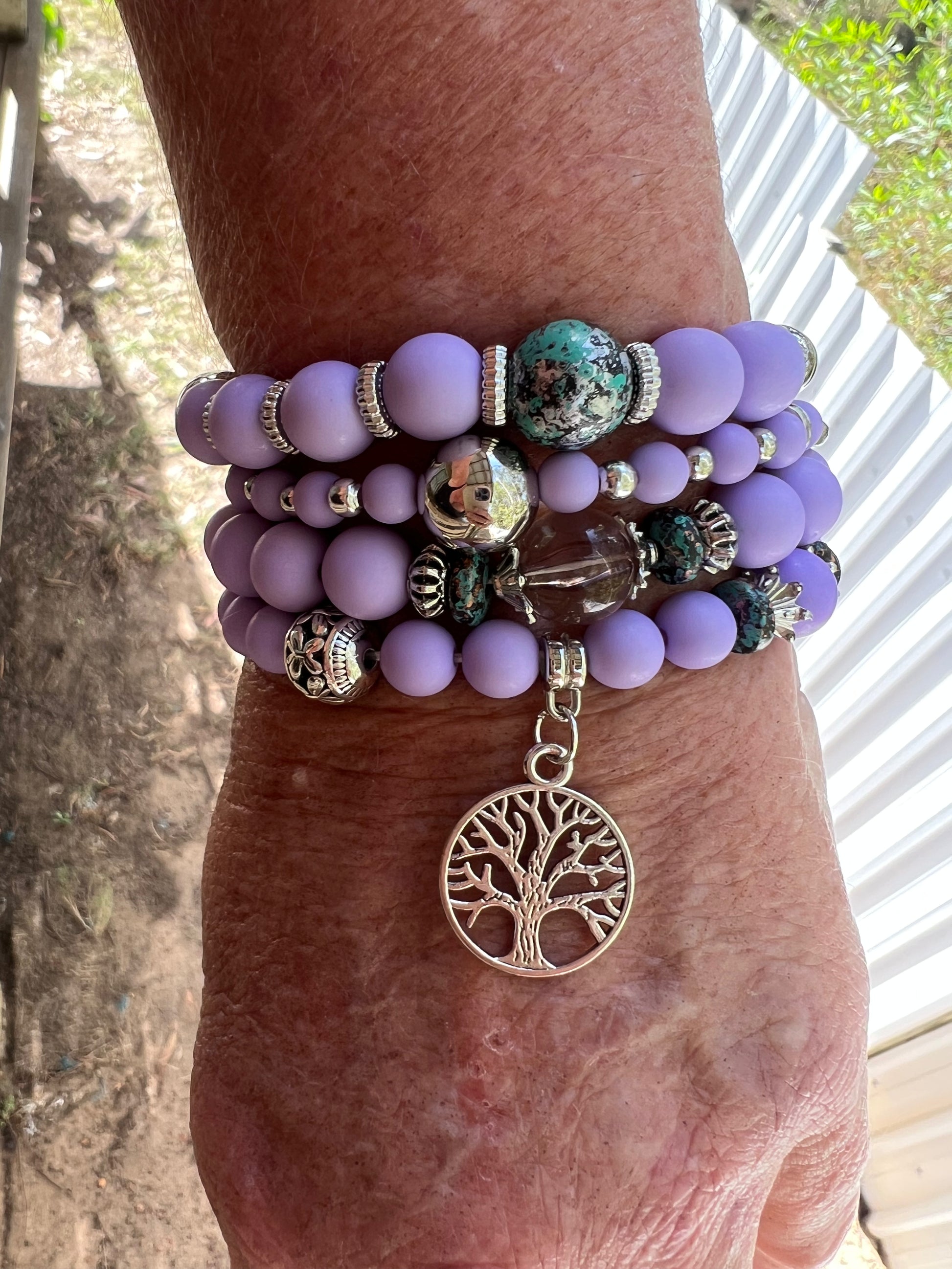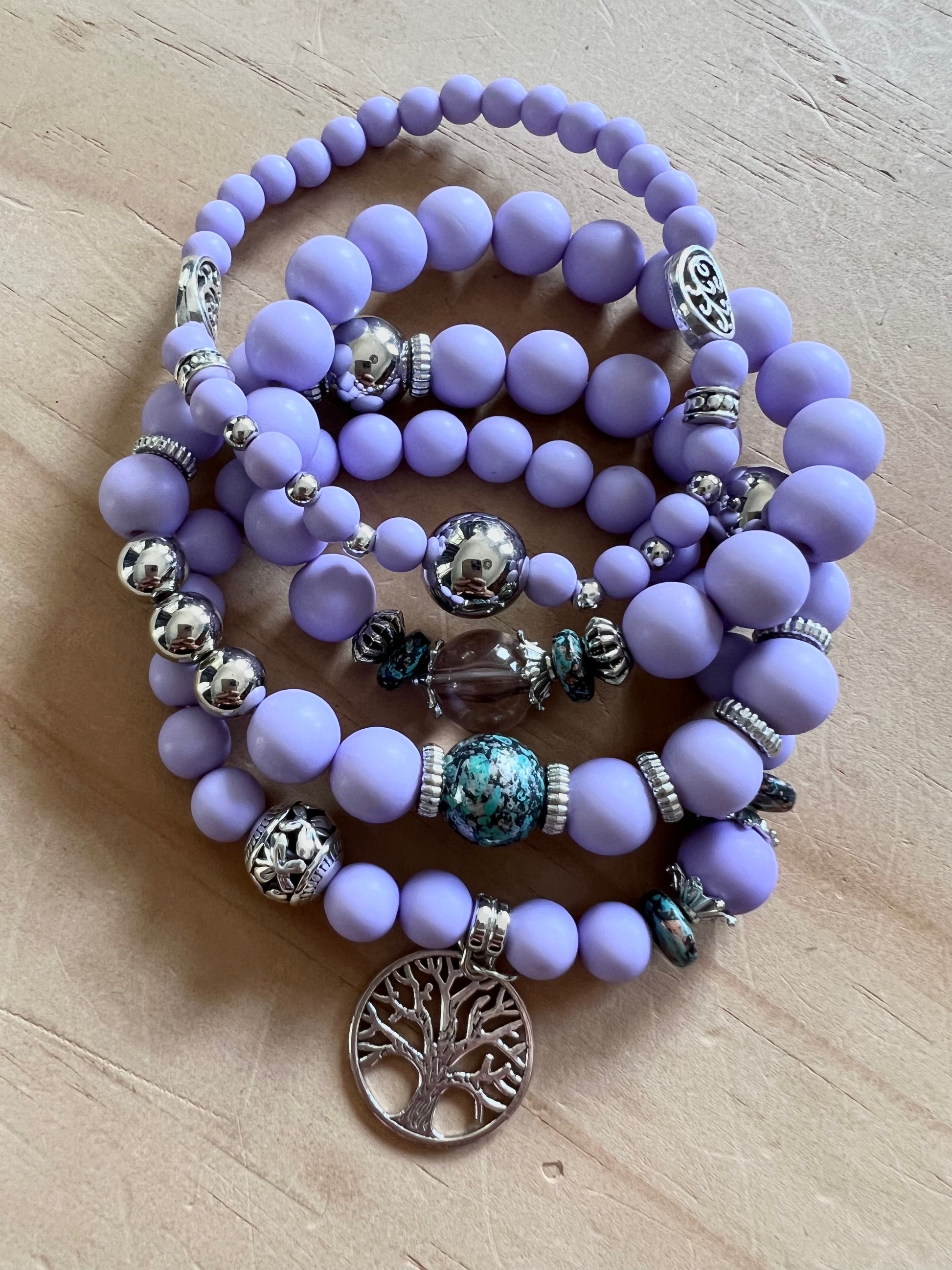 Beautiful bracelet stacks using a mix of silicone and plastic light weight beads