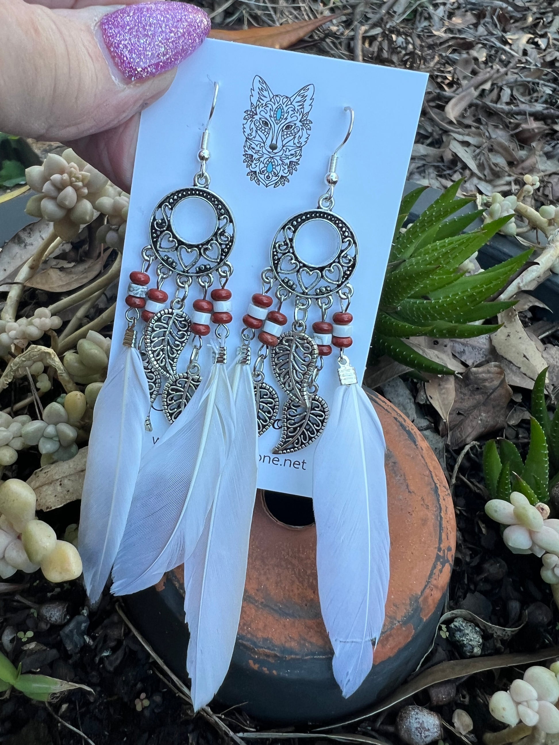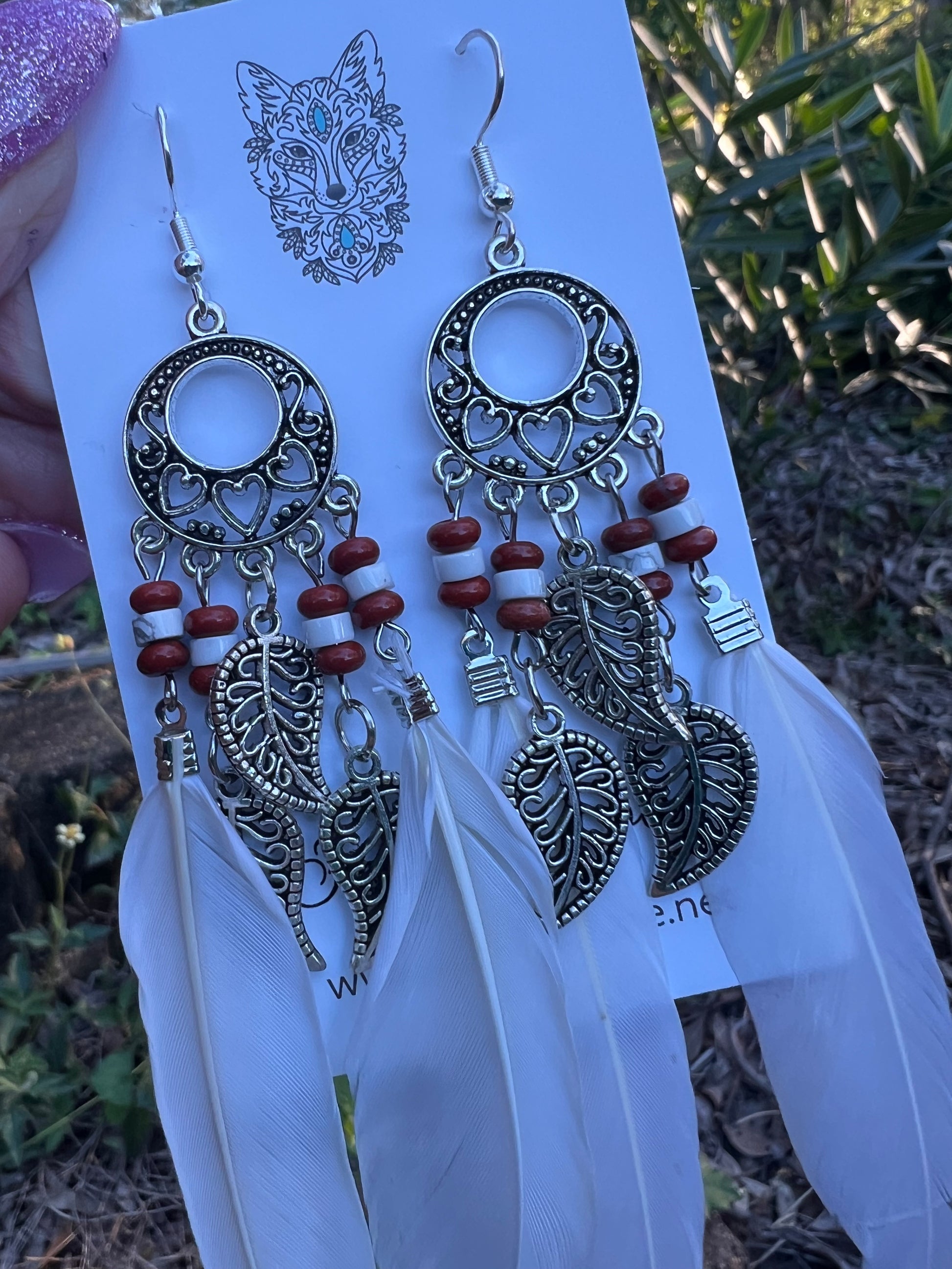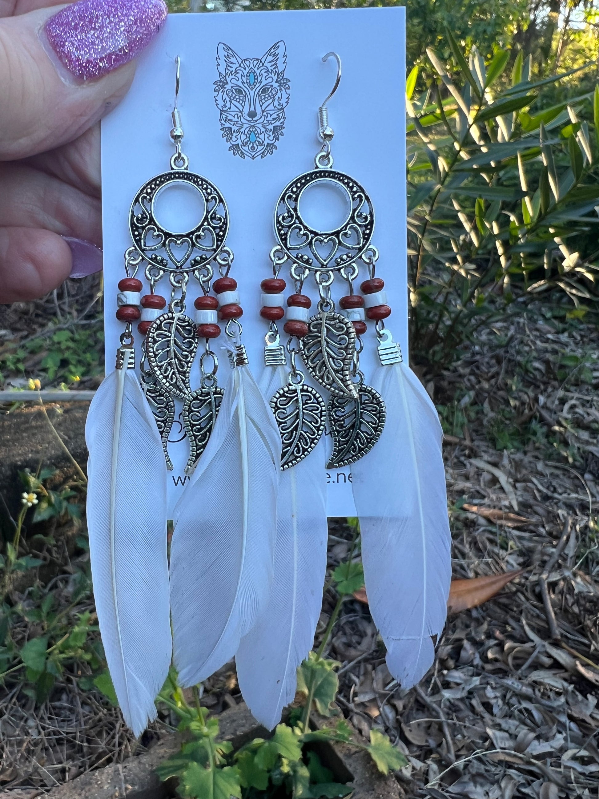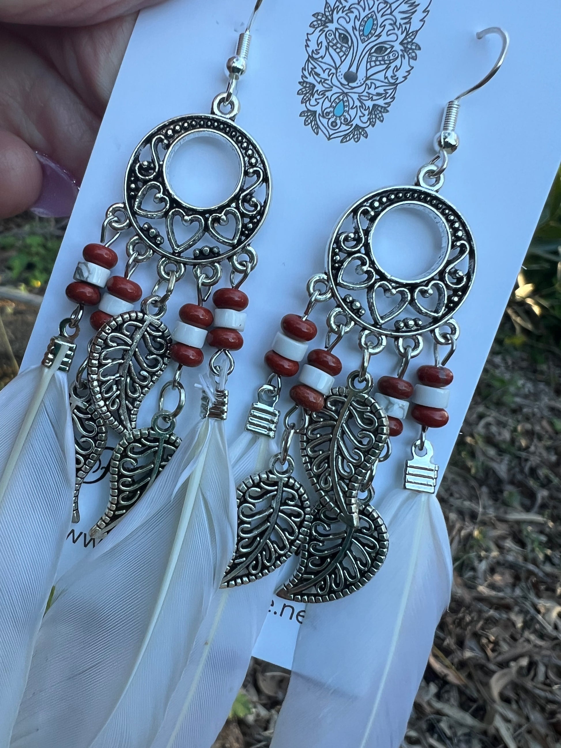 Stunning Silver Leaf White Feather Earrings