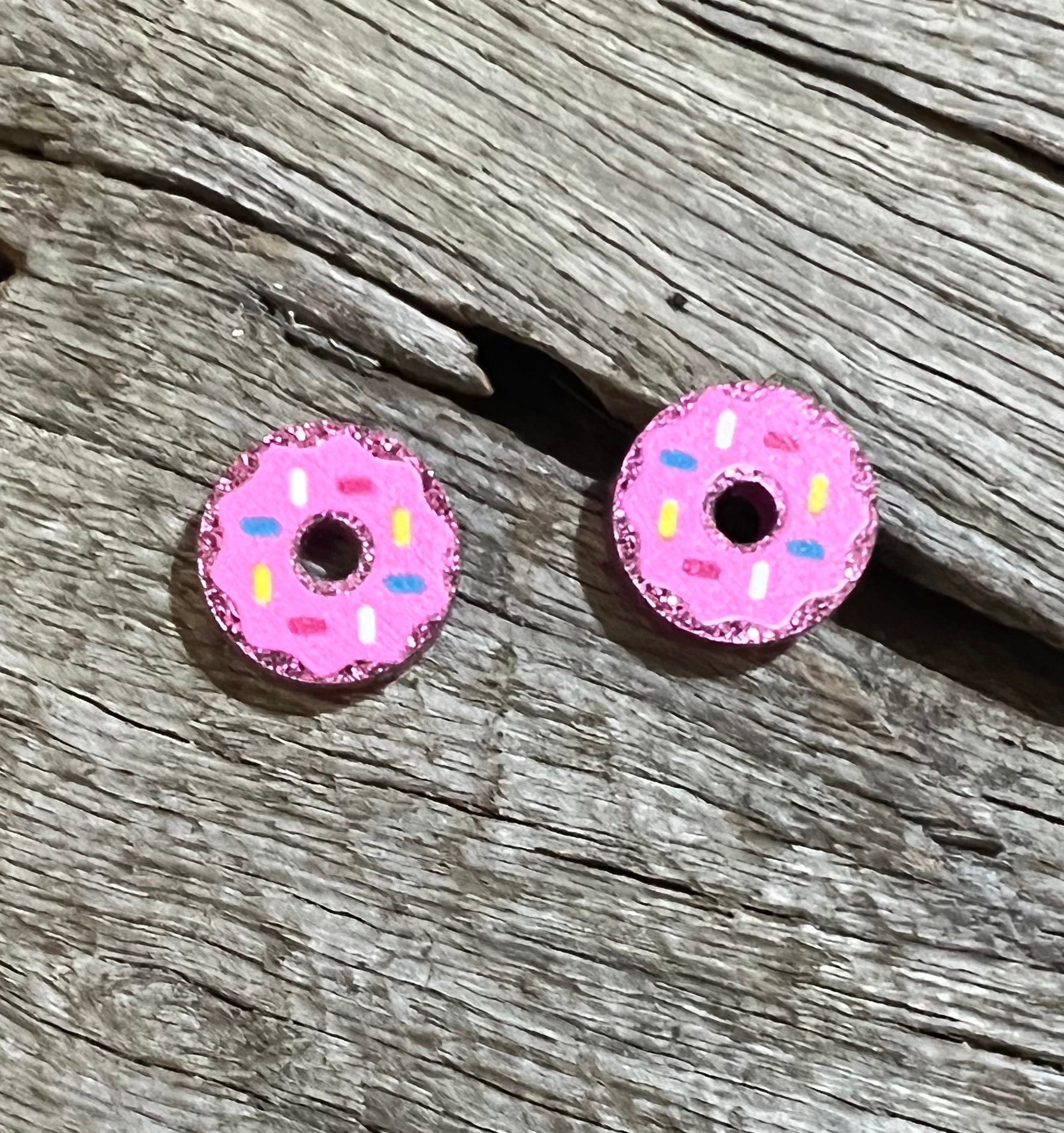 Mini Glitter Pink Donut Stud Earrings