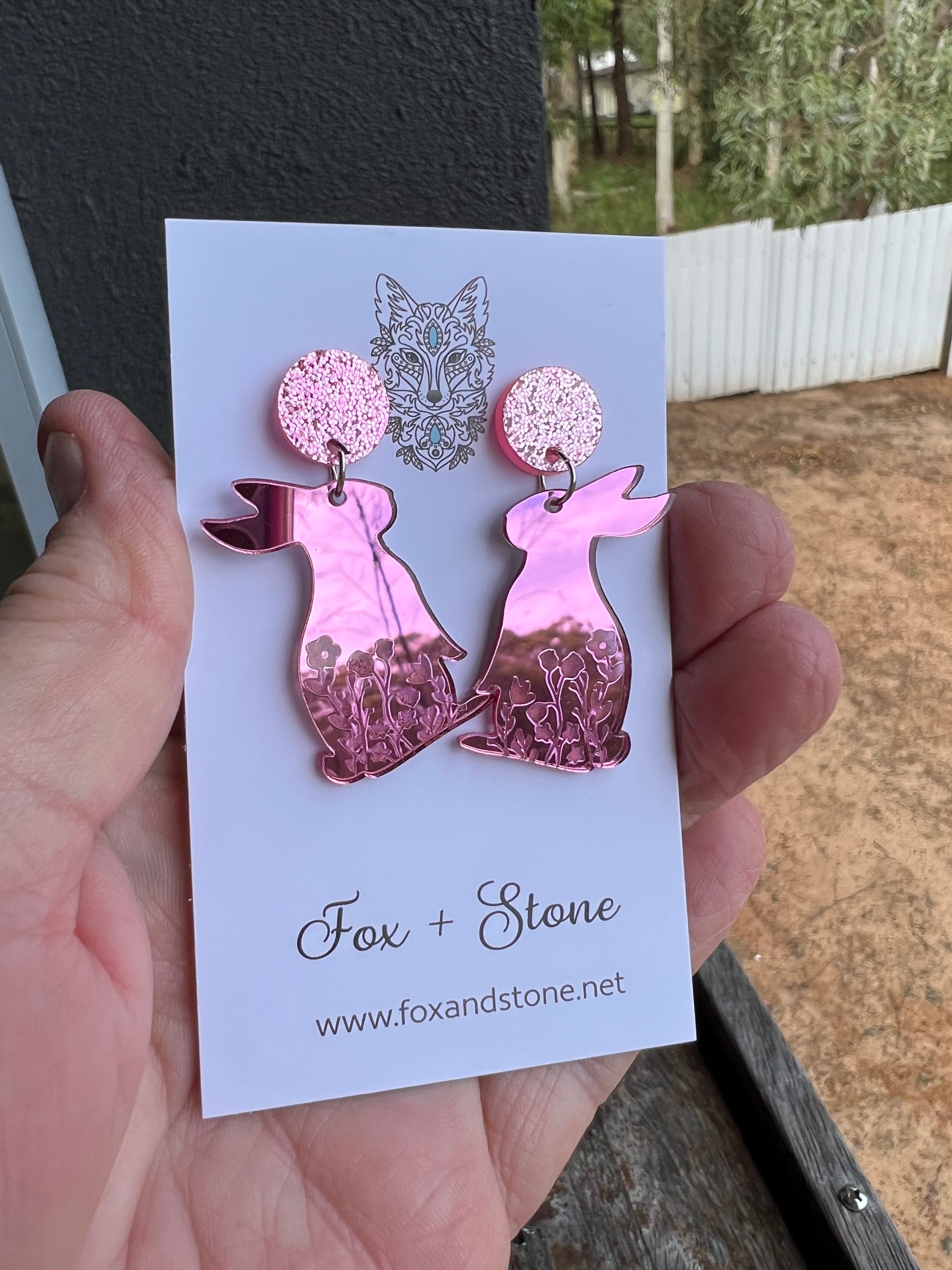 Pink Mirror Easter Bunny Earrings