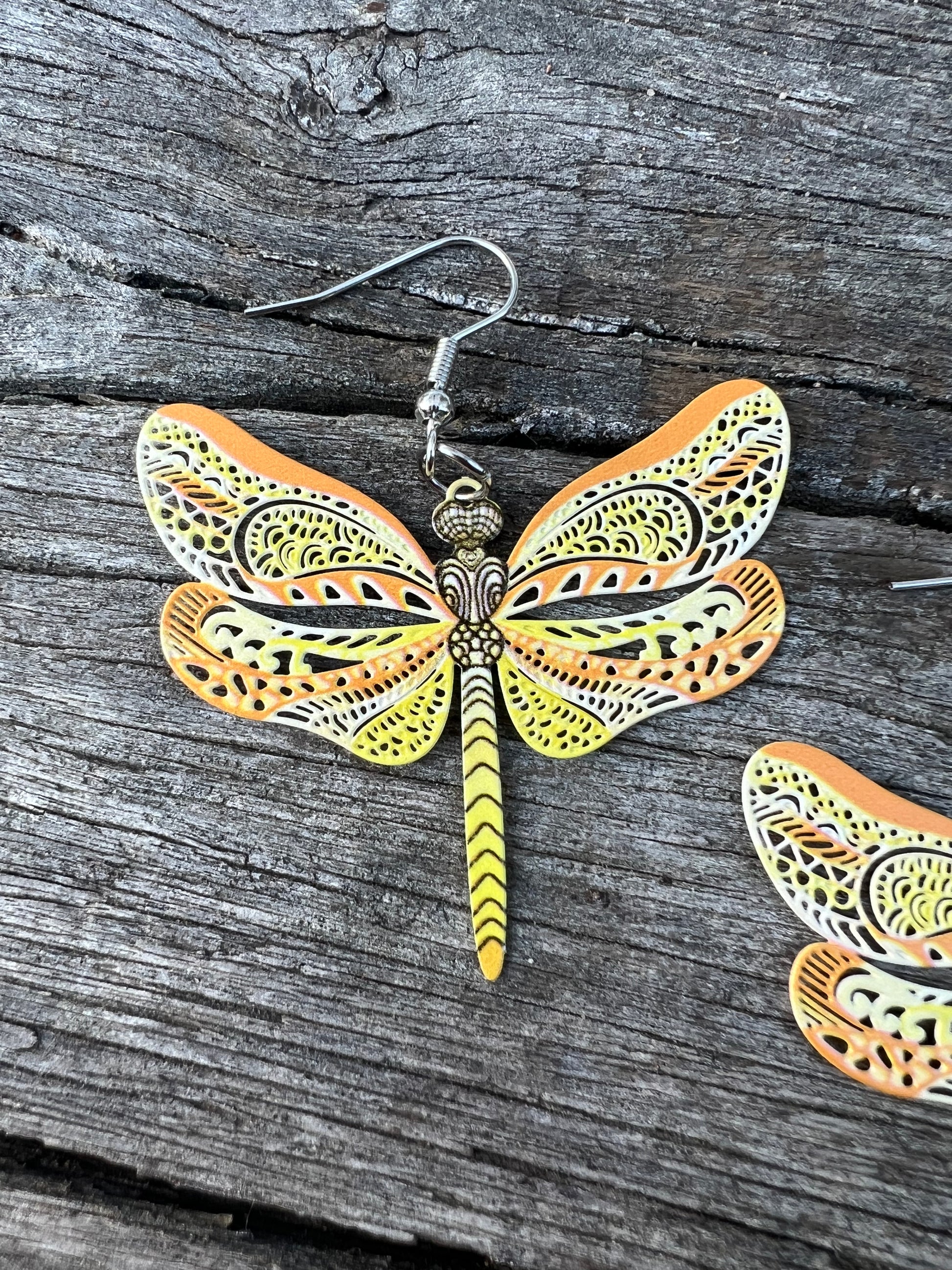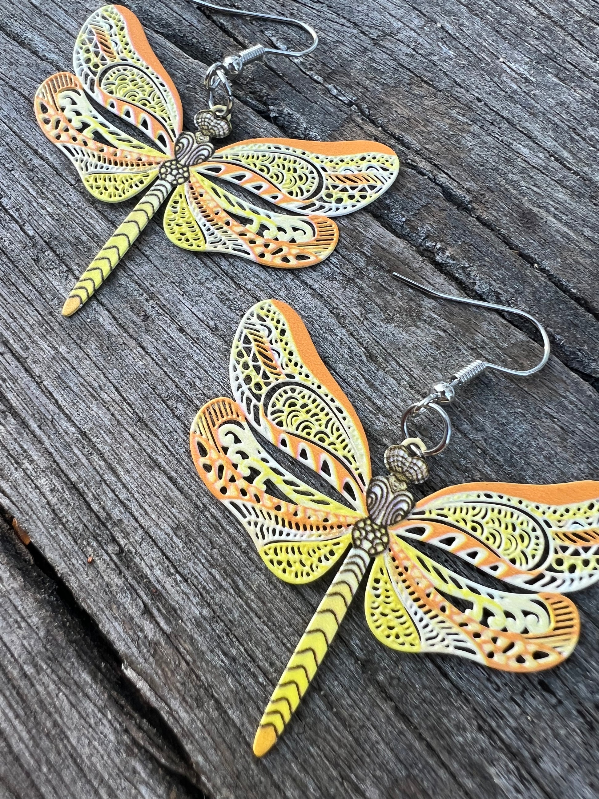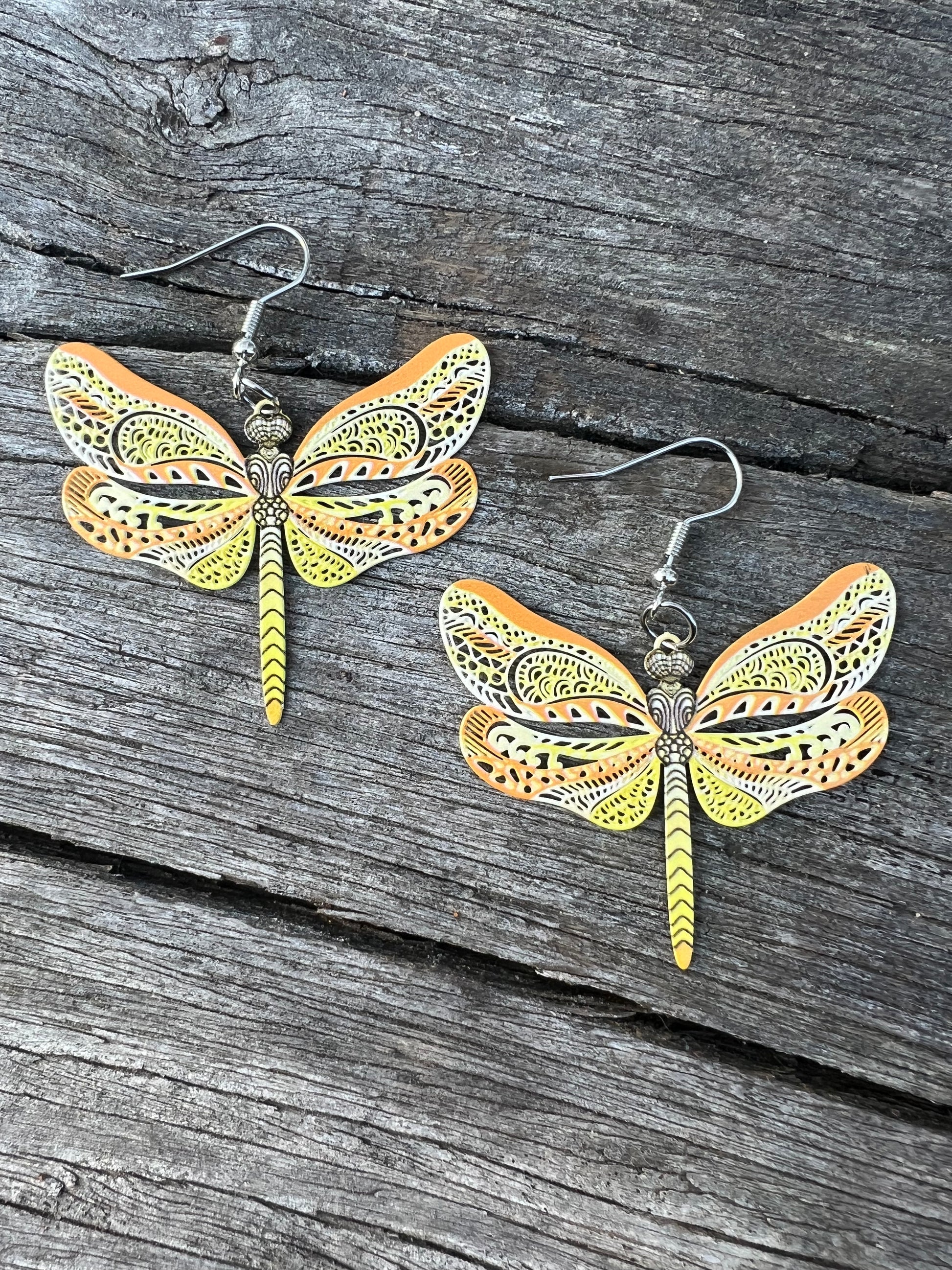 Pretty Lemon Tang Dragonfly Filigree Earrings