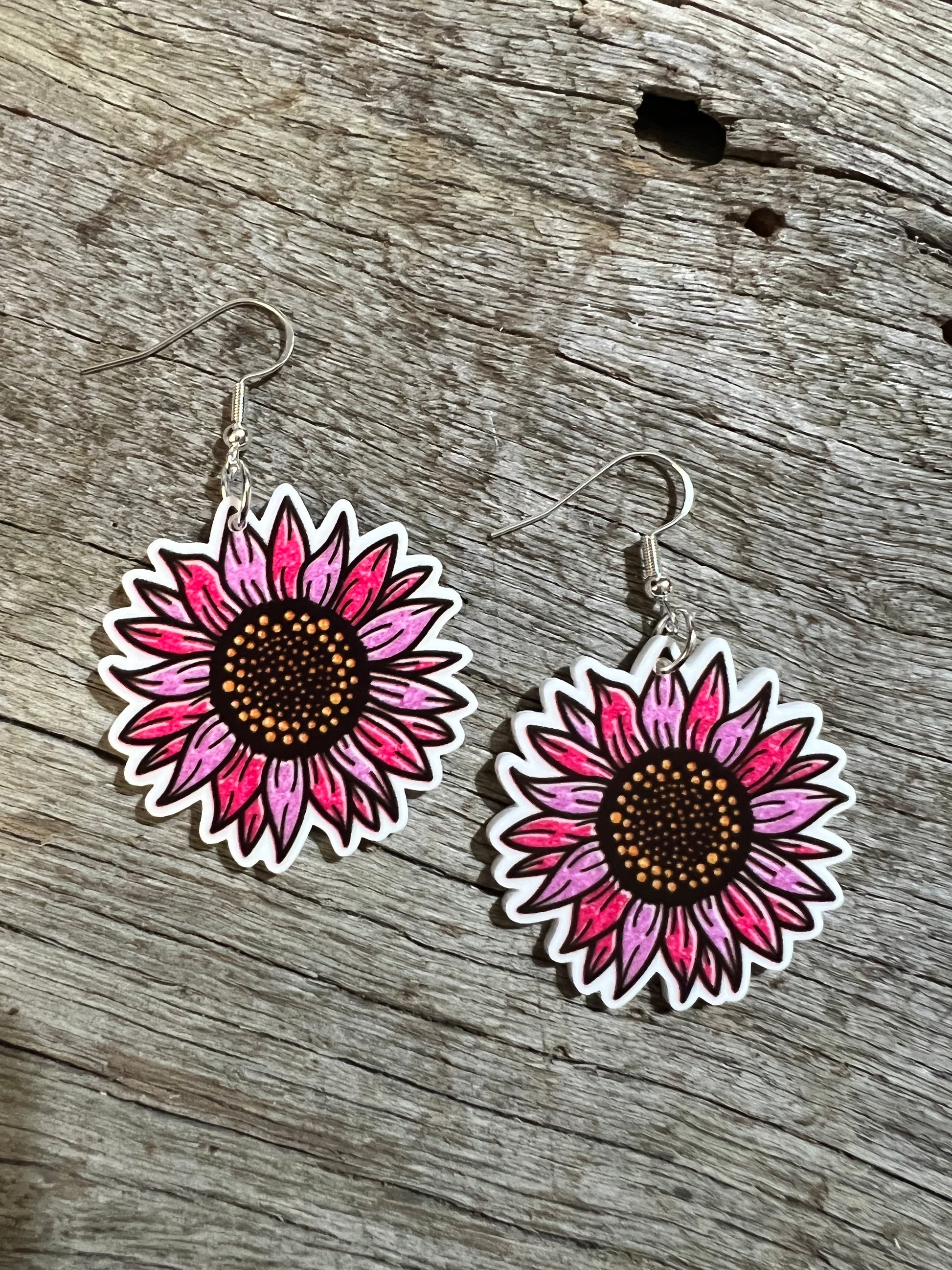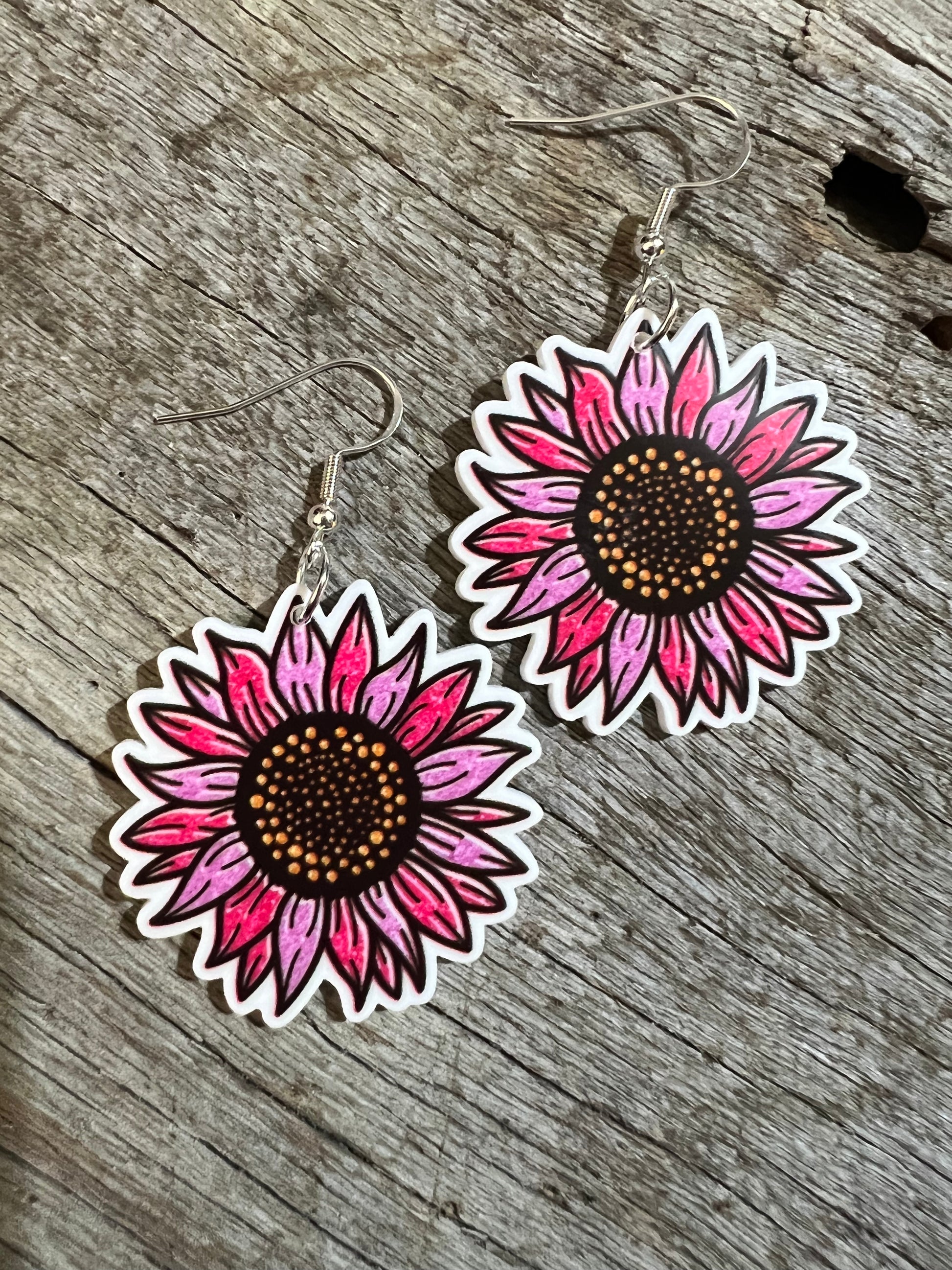 Purple Harmony Sunflower Earrings