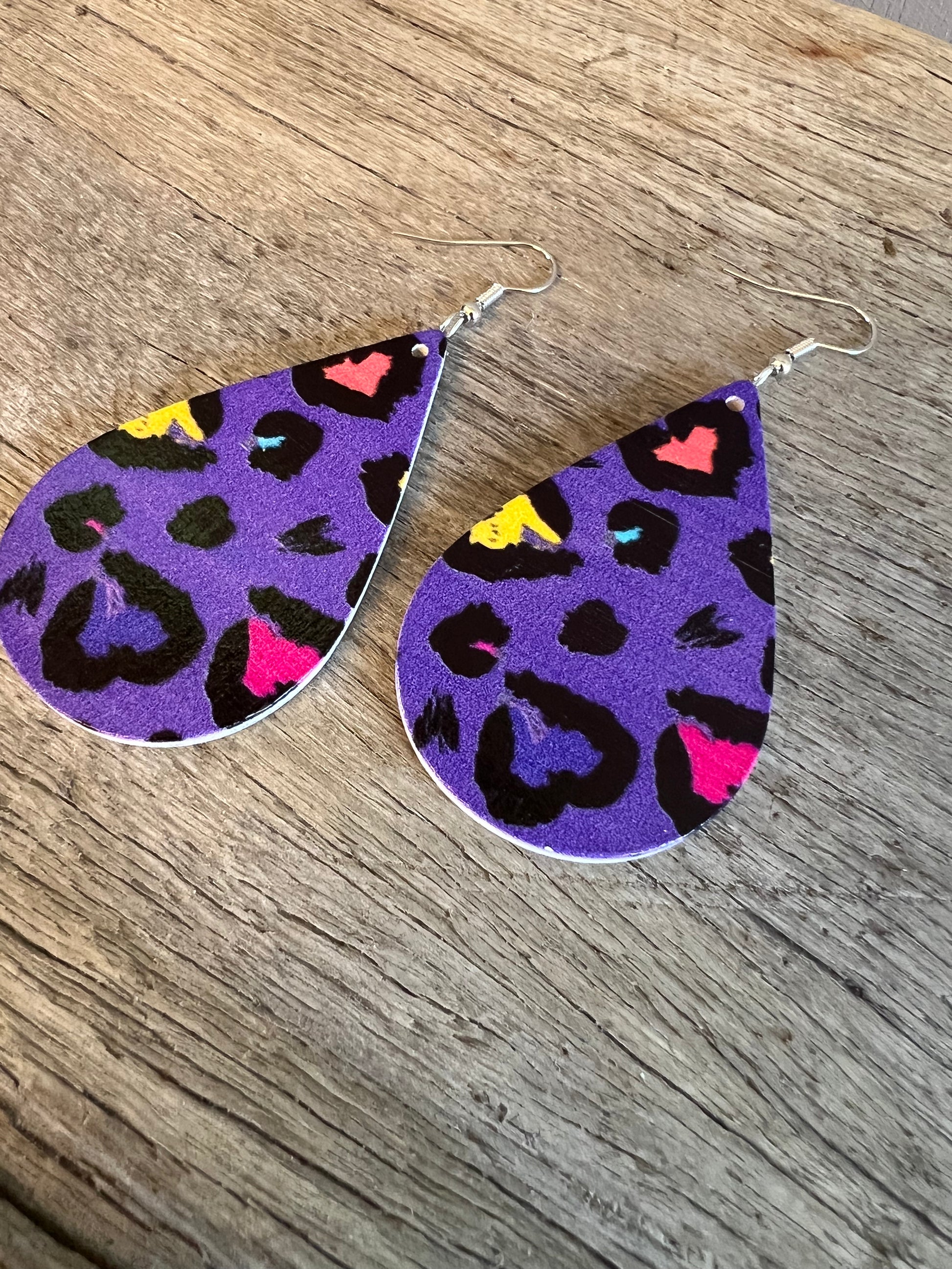 Purple Print Wood Earrings