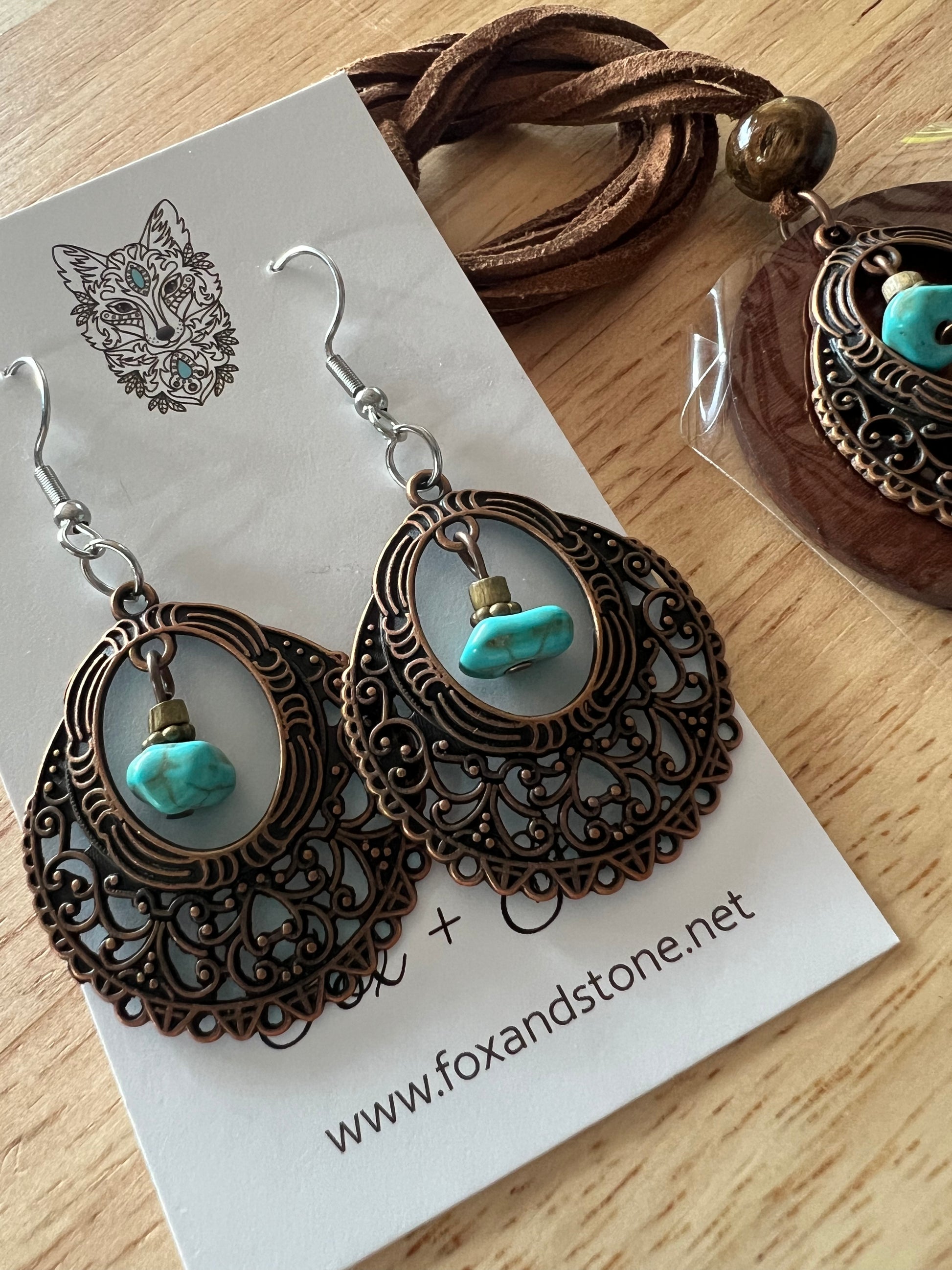 Pendant Earring Set with tiny dyed turquoise dangles