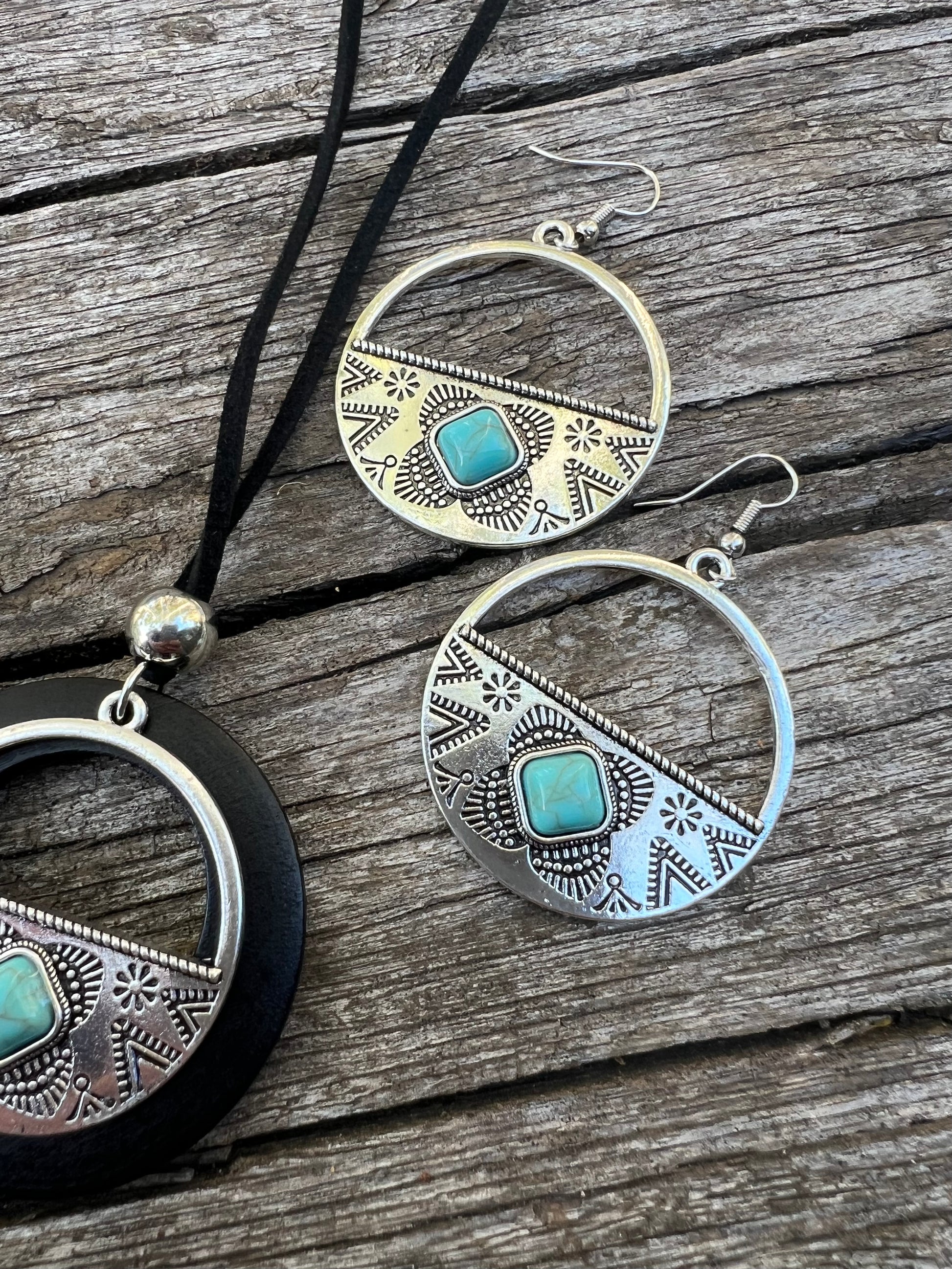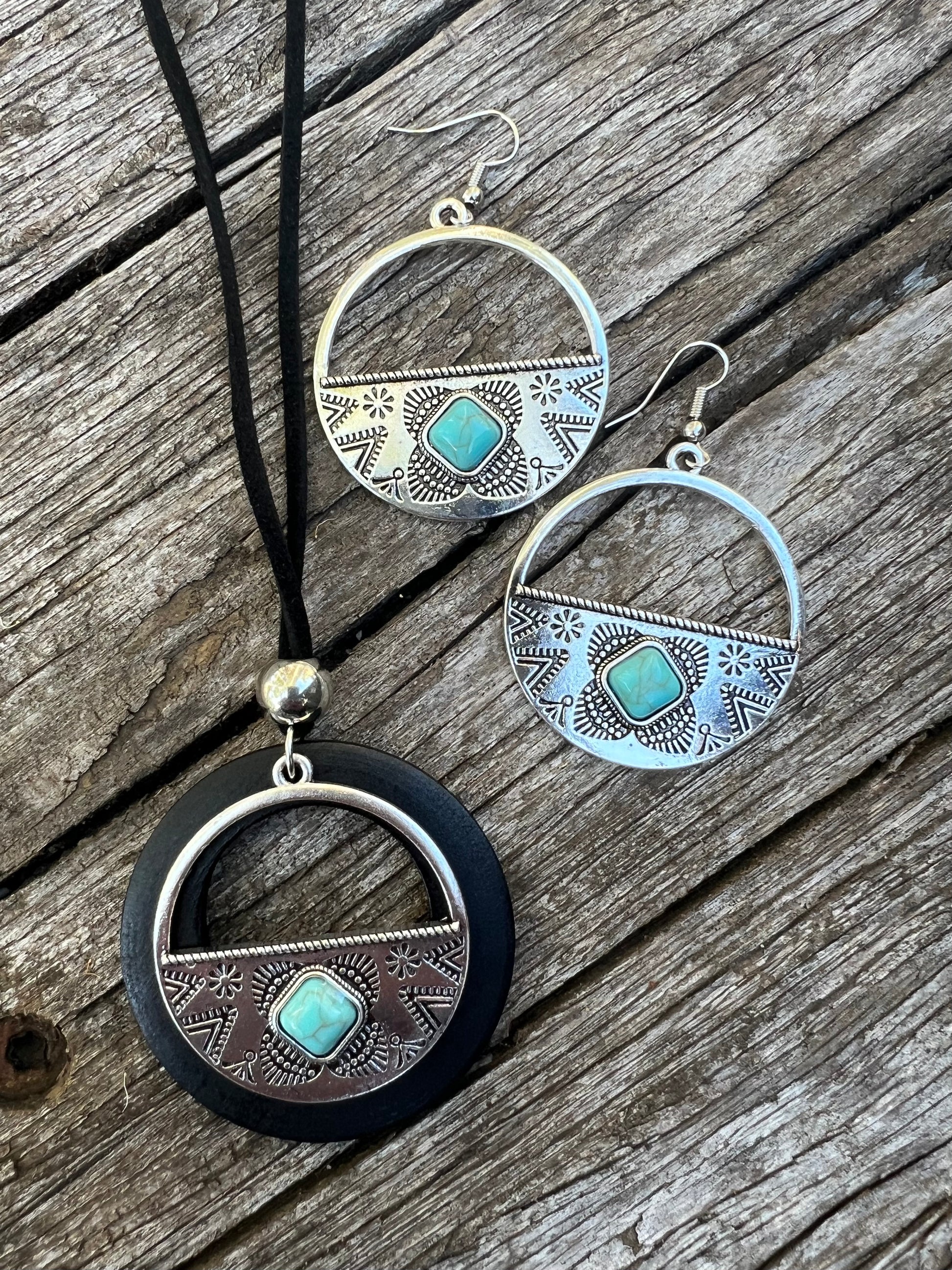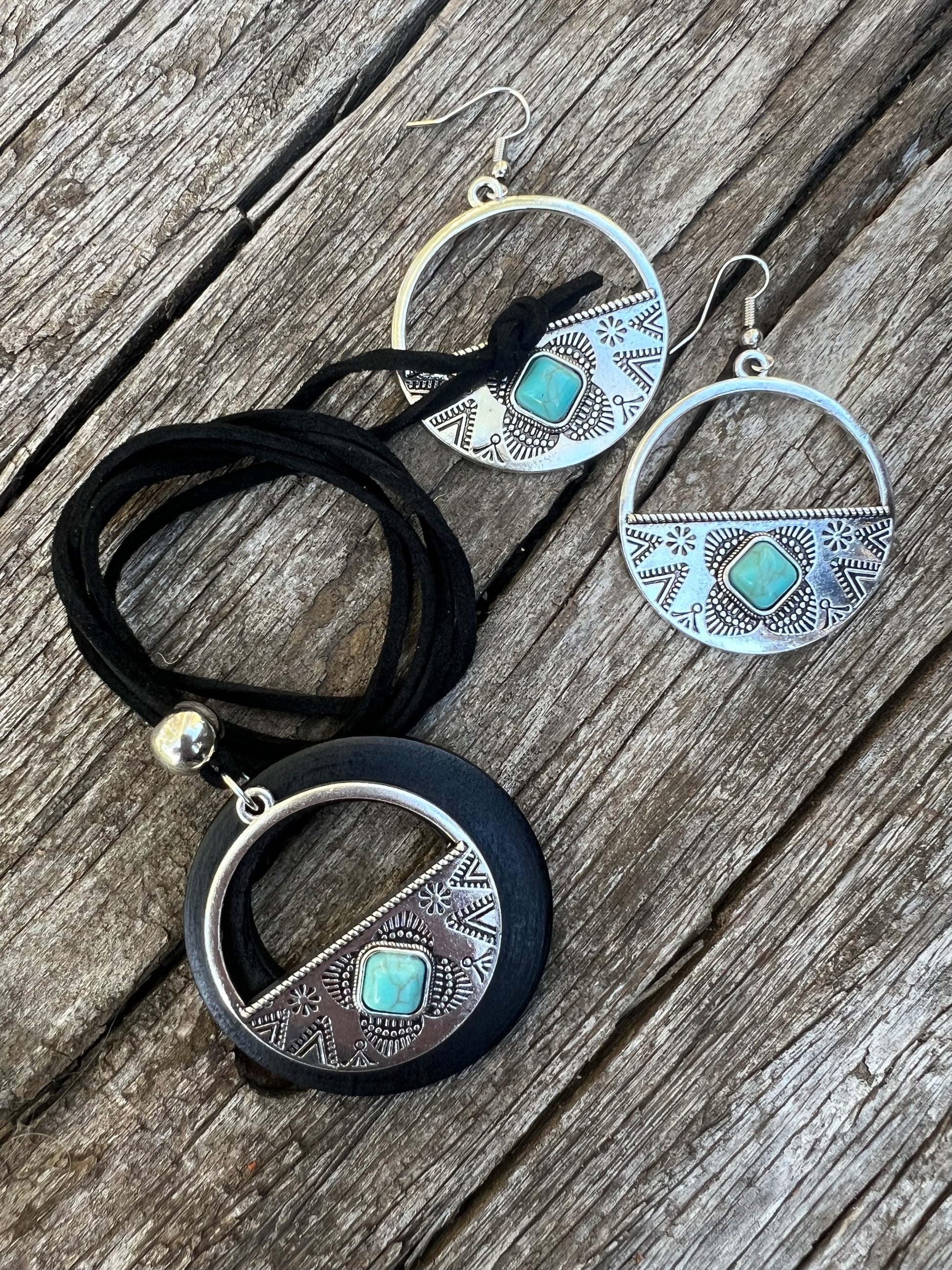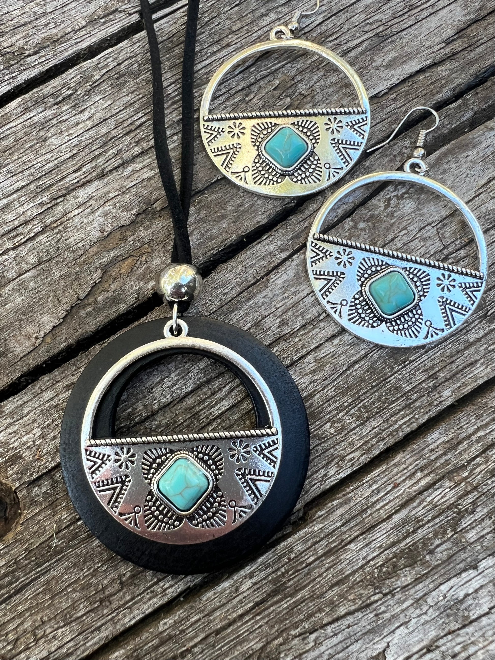 Silver Dyed Turquoise Wood Set