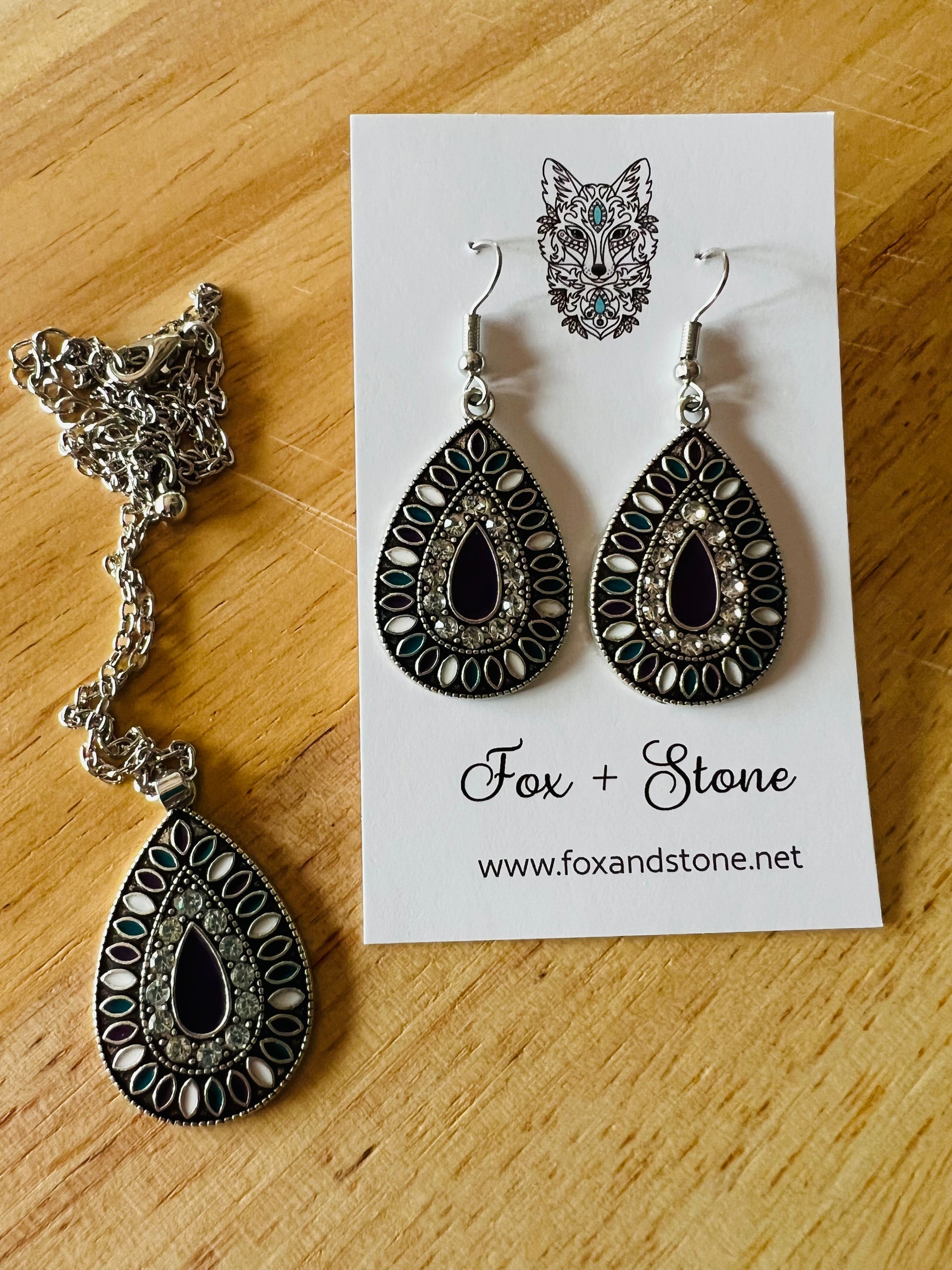 Silver alloy earrings and pendant with chain