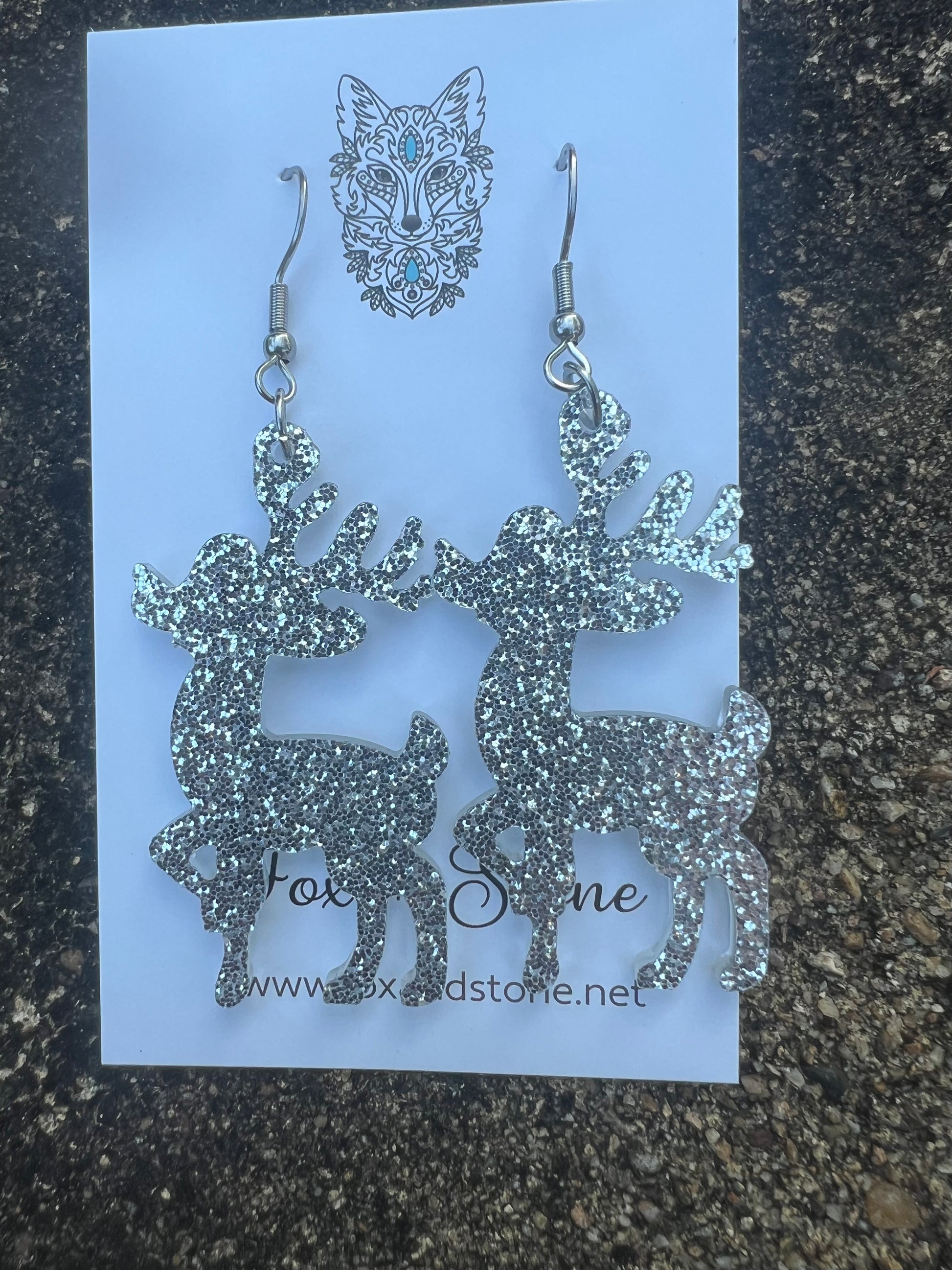 Silver Reindeer Xmas Earrings