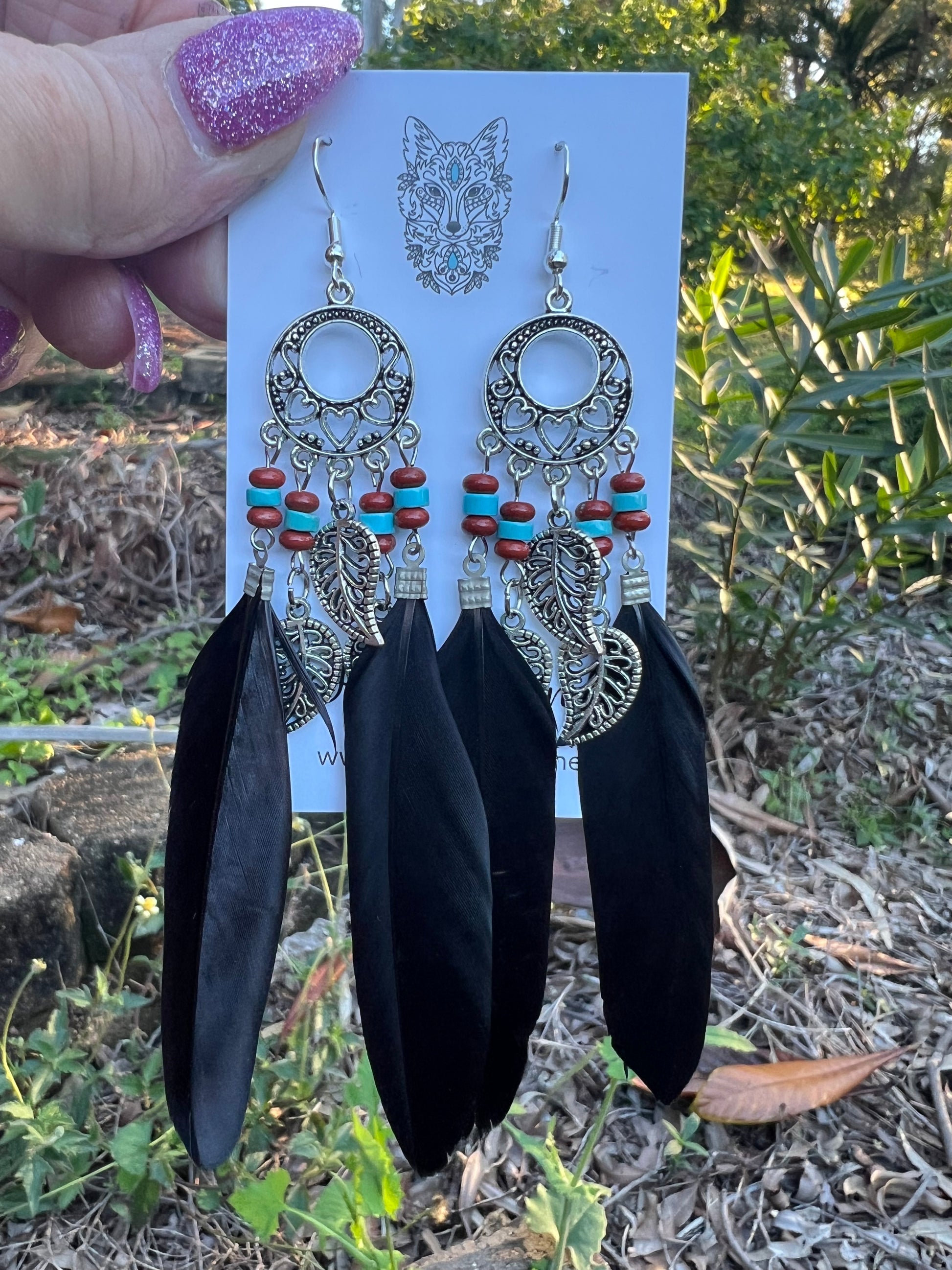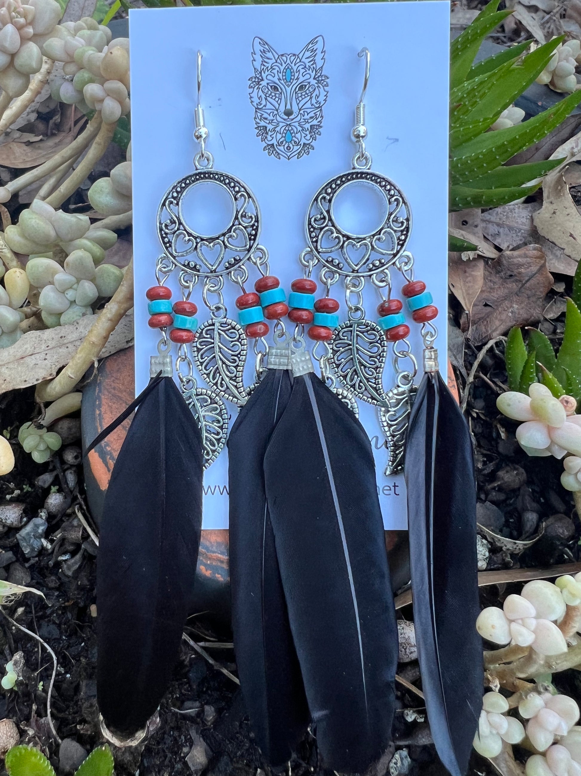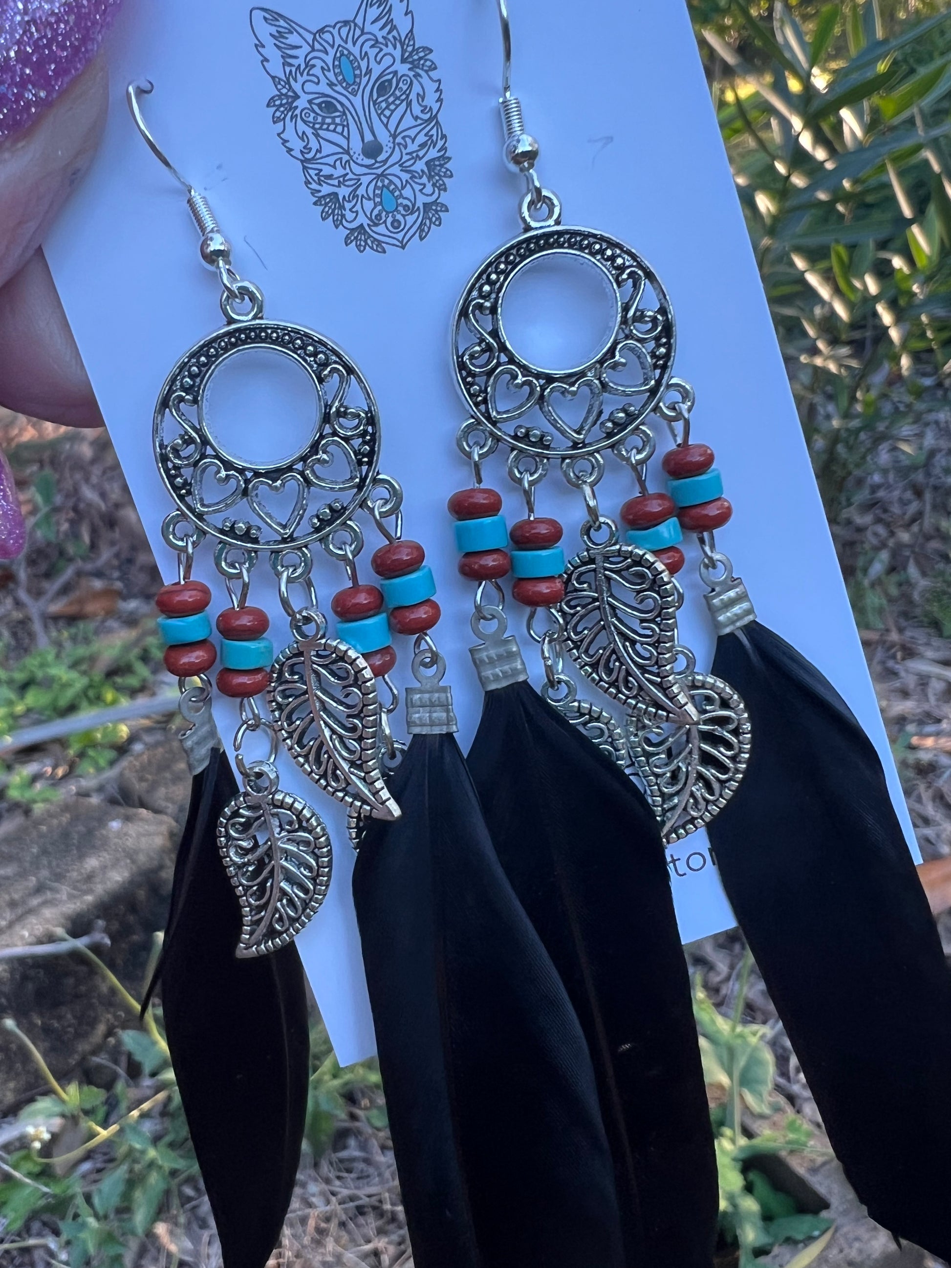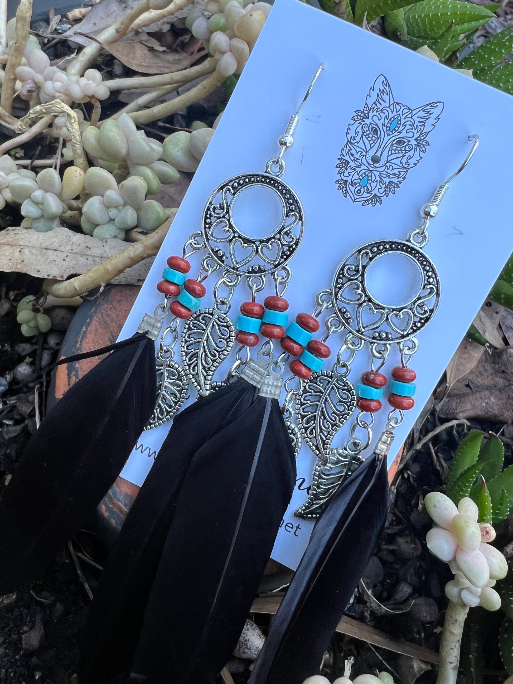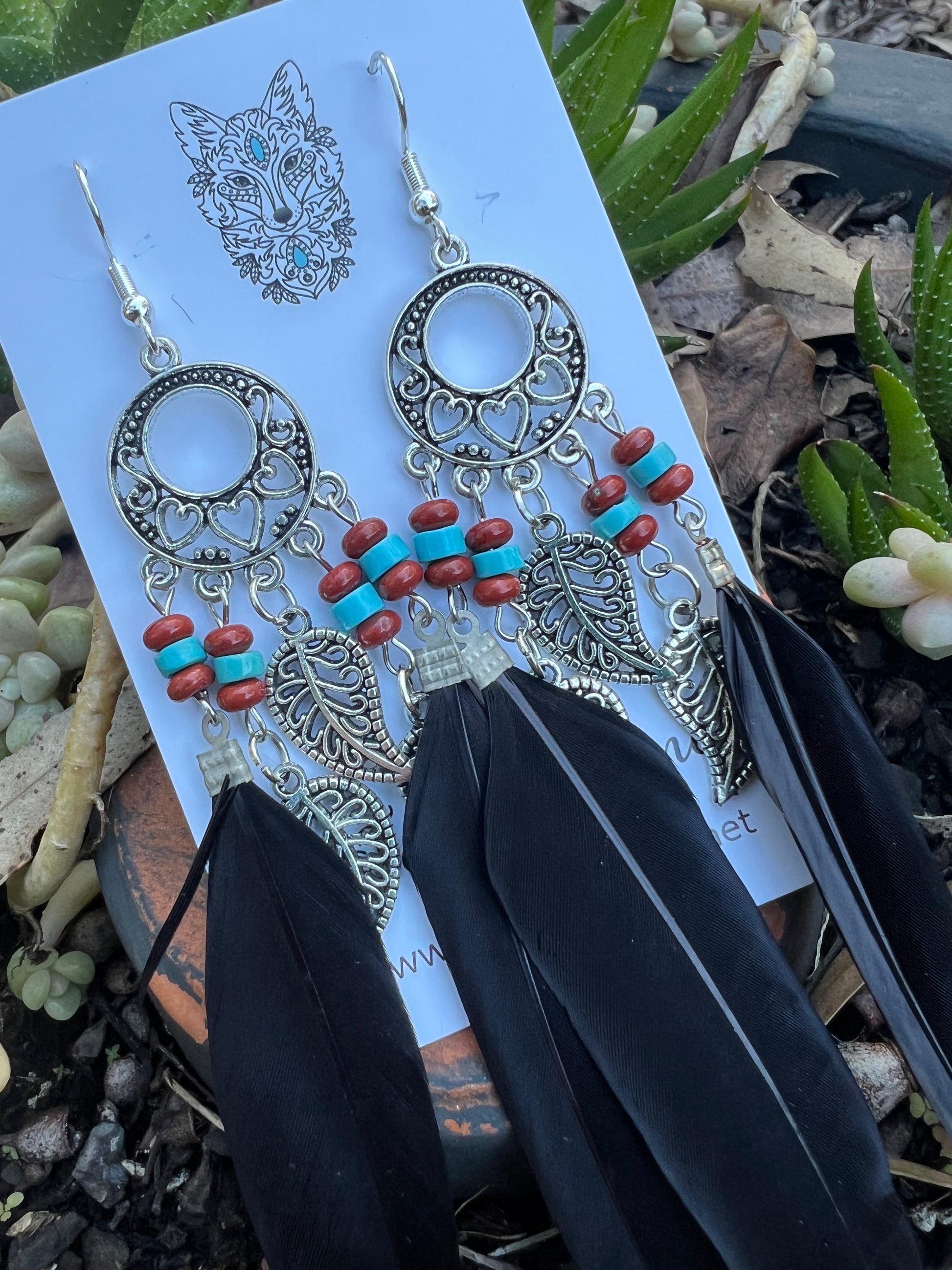 Stunning Silver Leaf Black Feather Earrings
