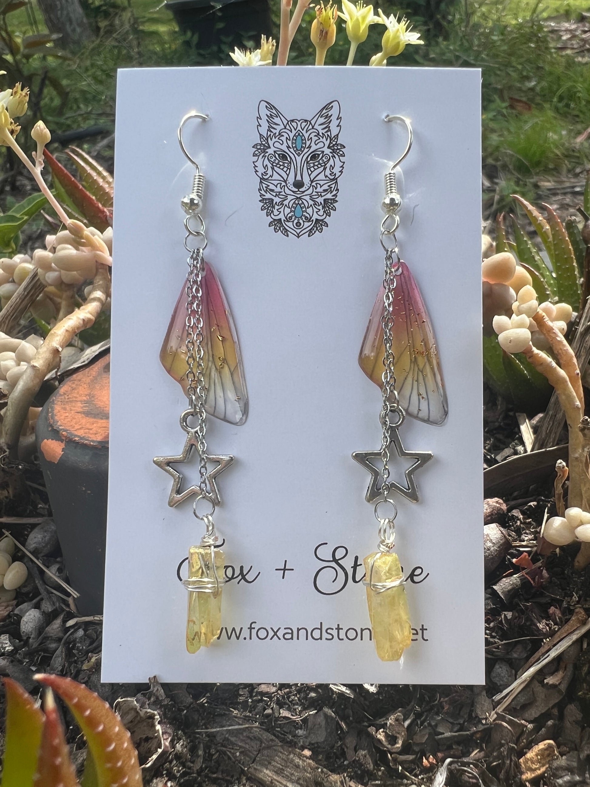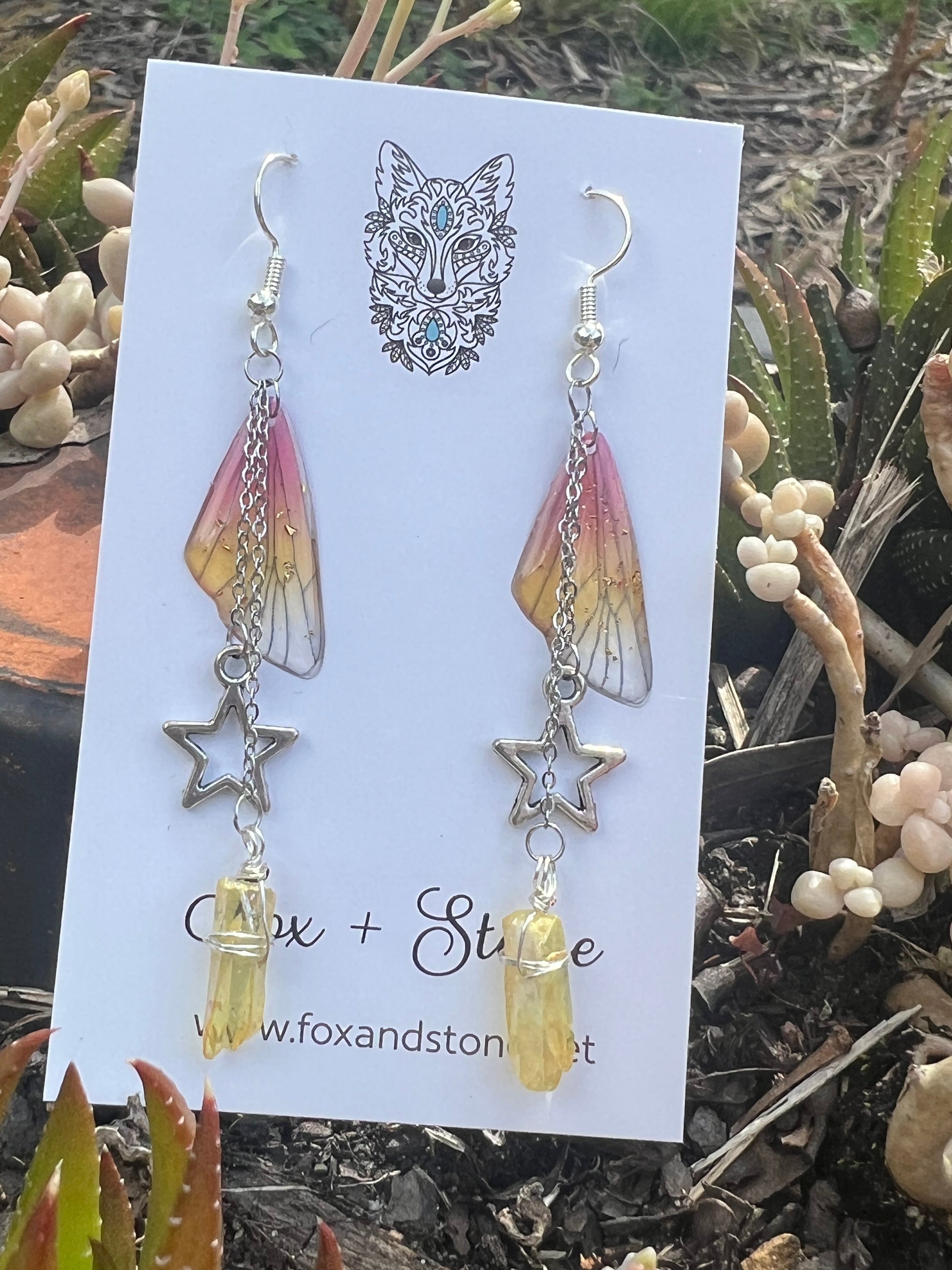 Sun Burst Fairy/Butterfly Wing Dangle Earrings