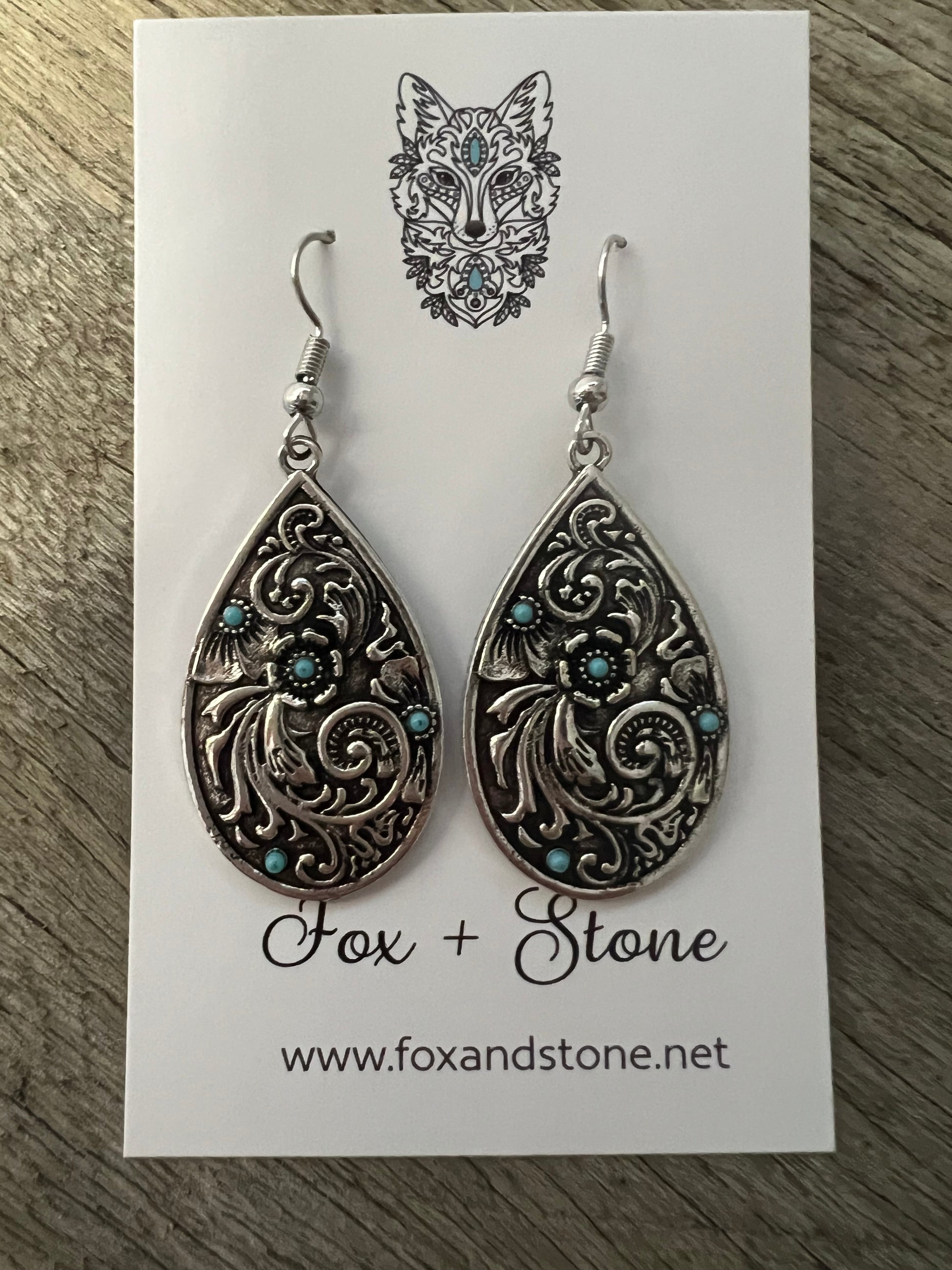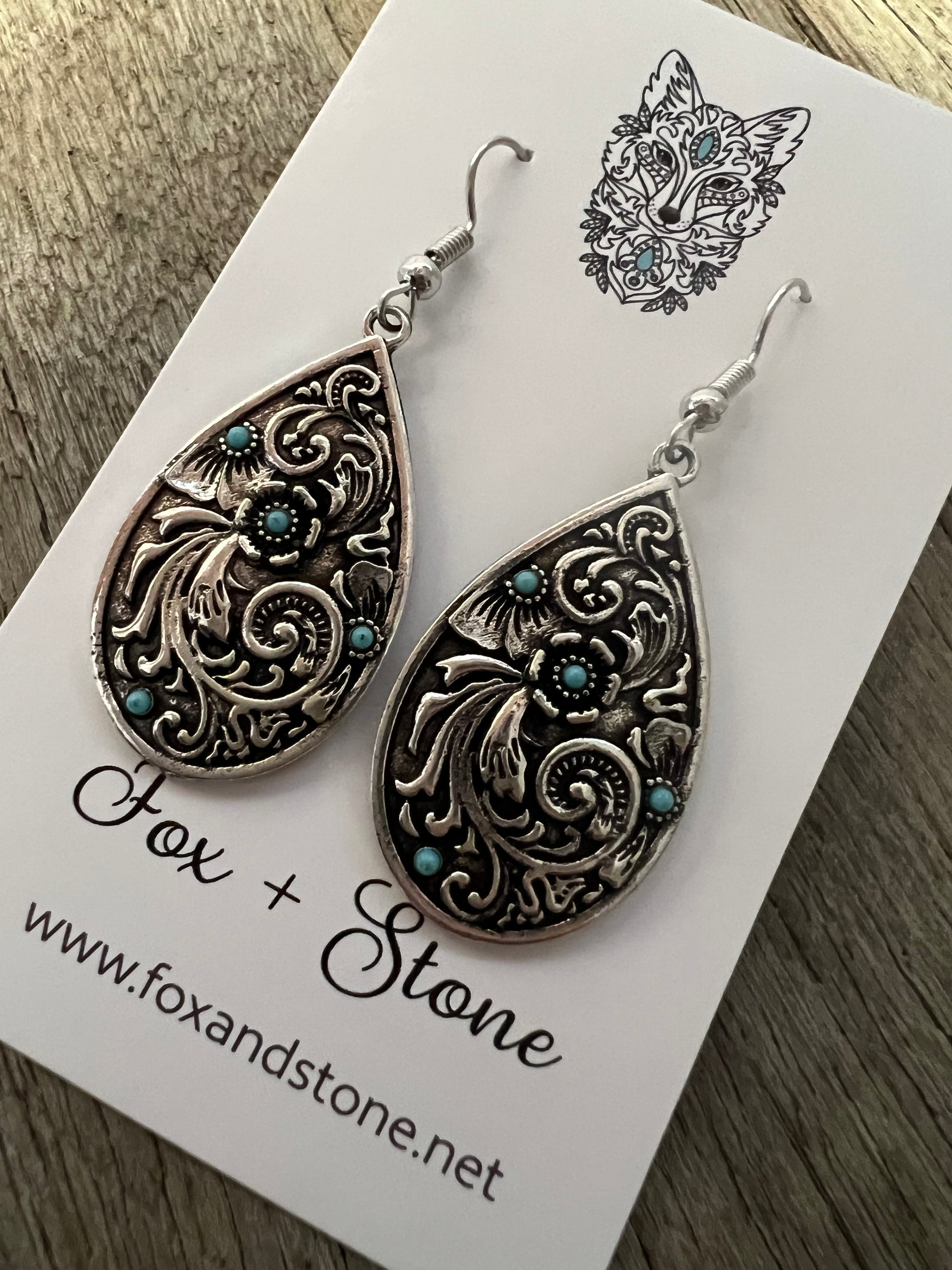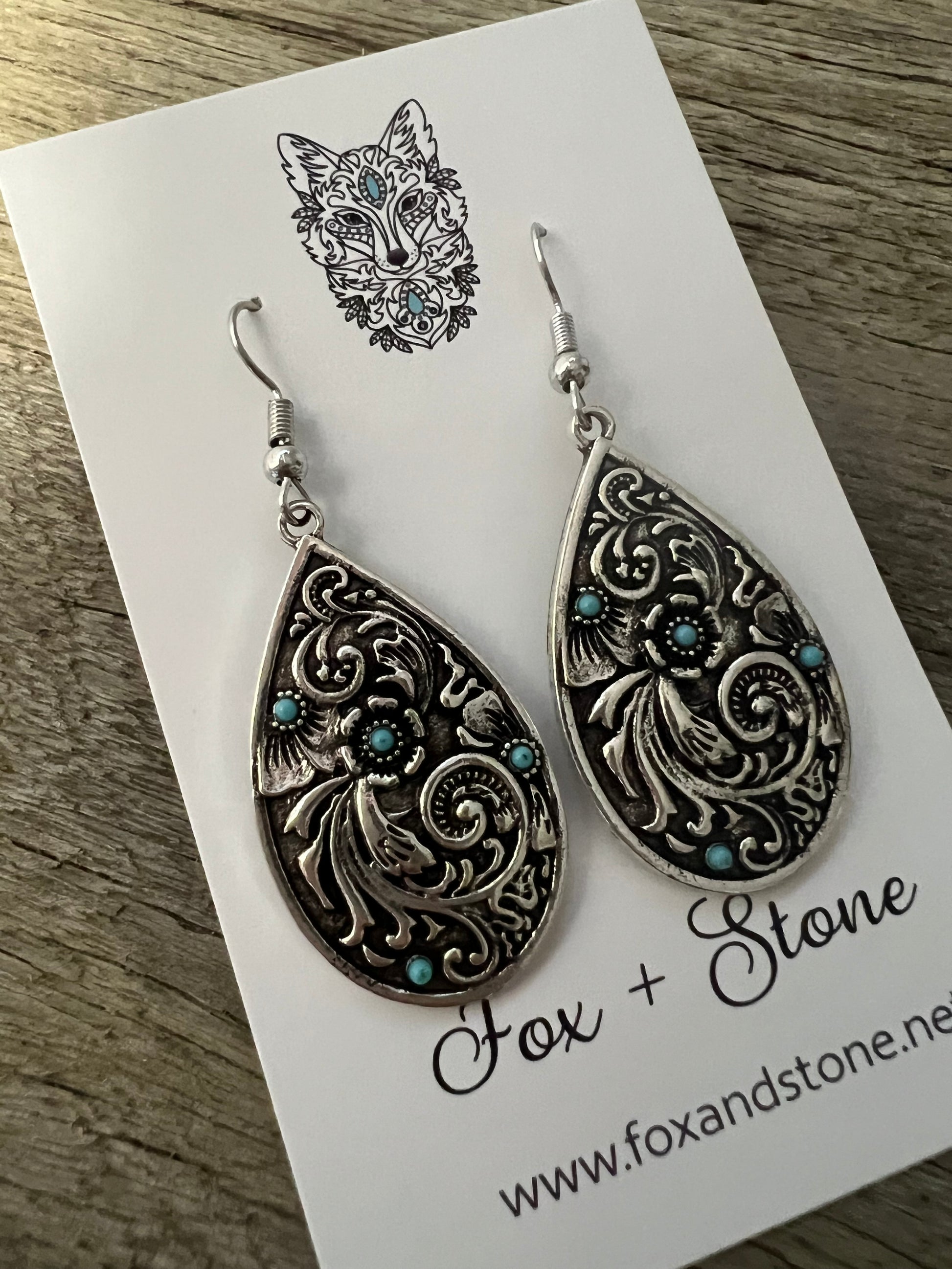 Swirl Silver Turquoise Metal Dangles