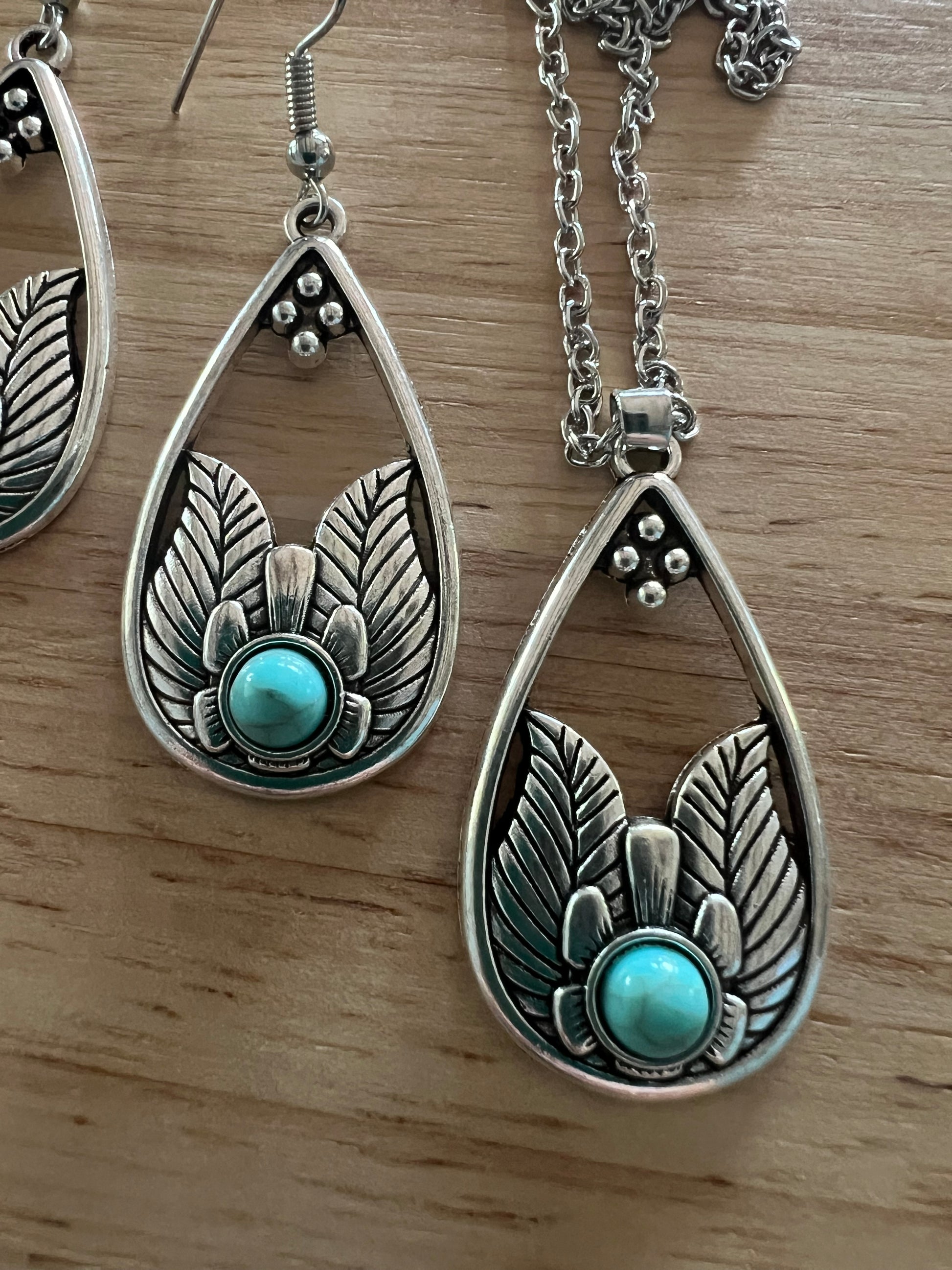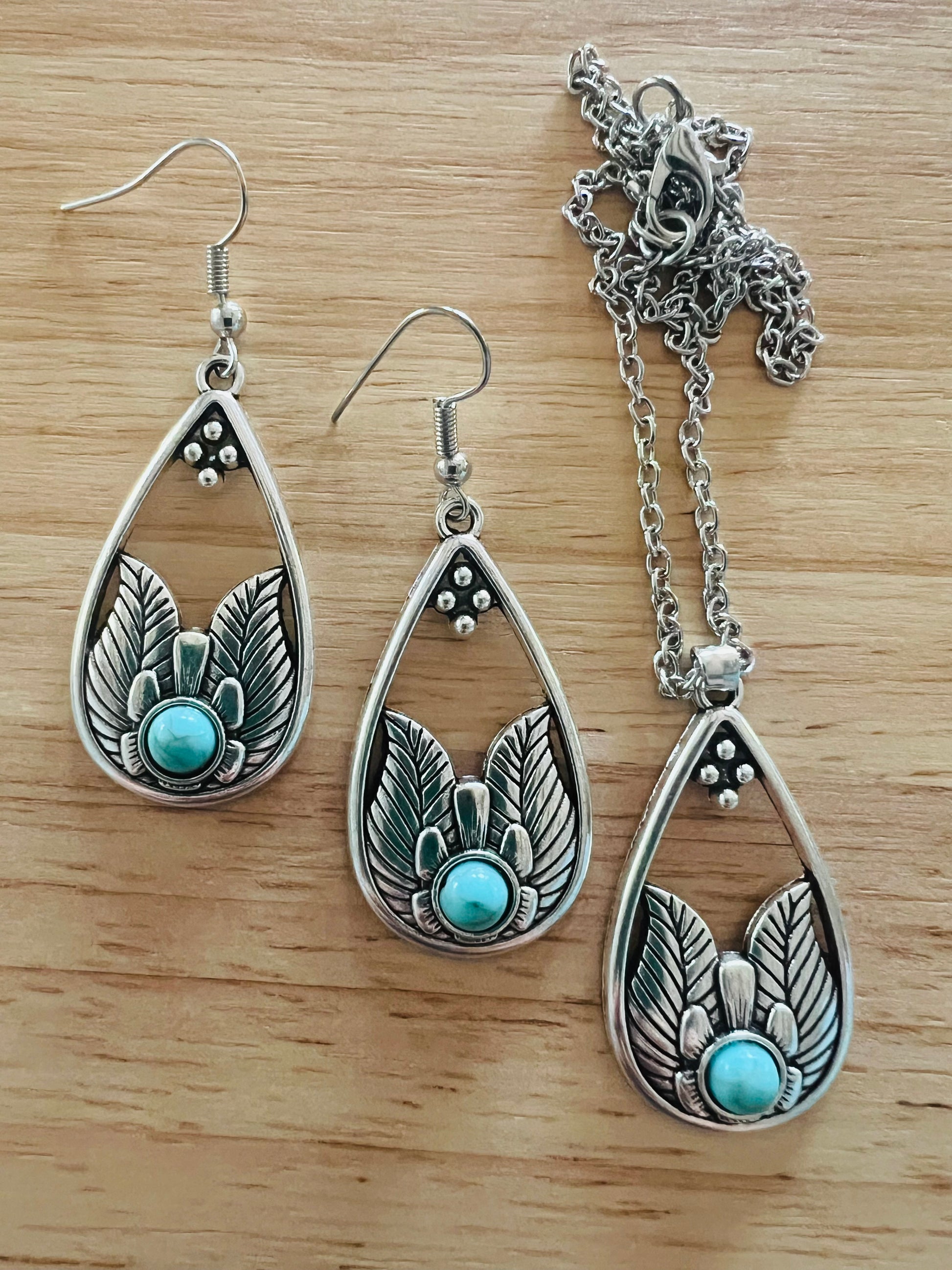 Wing Turquoise Pendant Earring Set